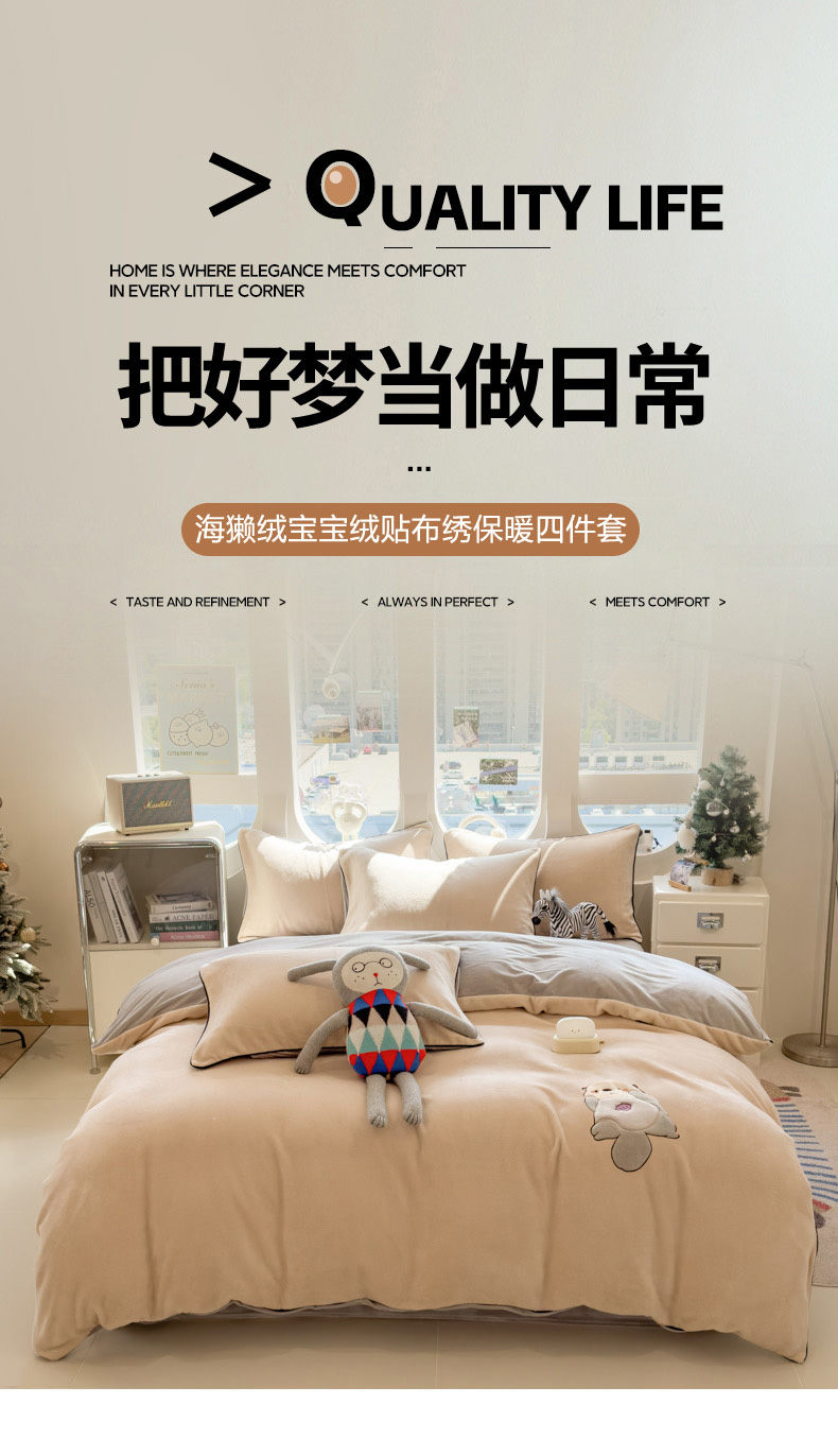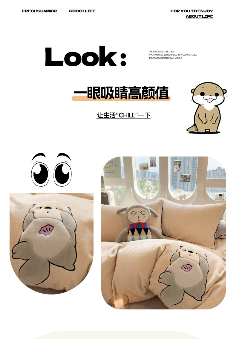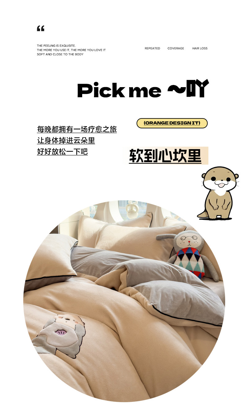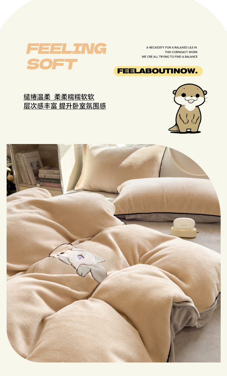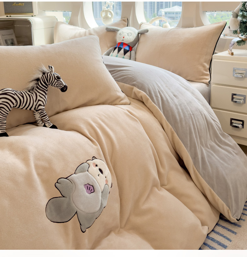 当前位置: 91家纺网 > 商品网购 > 床品套件 > 四件套 > 其它四件套 > 印季家纺 2025新款大肚腩-海獭绒贴布绣四件套 大肚腩-米粽-浅灰