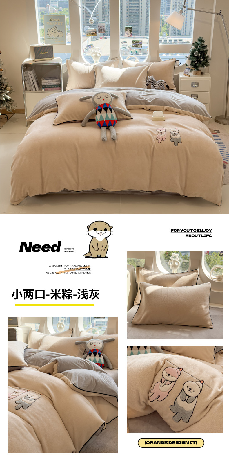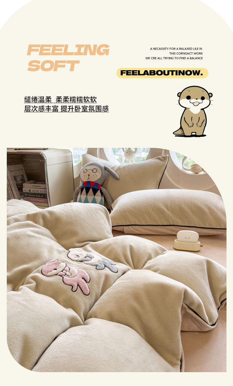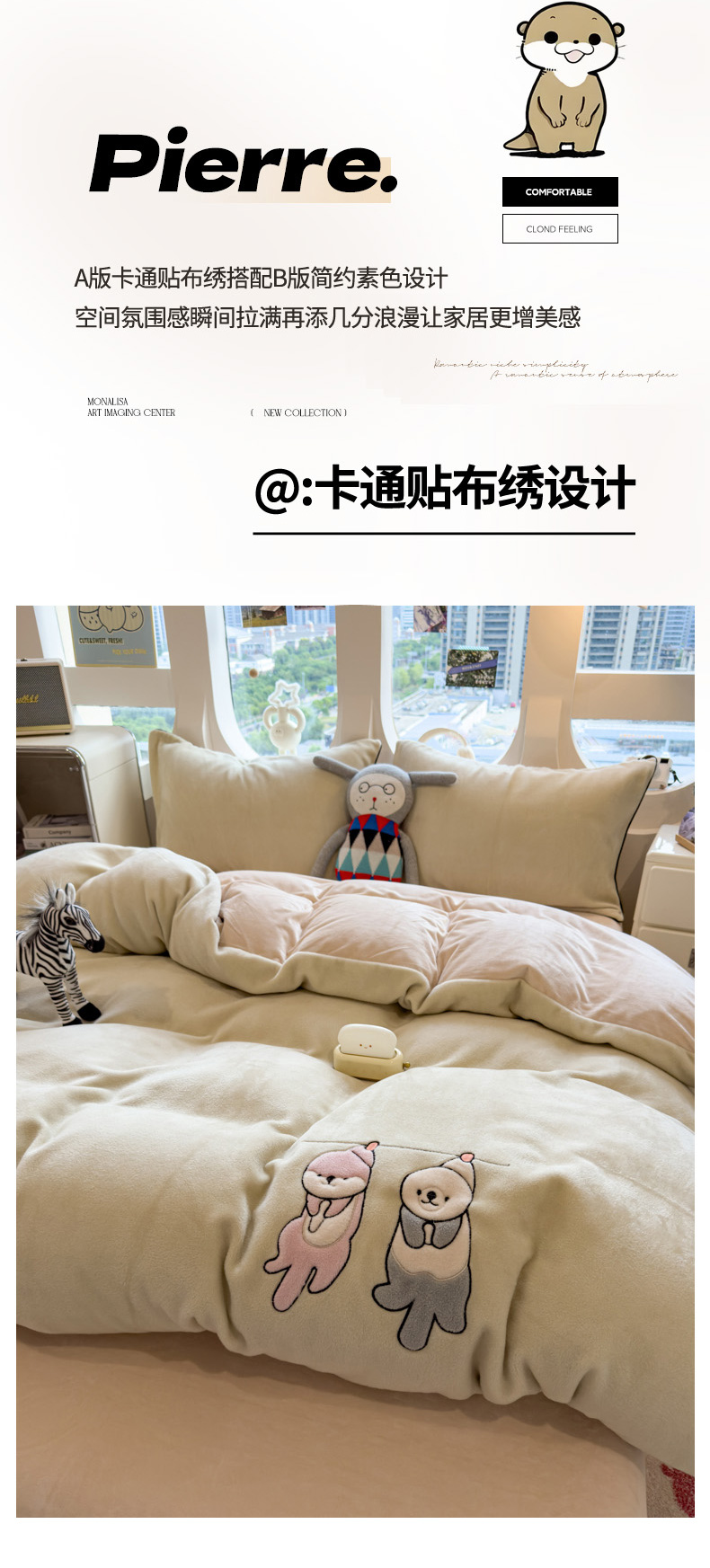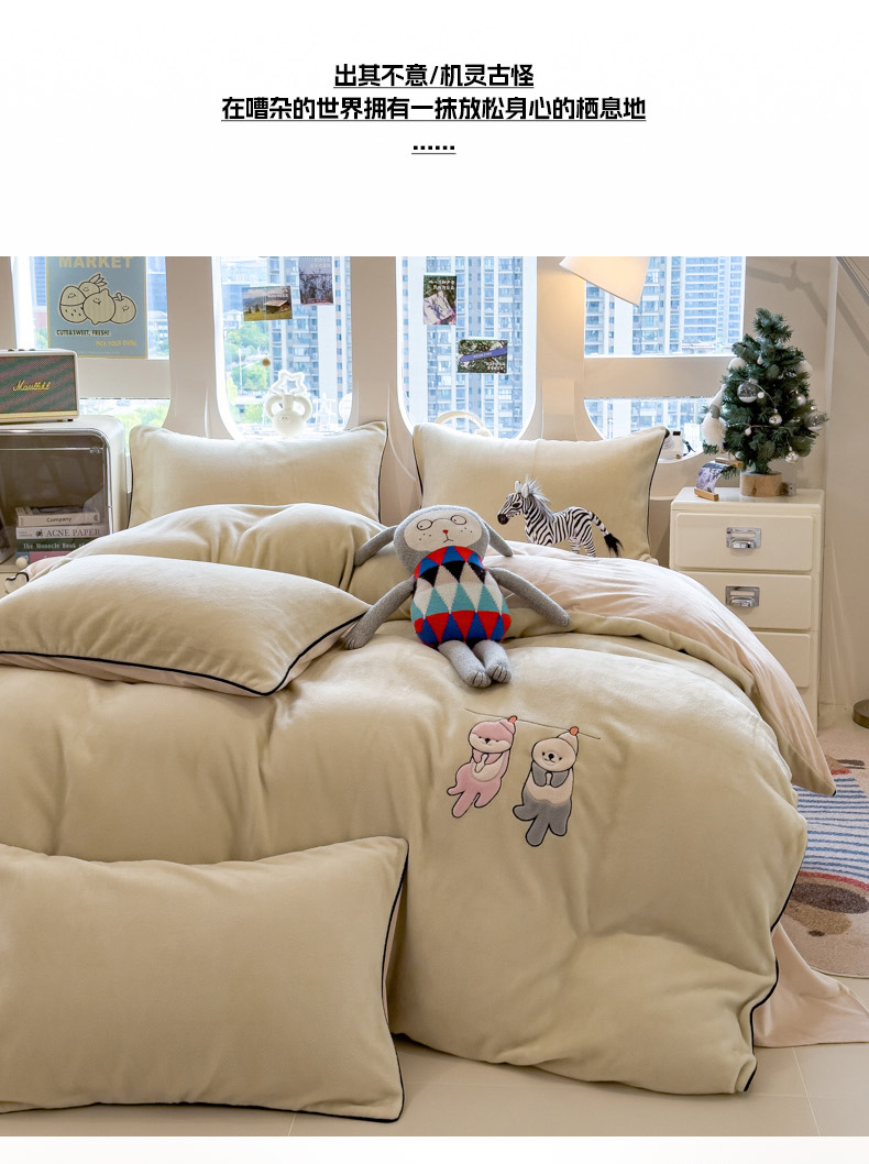 当前位置: 91家纺网 > 商品网购 > 床品套件 > 四件套 > 其它四件套 > 印季家纺 2025新款小两口海獭绒贴布绣四件套 小两口-淡绿-浅棕