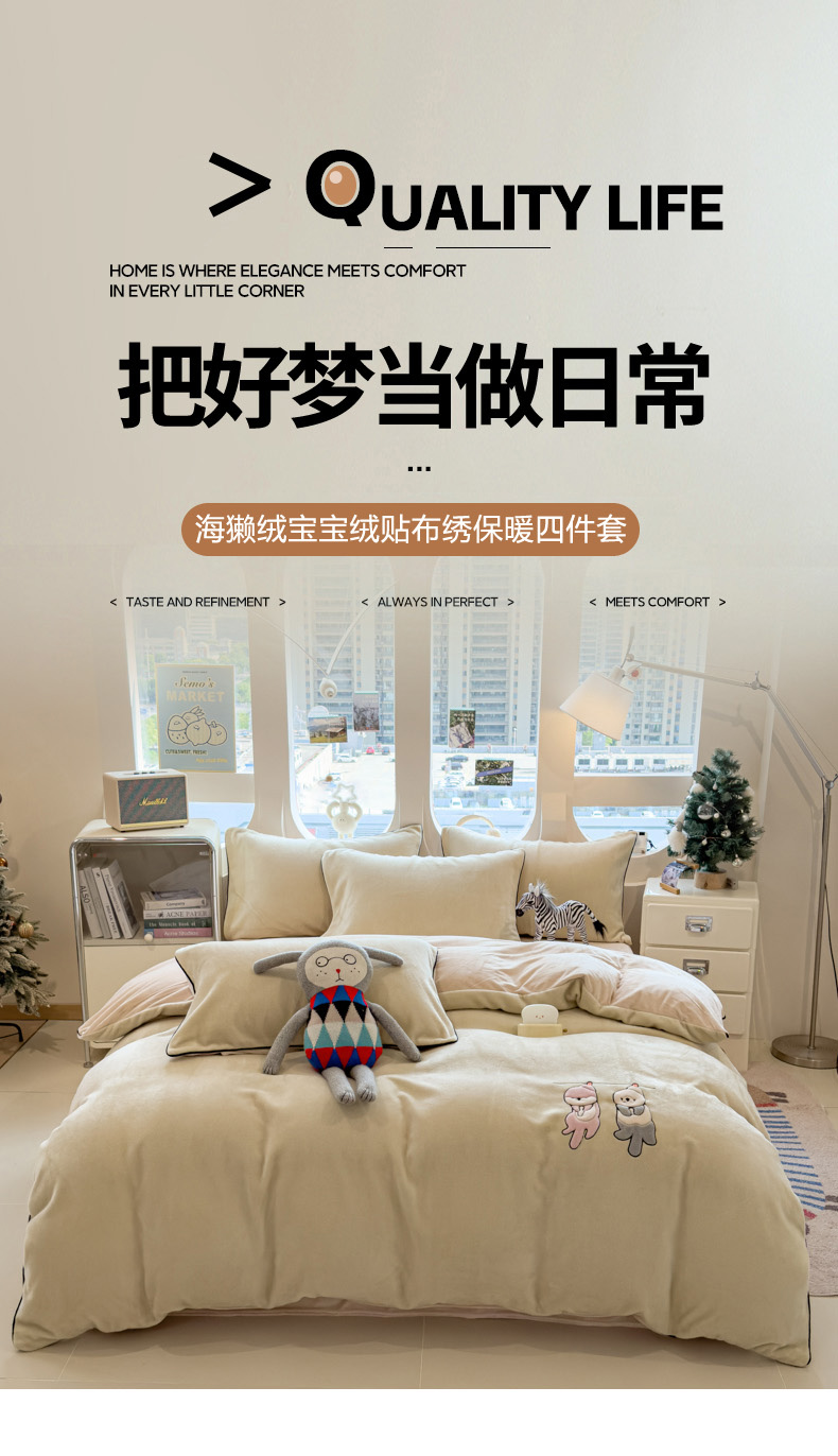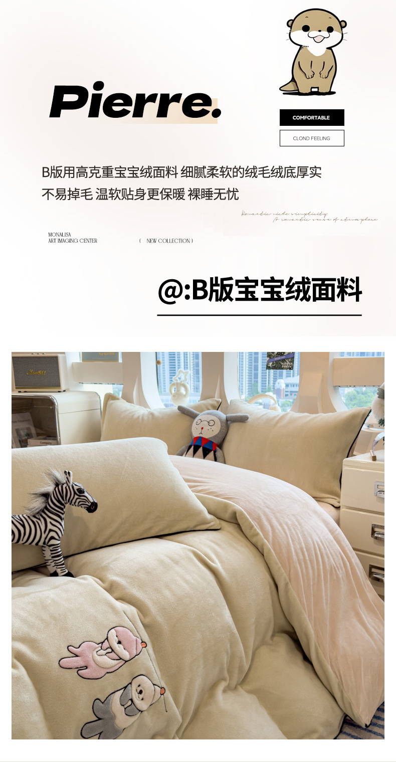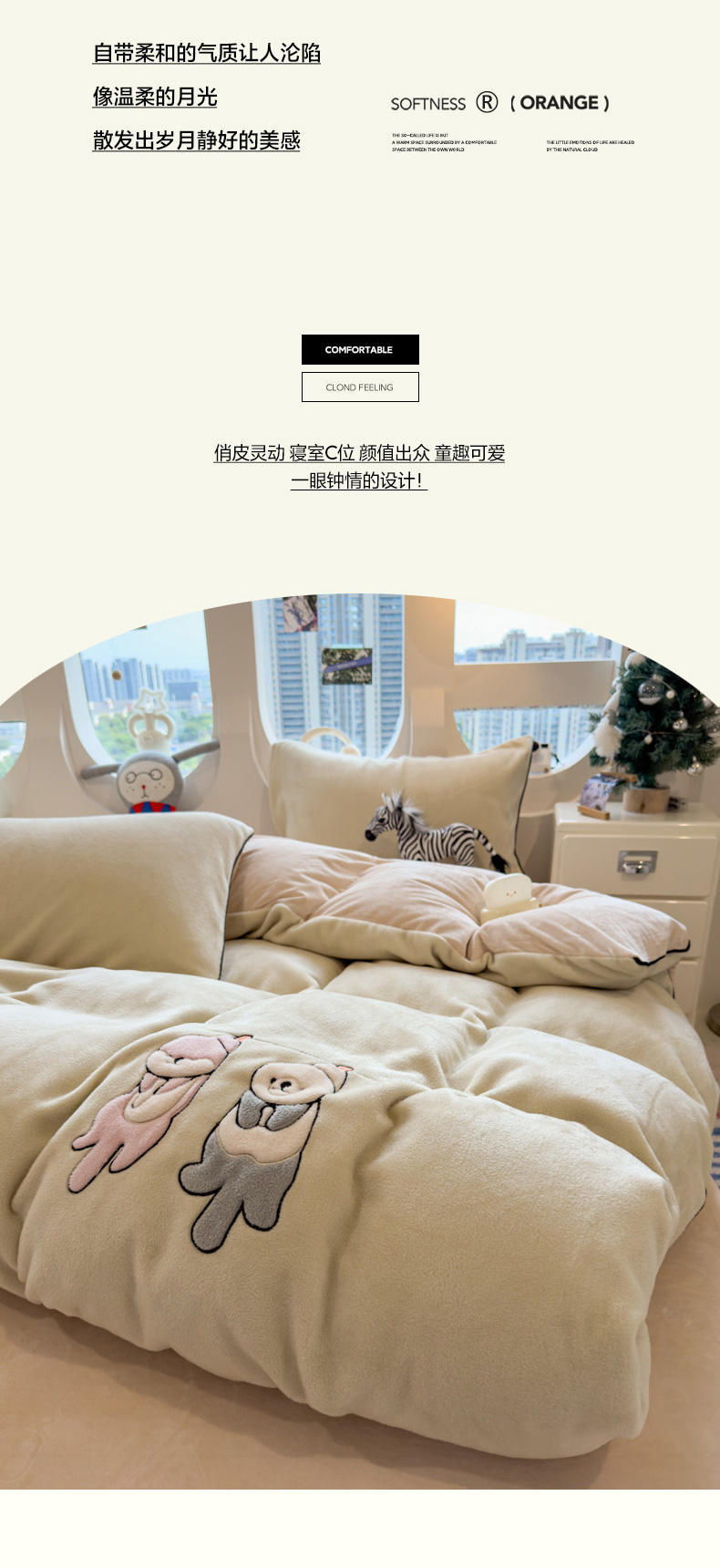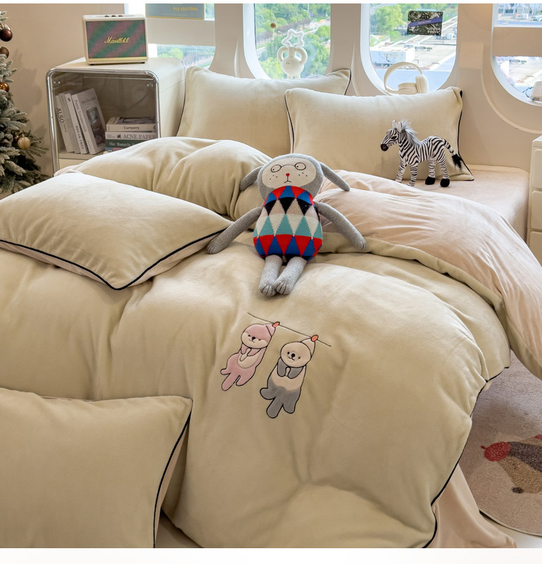 当前位置: 91家纺网 > 商品网购 > 床品套件 > 四件套 > 其它四件套 > 印季家纺 2025新款小两口海獭绒贴布绣四件套 小两口-淡绿-浅棕