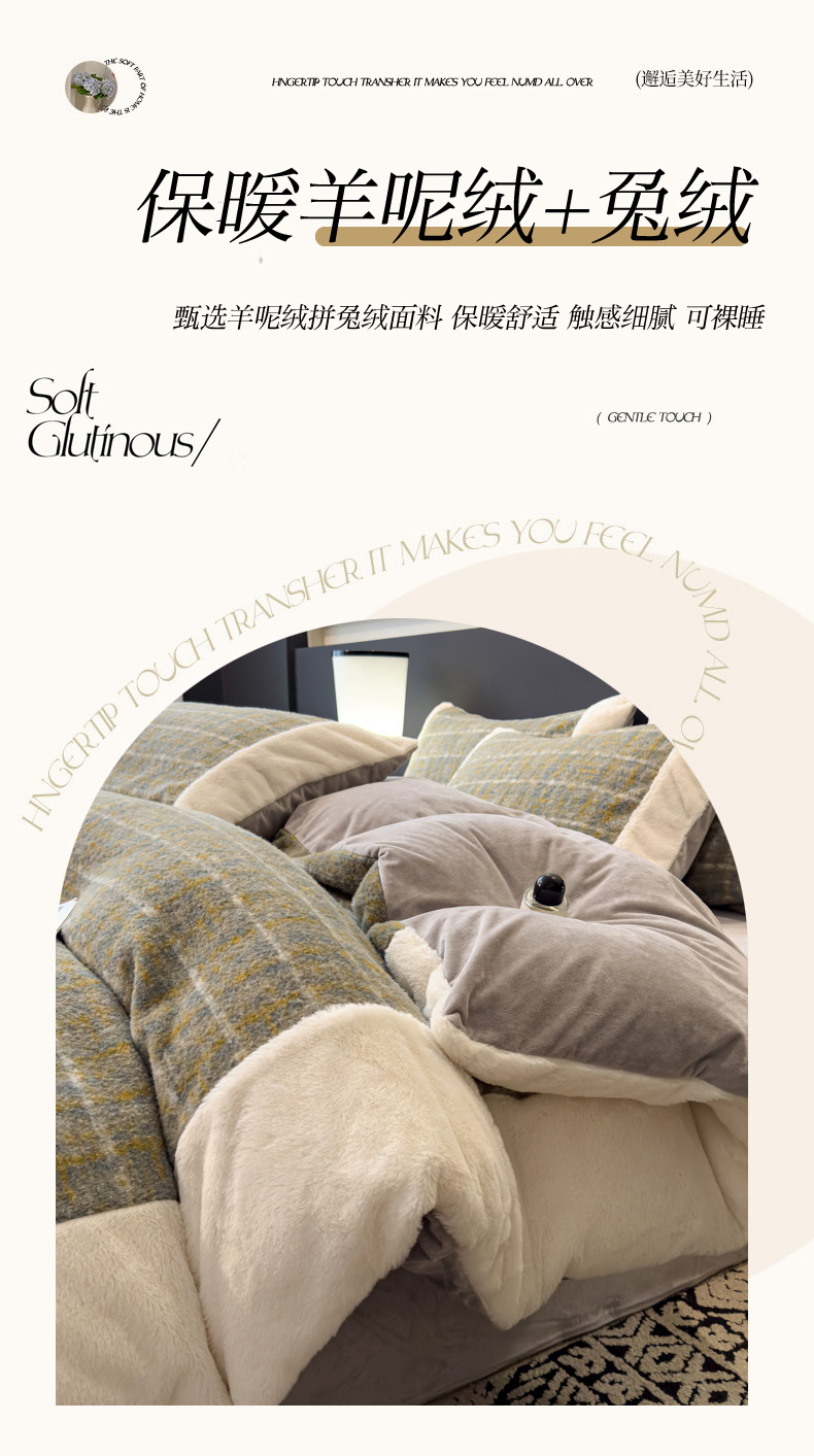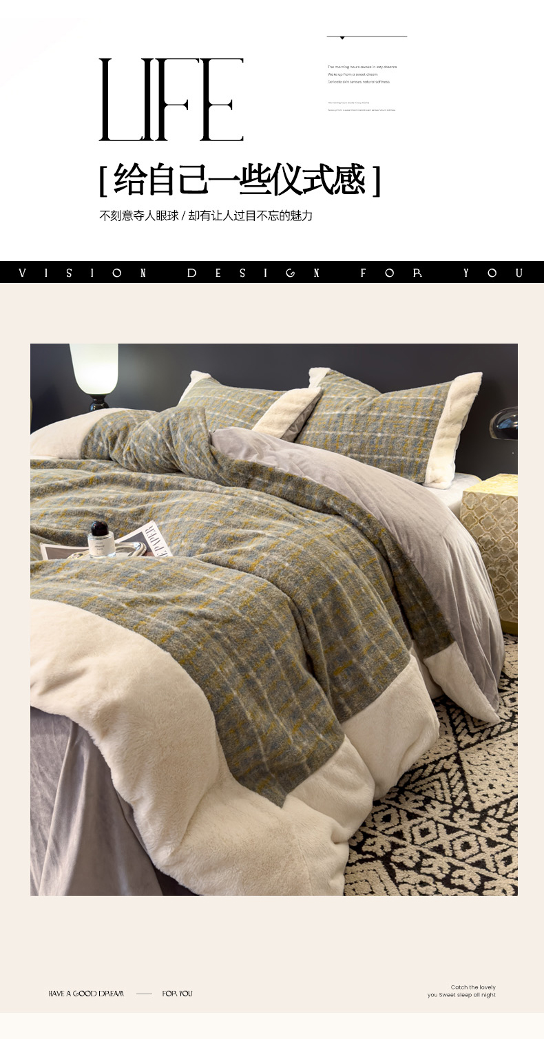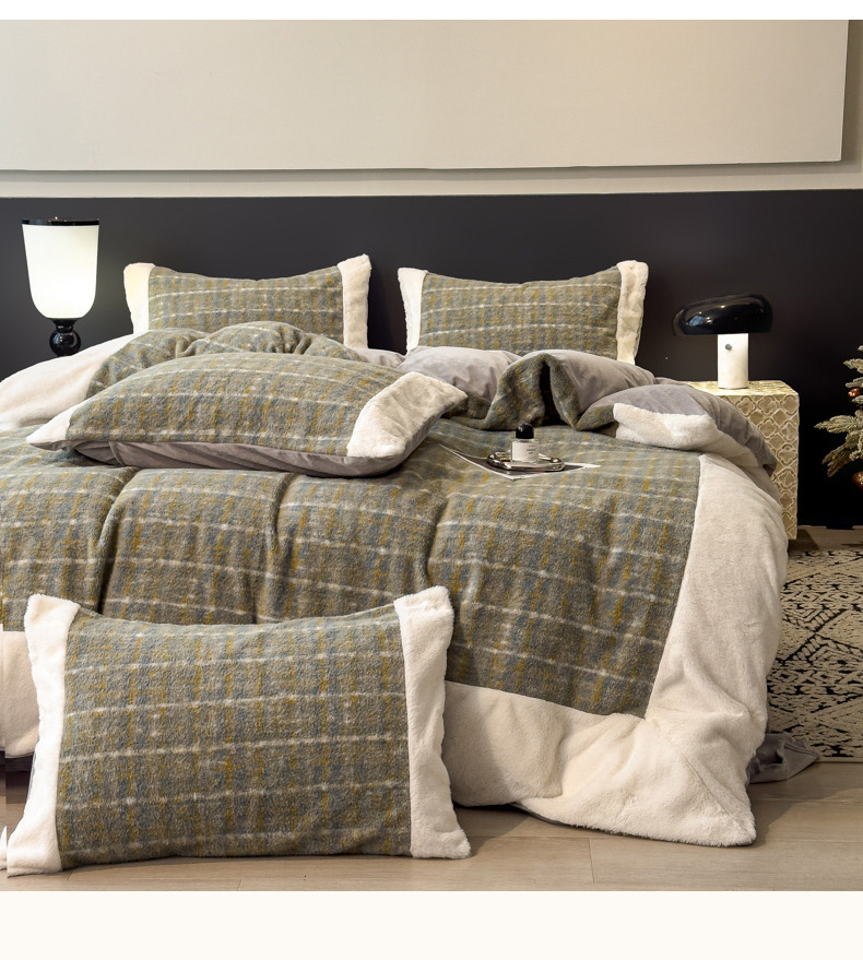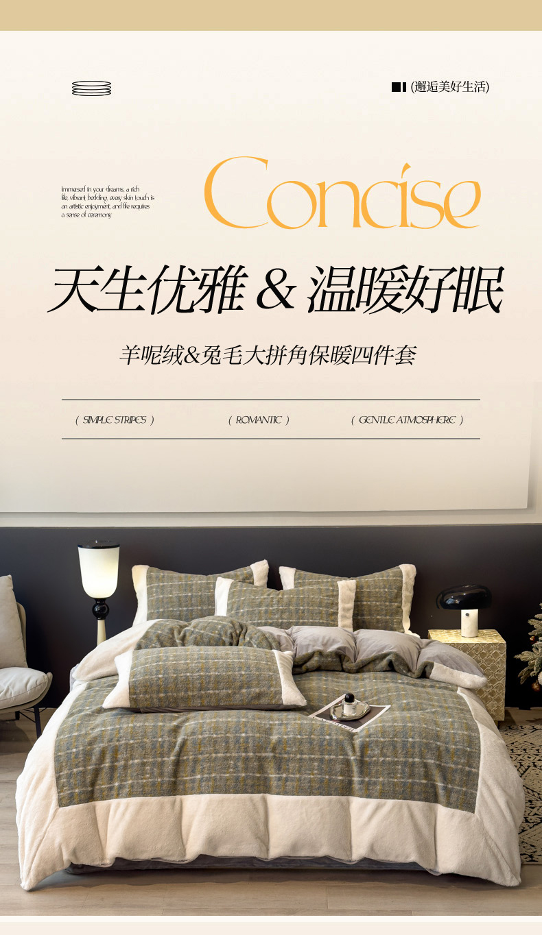 当前位置: 91家纺网 > 商品网购 > 床品套件 > 四件套 > 其它四件套 > 印季家纺 2025新款羊呢绒兔毛大拼角四件套 拼角-五彩小格