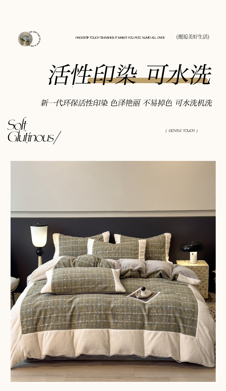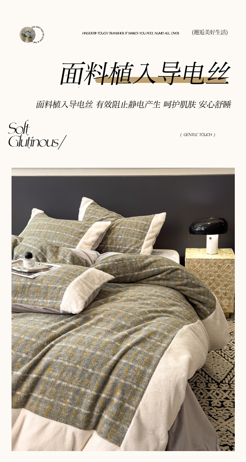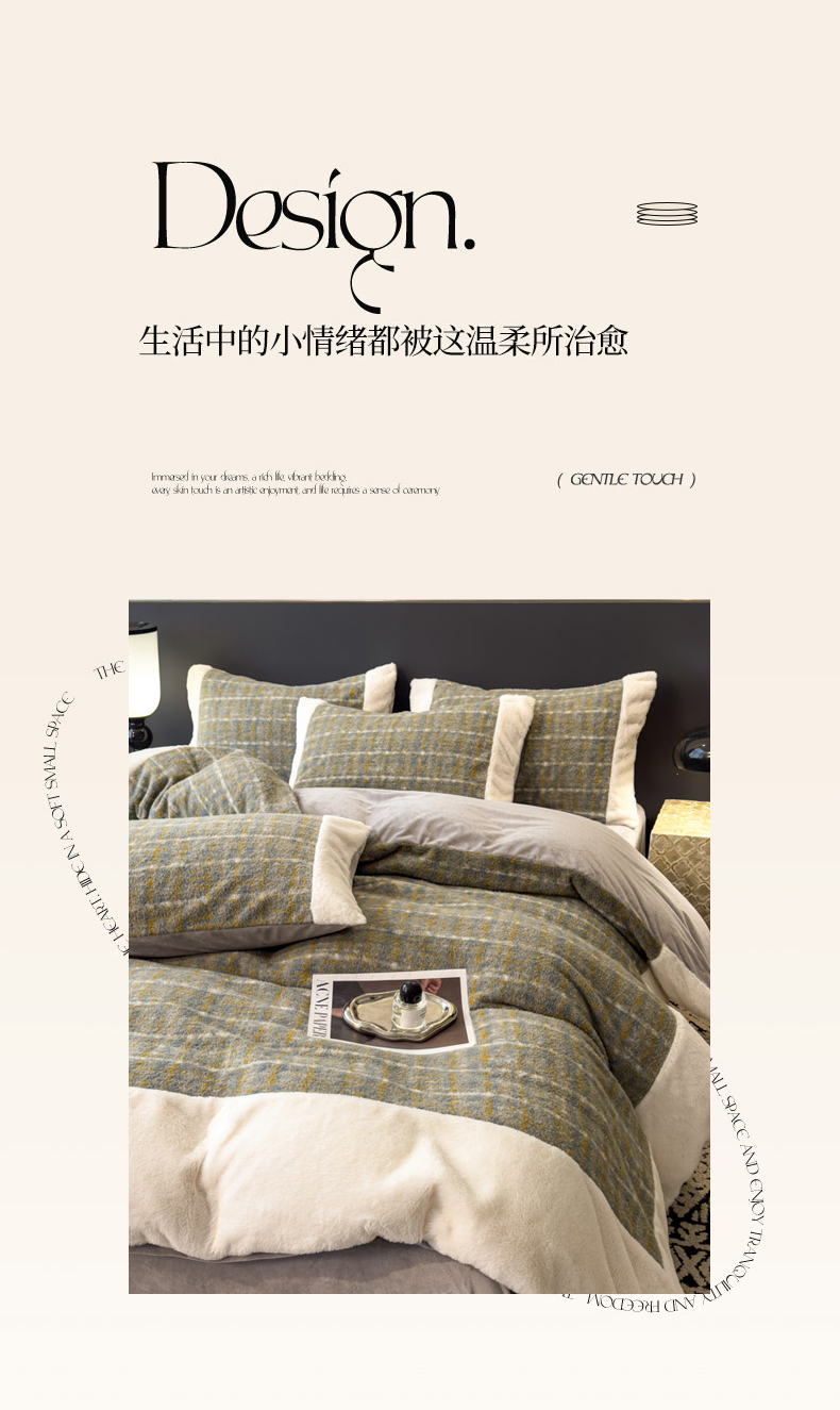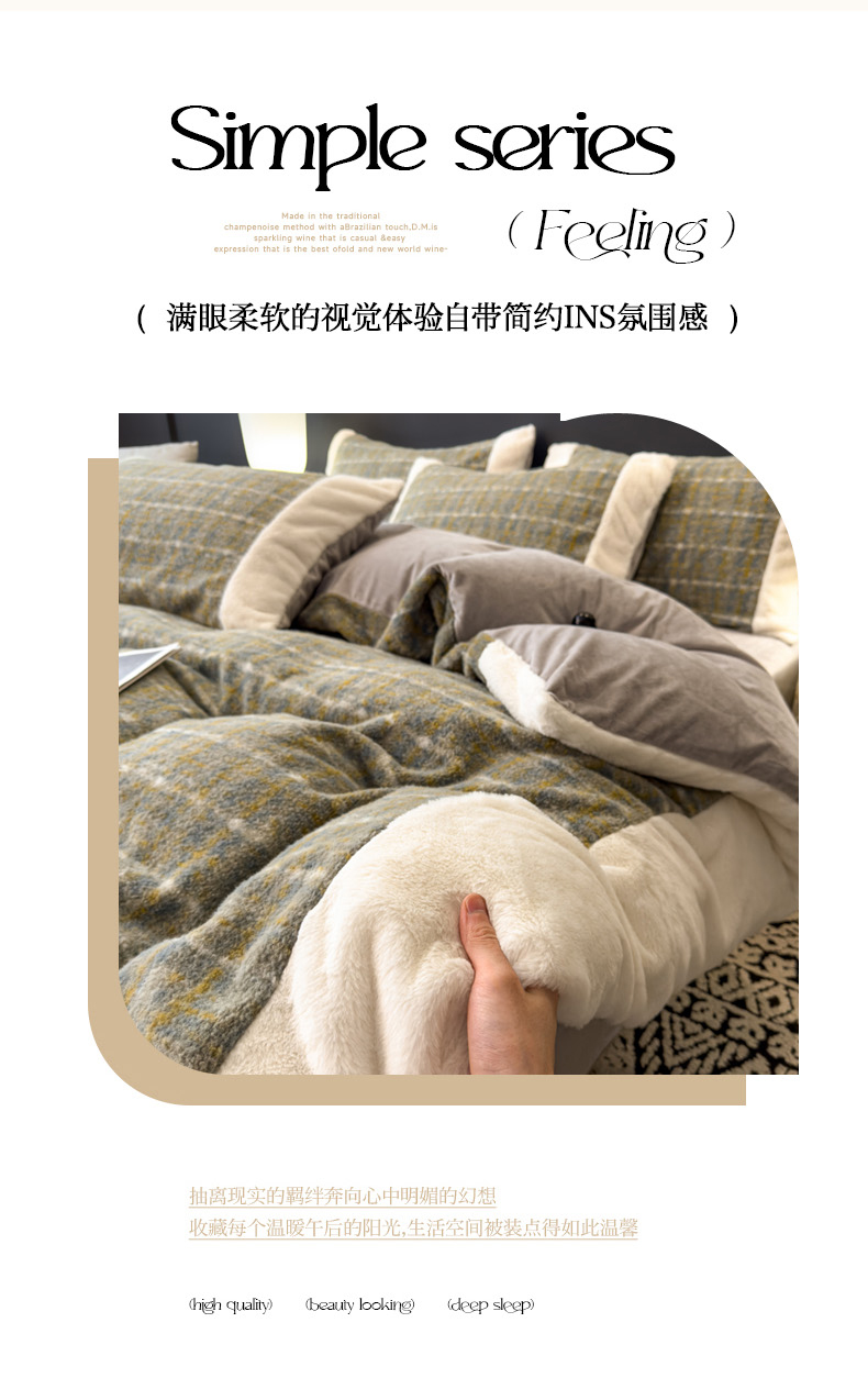 当前位置: 91家纺网 > 商品网购 > 床品套件 > 四件套 > 其它四件套 > 印季家纺 2025新款羊呢绒兔毛大拼角四件套 拼角-五彩小格
