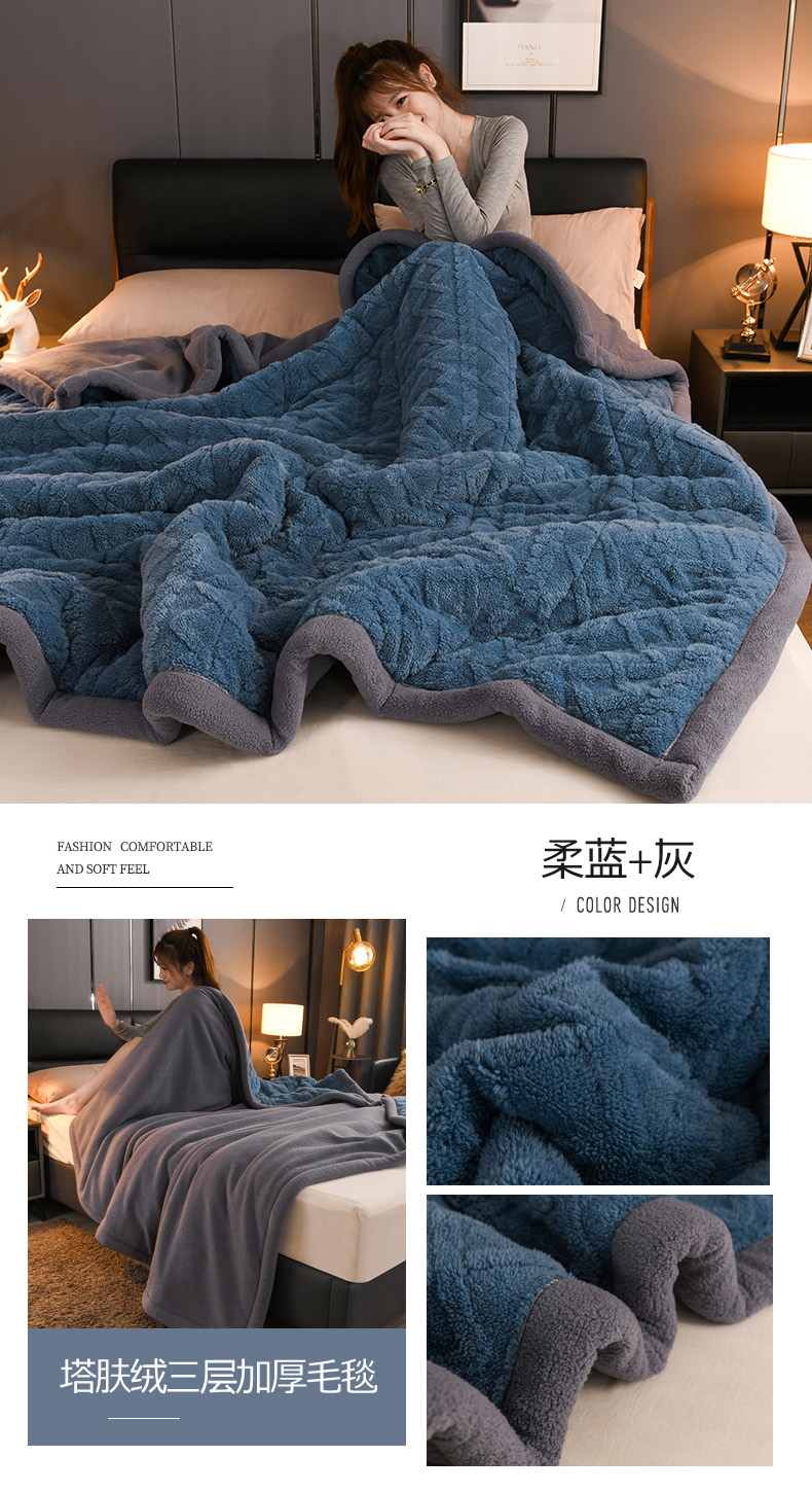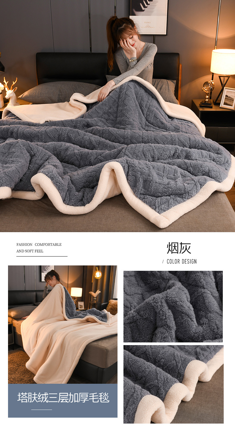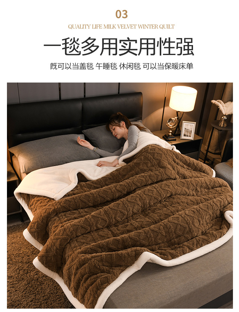 印季家纺 2025秋冬新款三层夹棉加厚-塔肤绒毛毯毯子多功能盖毯 奶茶色