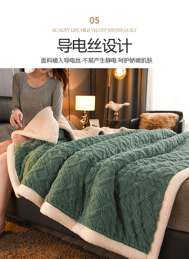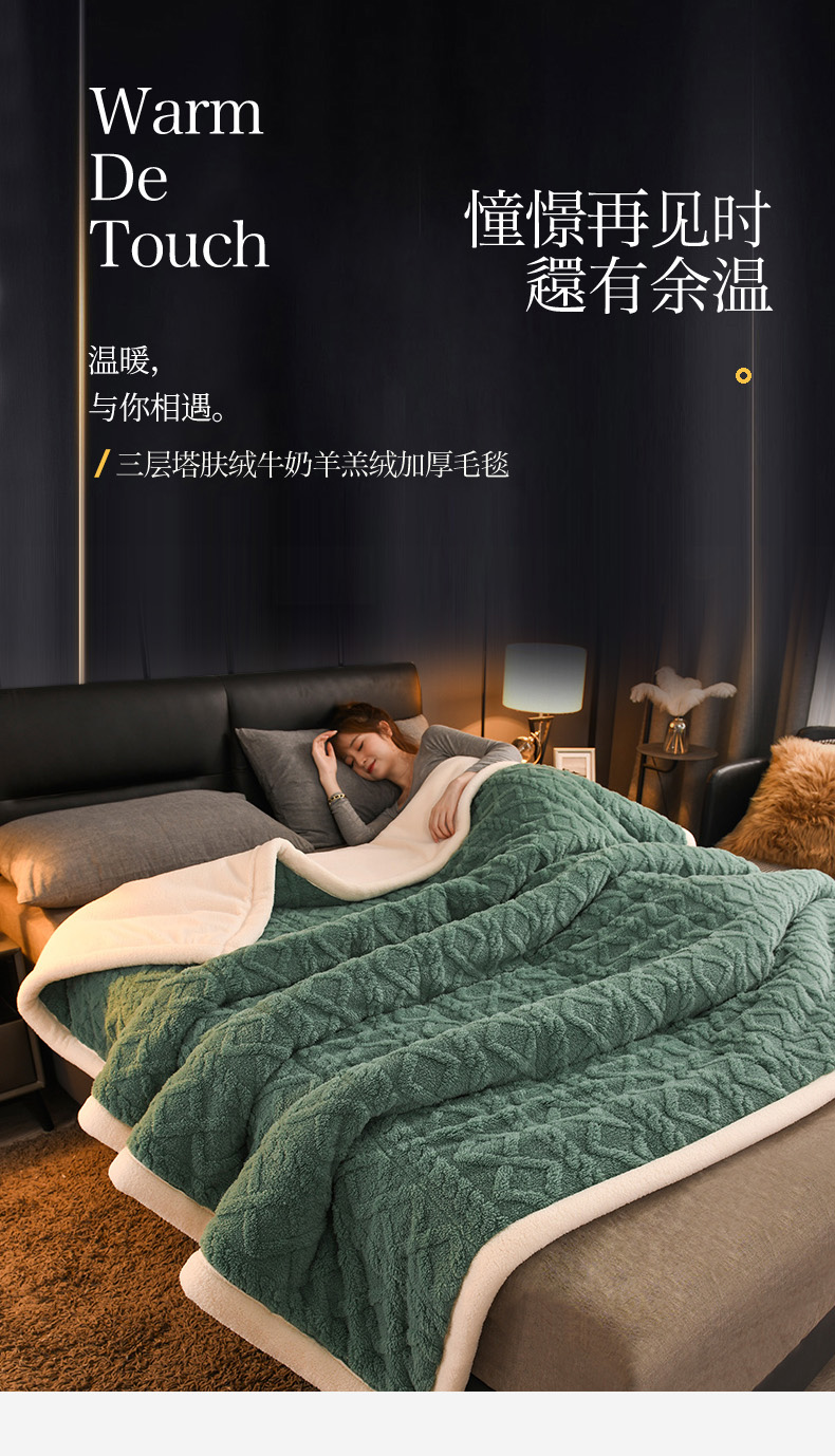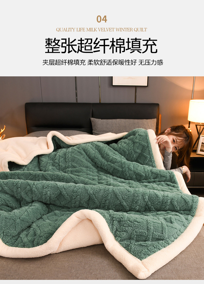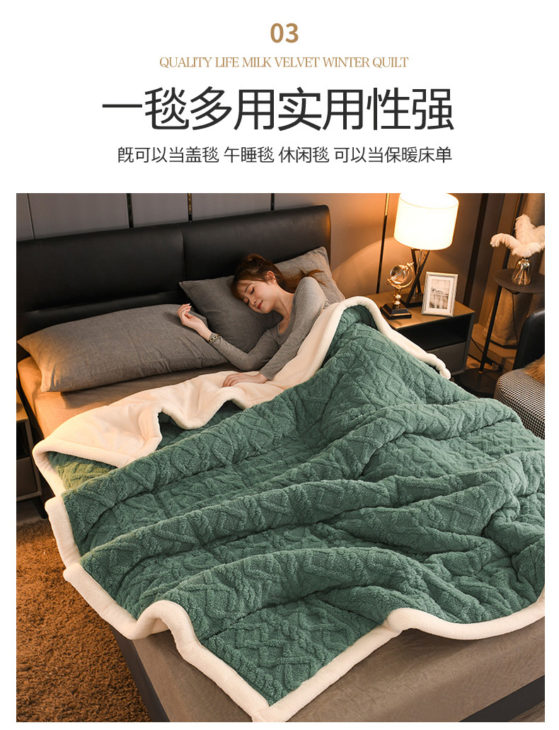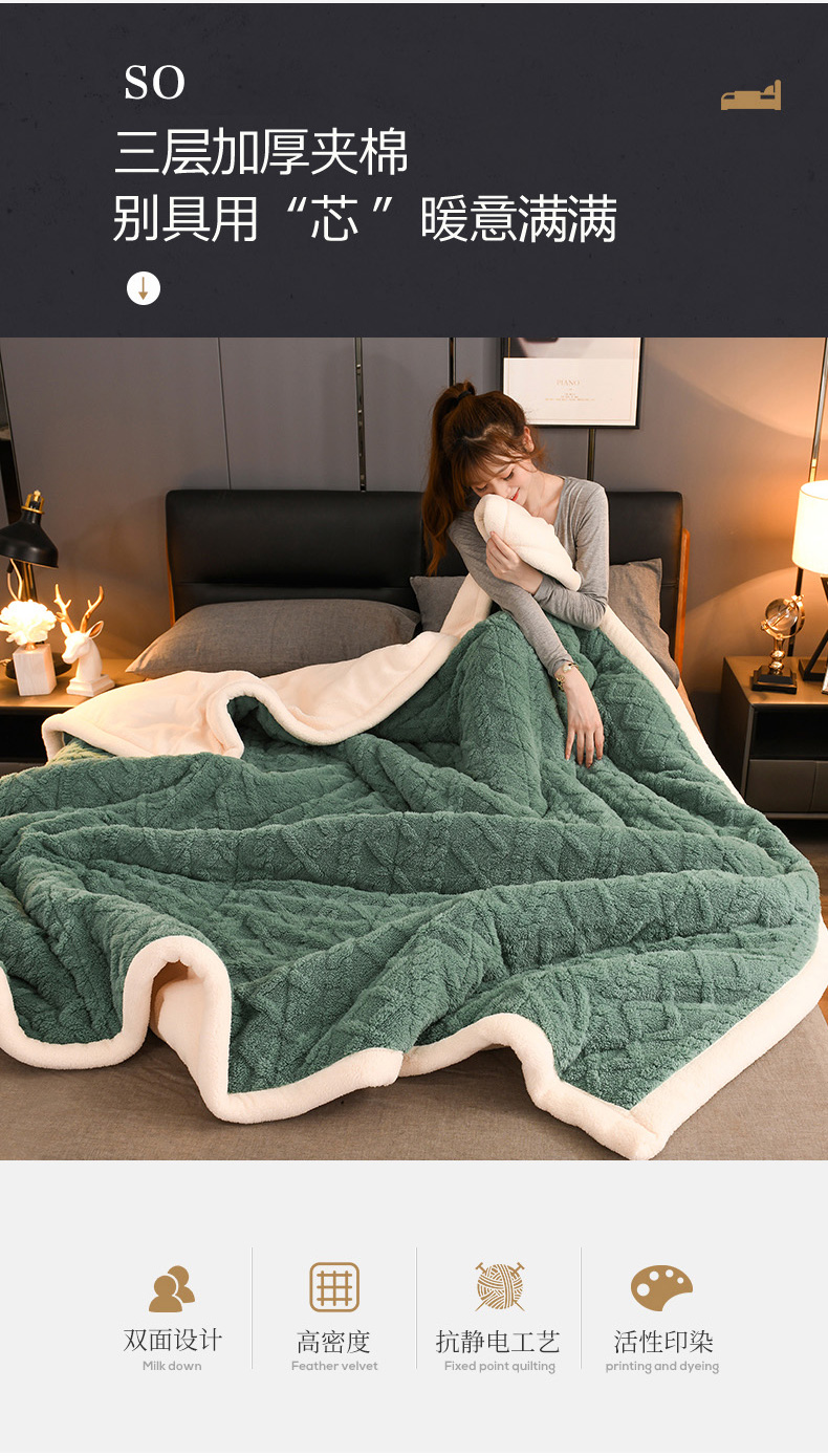印季家纺 2025秋冬新款三层夹棉加厚-塔肤绒毛毯毯子多功能盖毯 祖母绿