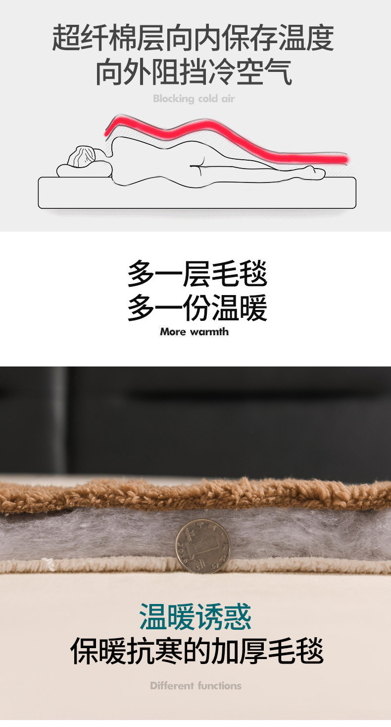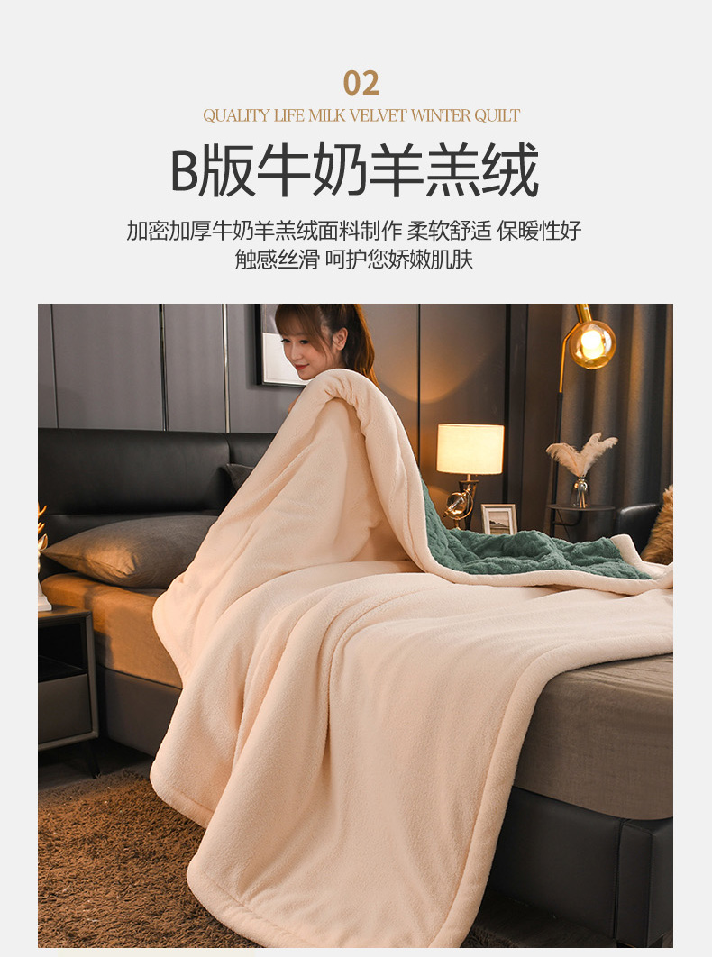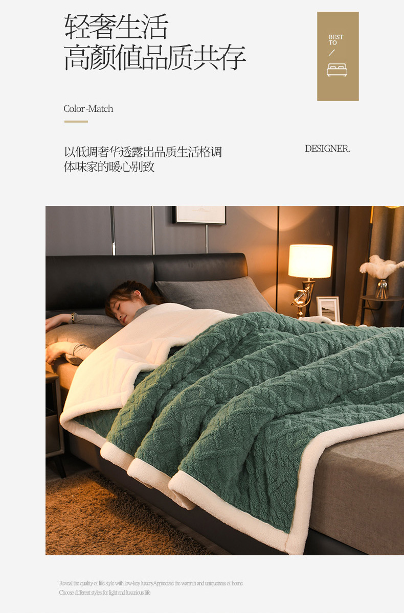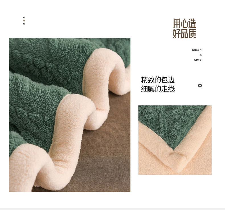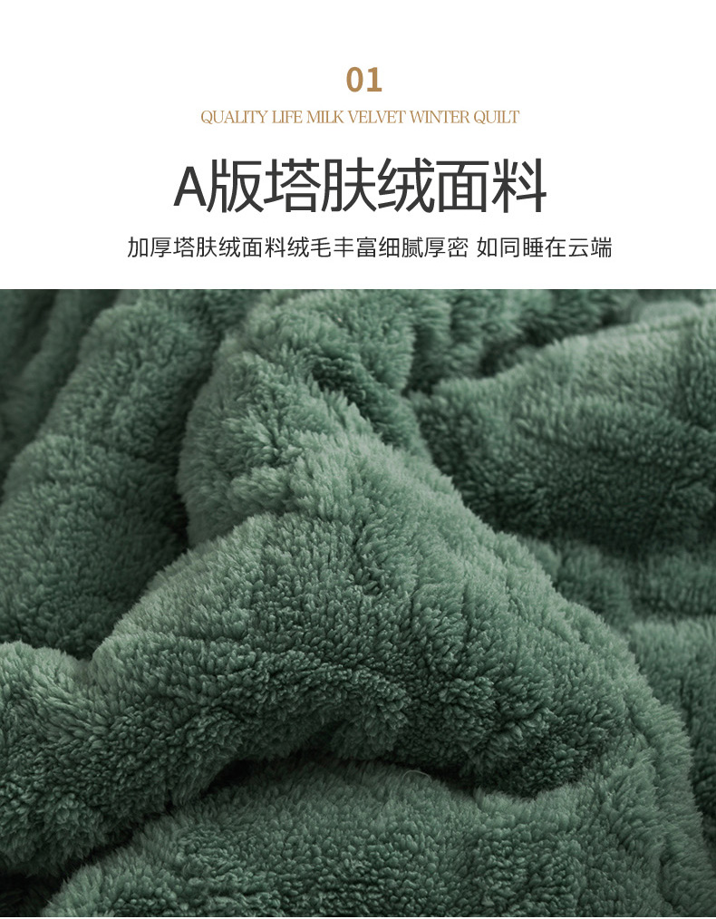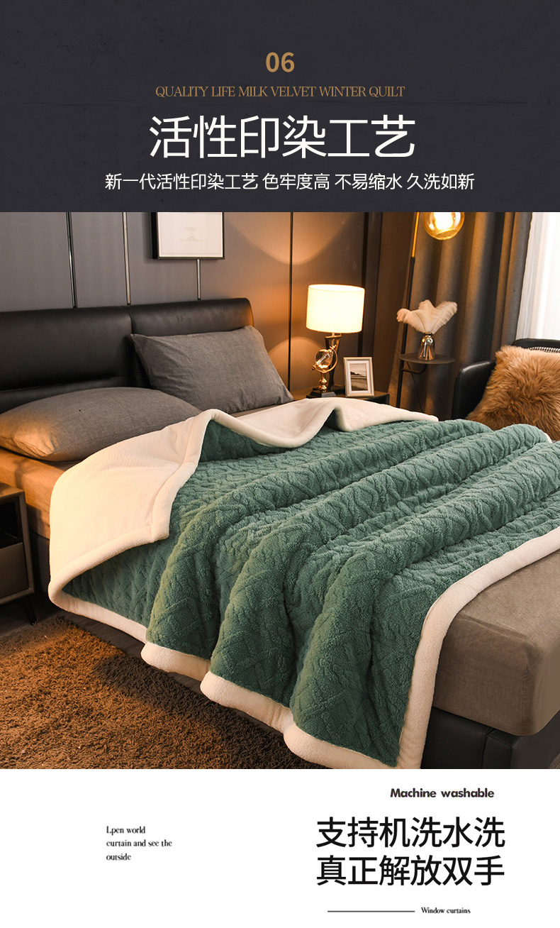 印季家纺 2025秋冬新款三层夹棉加厚-塔肤绒毛毯毯子多功能盖毯 祖母绿
