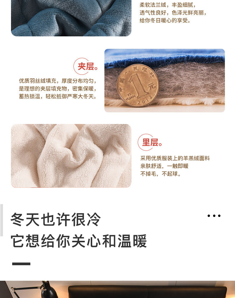 商品名称:印季家纺 2025秋冬新款三层夹棉加厚复合羊羔绒毛毯毯子多功能盖毯 宝蓝+白