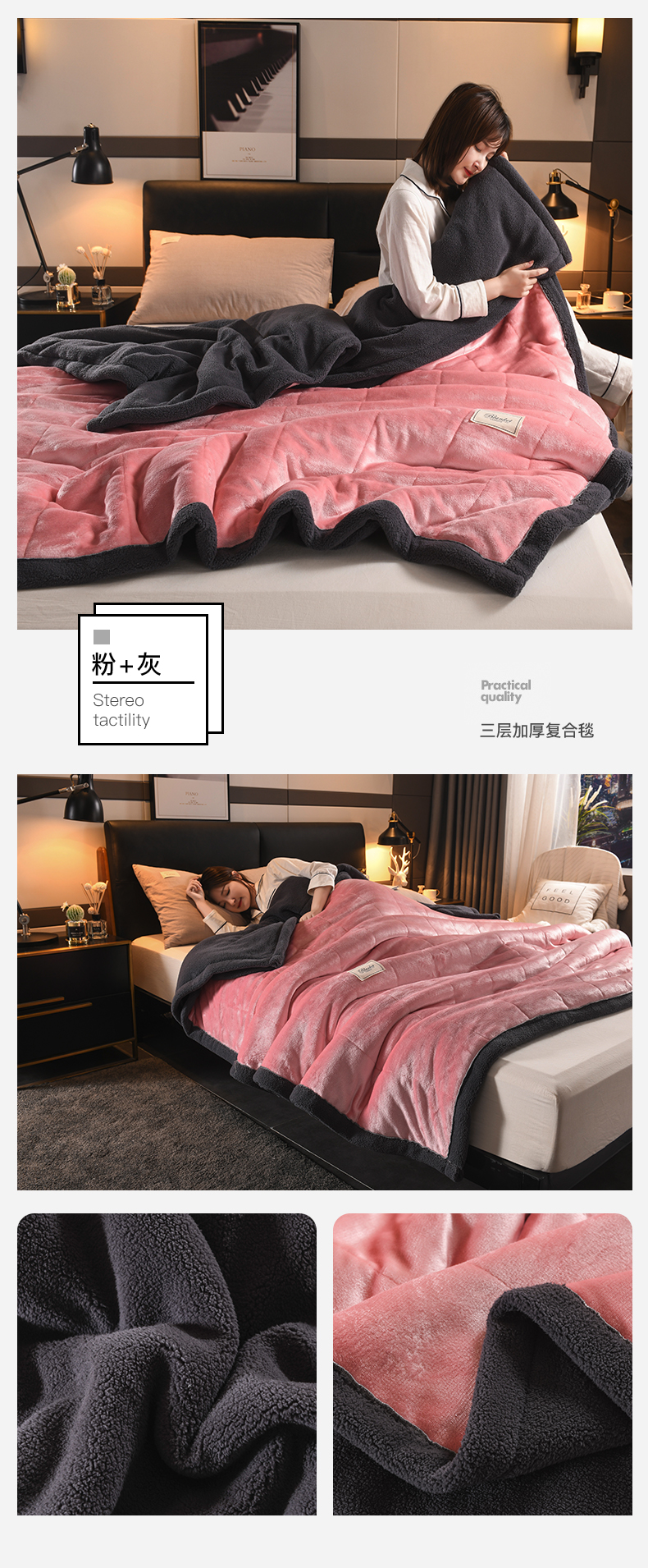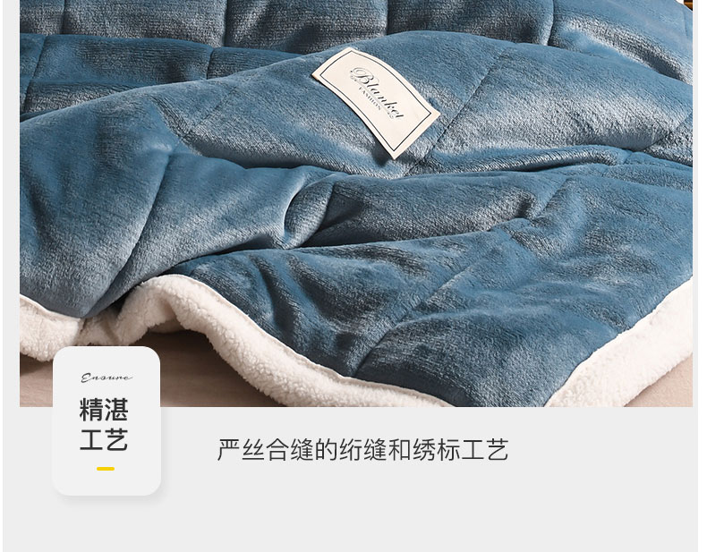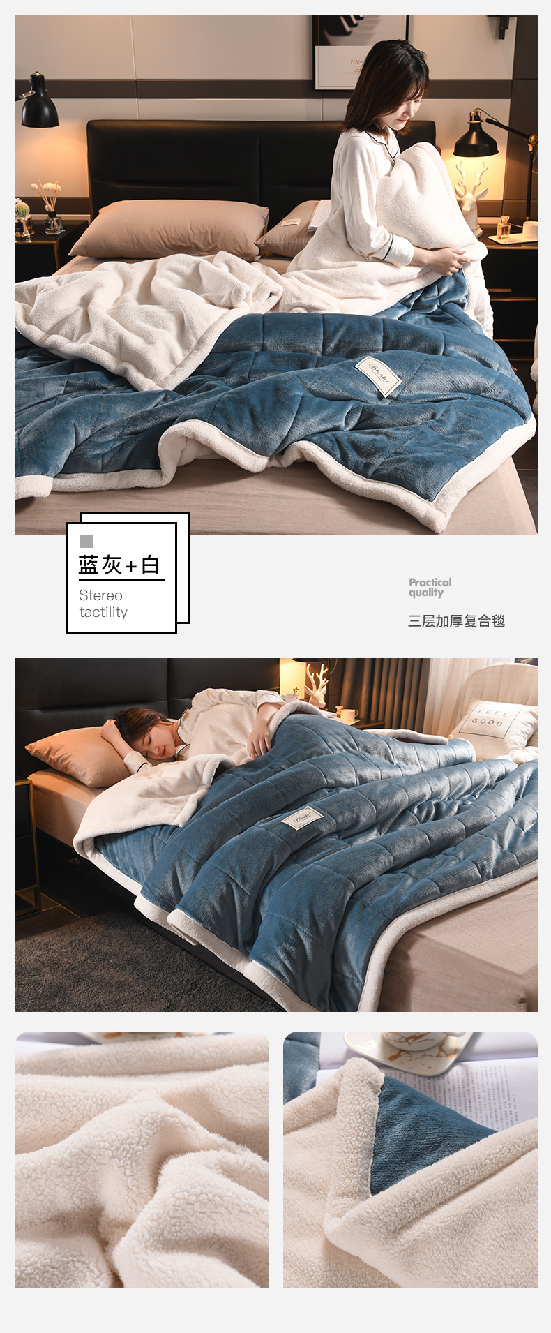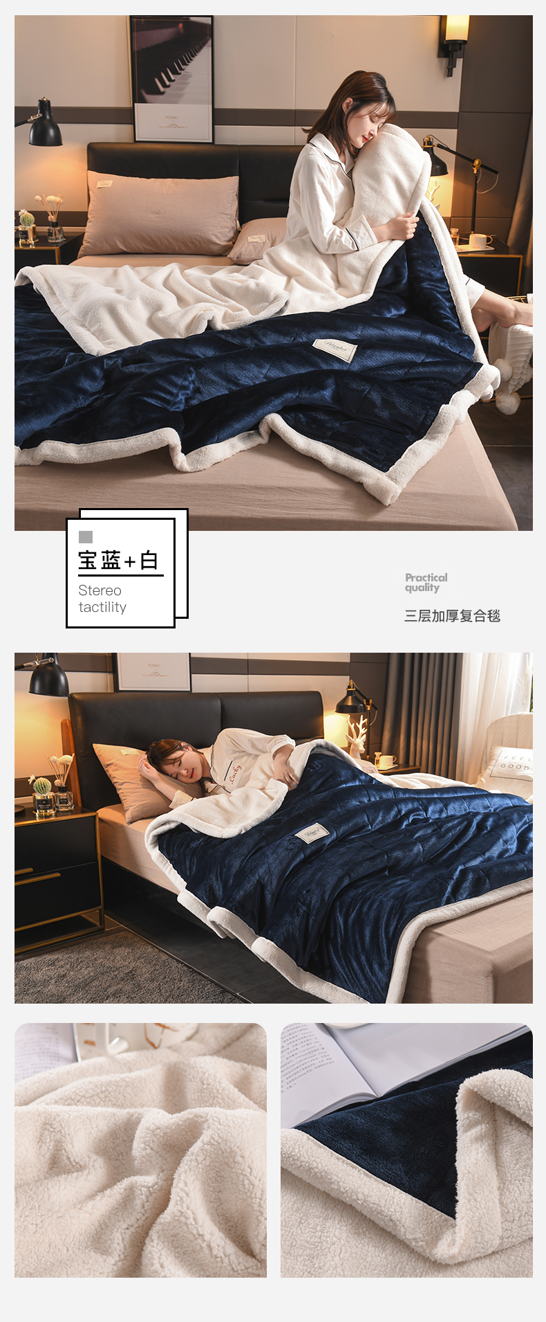 印季家纺 2025秋冬新款三层夹棉加厚复合羊羔绒毛毯毯子多功能盖毯 宝蓝+白