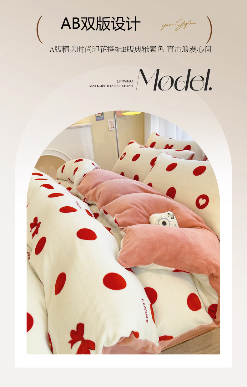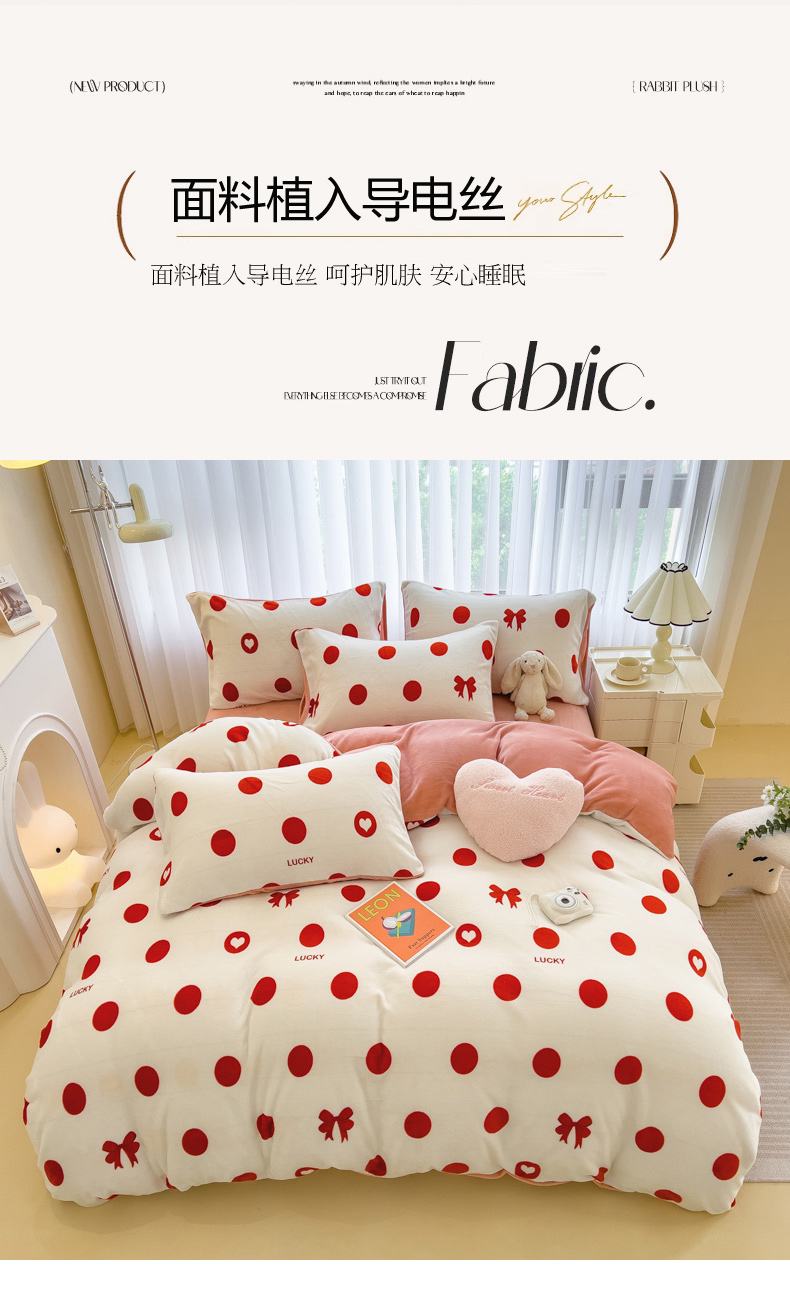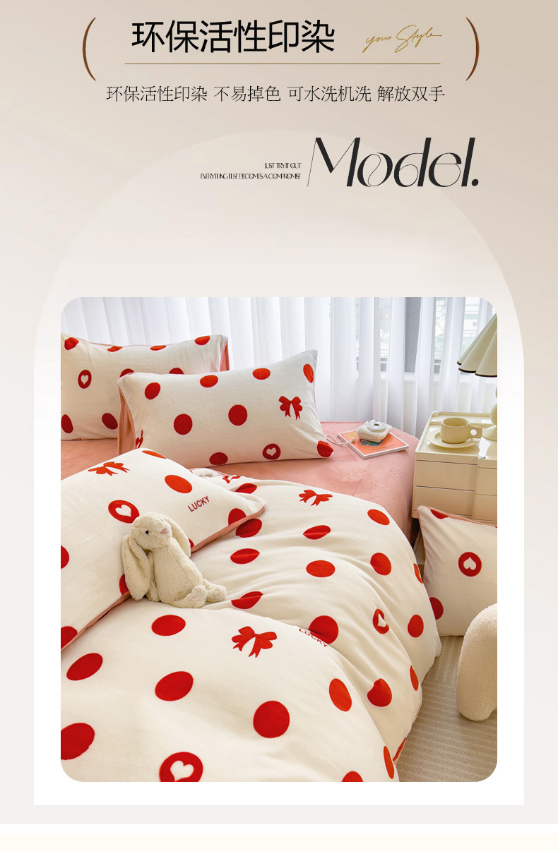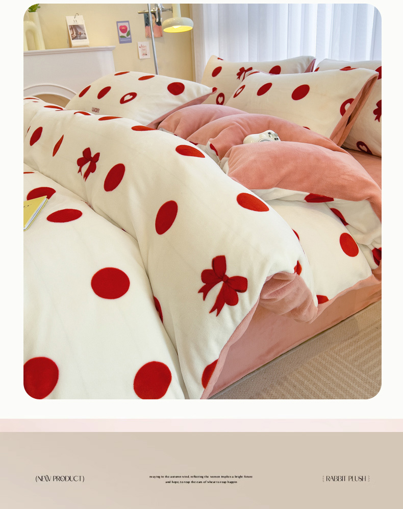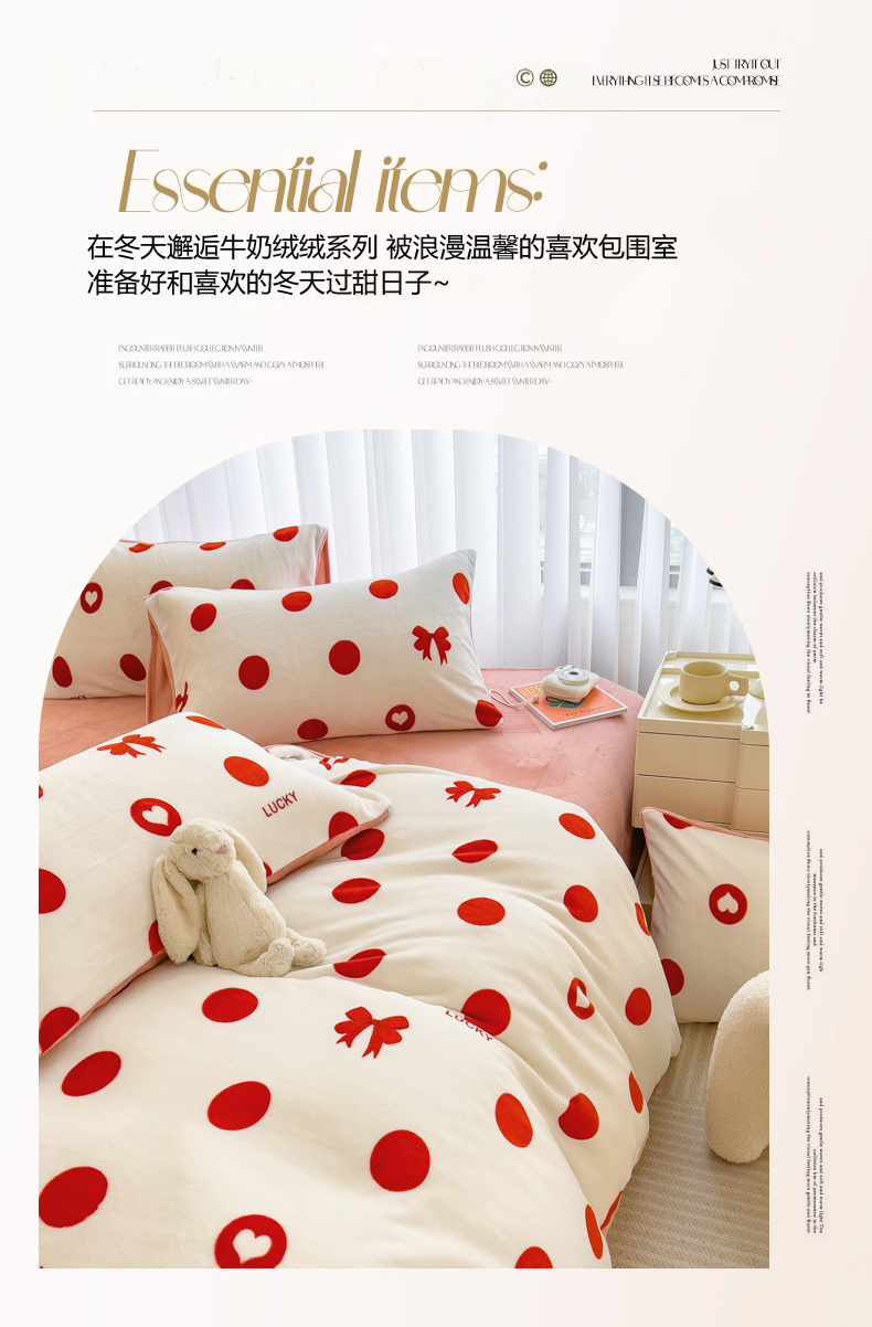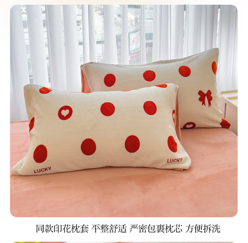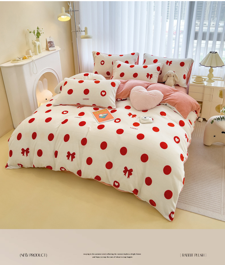 当前位置: 91家纺网 > 商品网购 > 床品套件 > 四件套 > 牛奶绒四件套 > 印季家纺 2025新款加厚印花保暖牛奶绒四件套 点点幸运-红