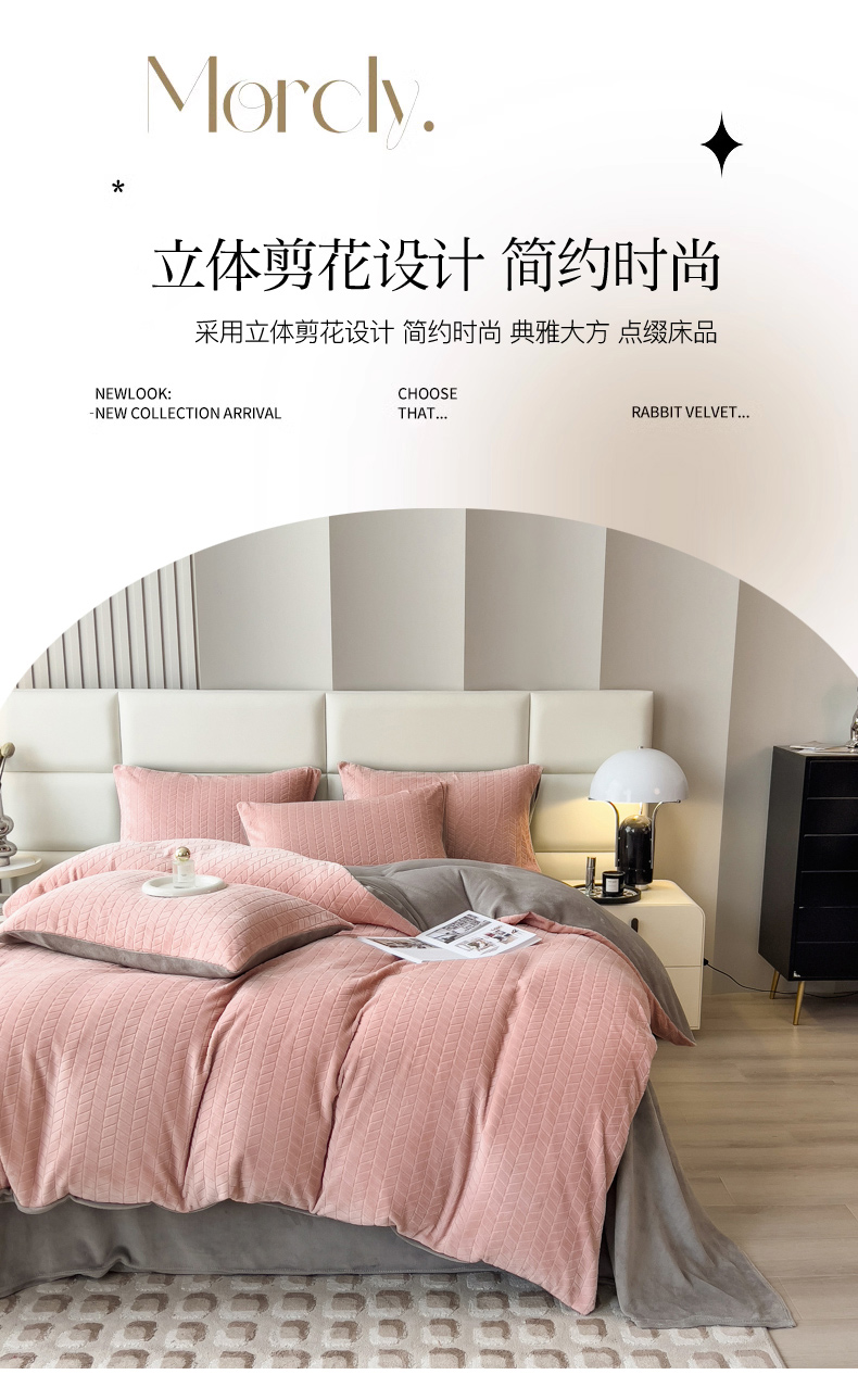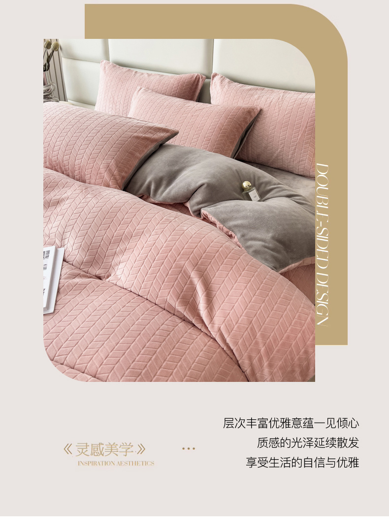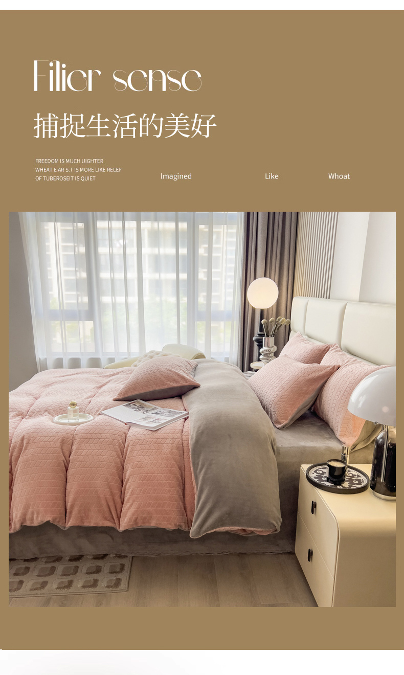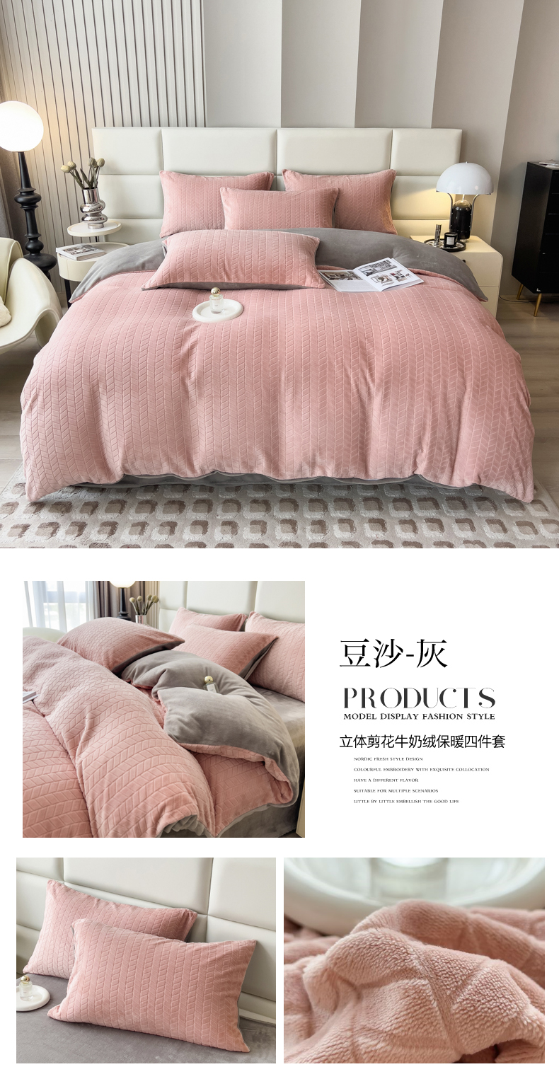 当前位置: 91家纺网 > 商品网购 > 床品套件 > 四件套 > 牛奶绒四件套 > 印季家纺 2025新款立体剪花麦穗牛奶绒四件套 豆沙-灰
