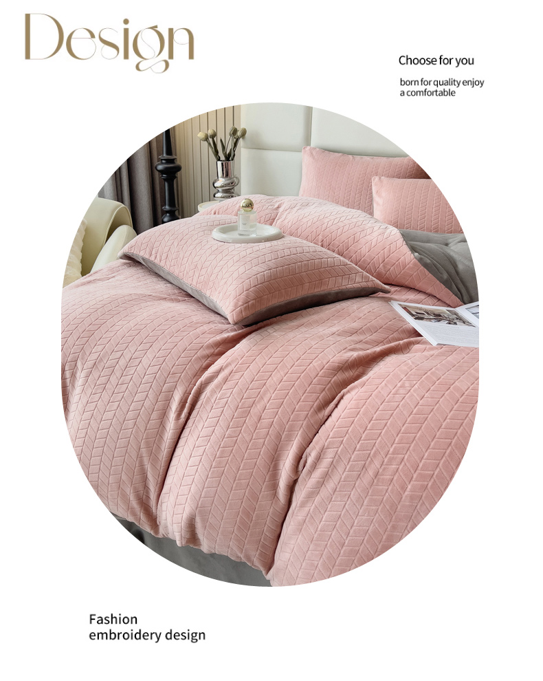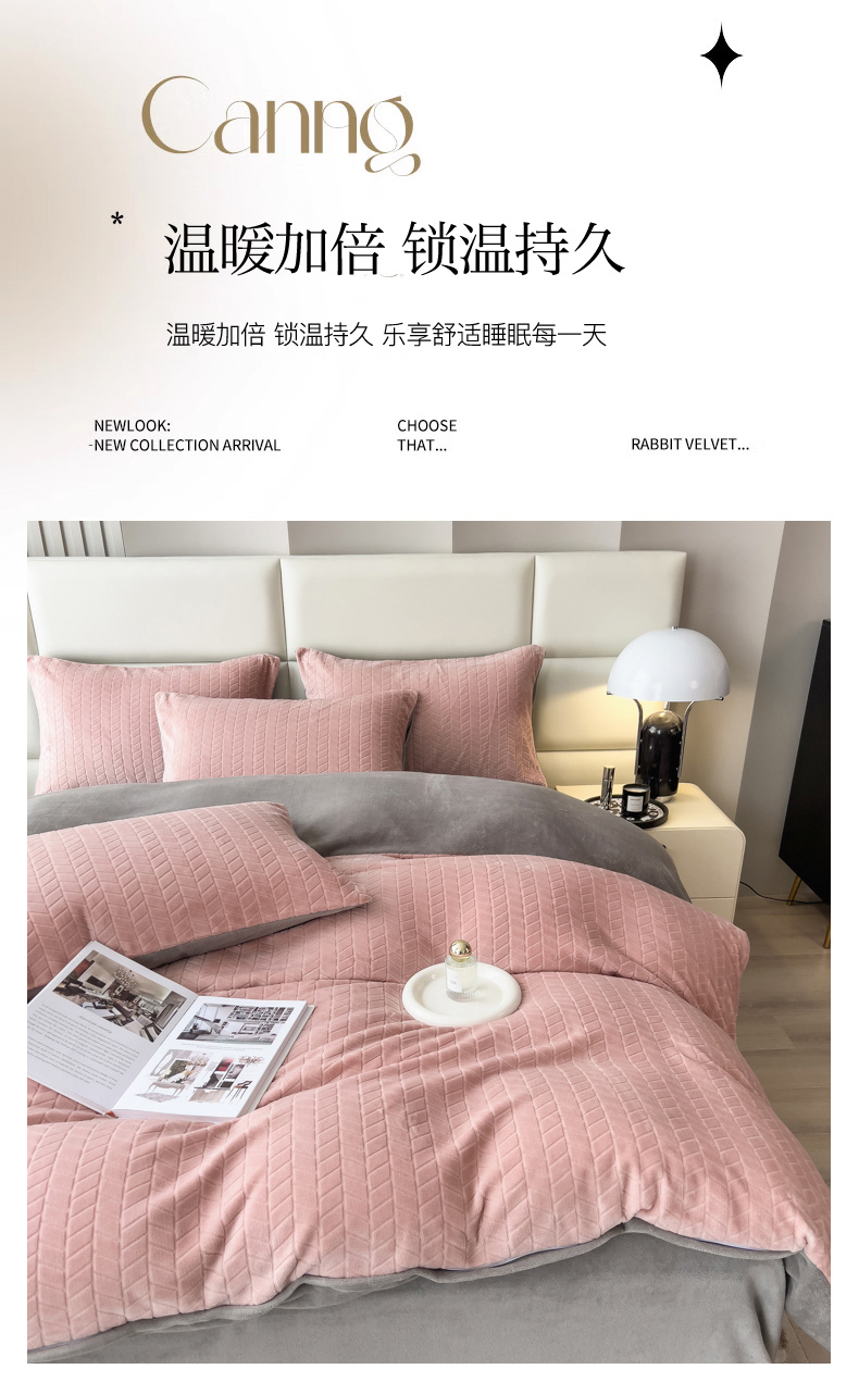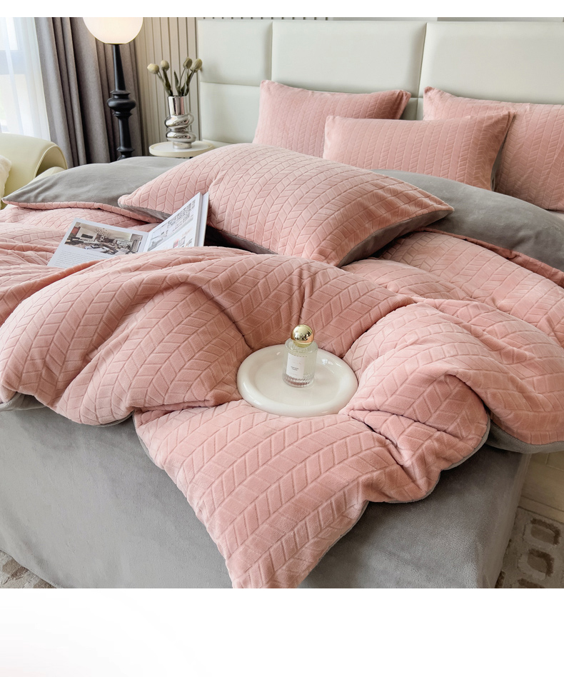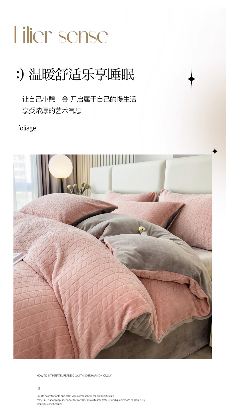 当前位置: 91家纺网 > 商品网购 > 床品套件 > 四件套 > 牛奶绒四件套 > 印季家纺 2025新款立体剪花麦穗牛奶绒四件套 豆沙-灰