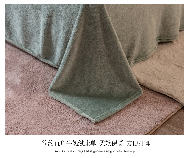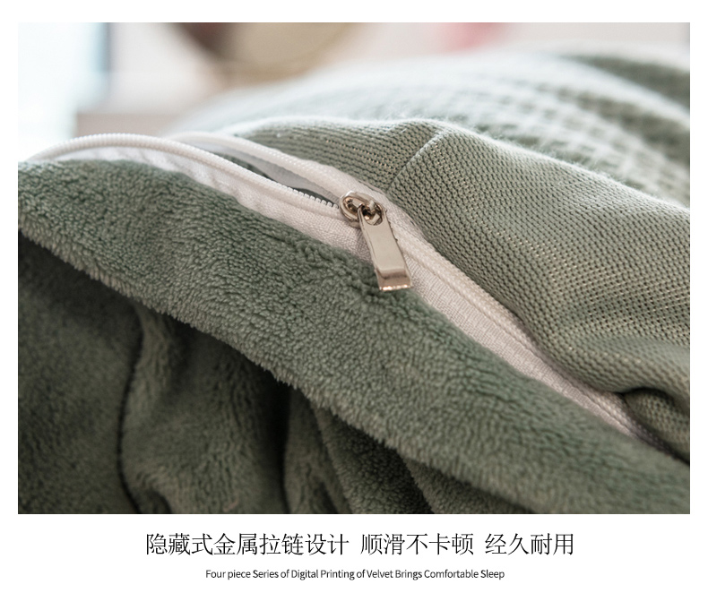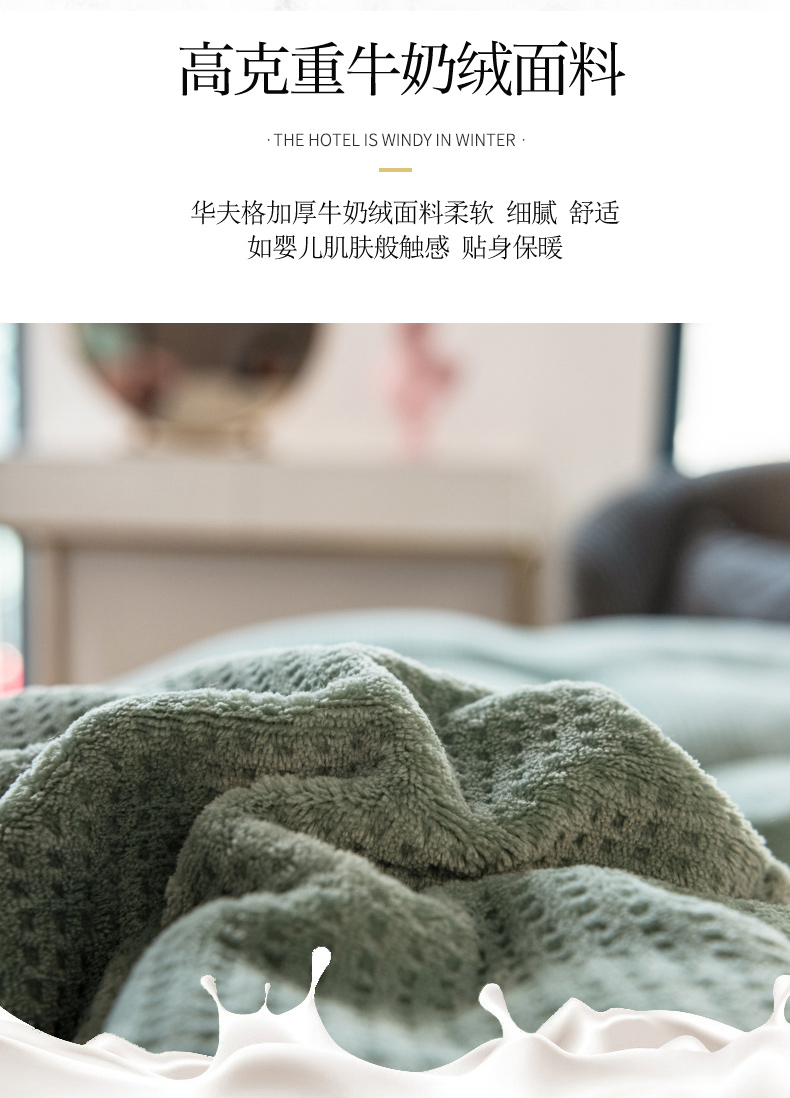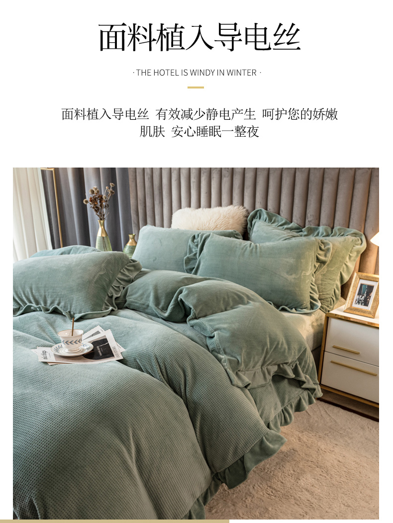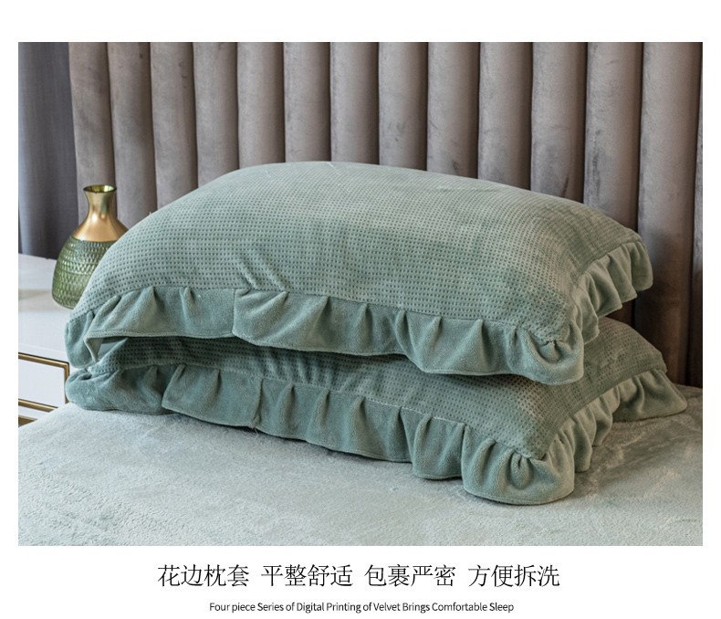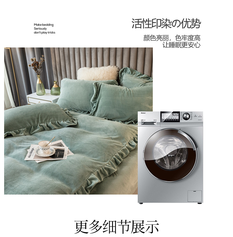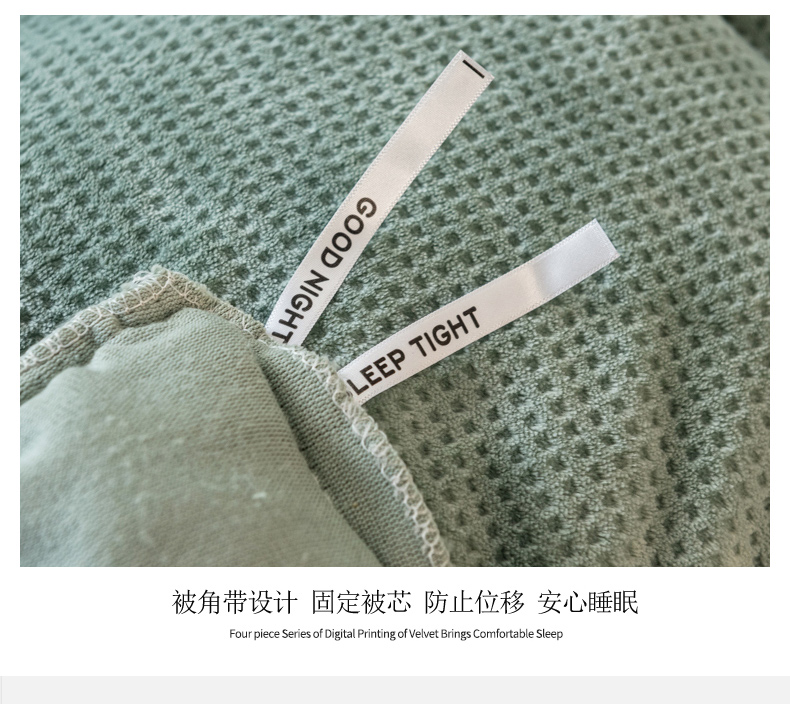 当前位置: 91家纺网 > 商品网购 > 床品套件 > 四件套 > 牛奶绒四件套 > 印季家纺 2025新款华夫格牛奶绒花边四件套 湖绿