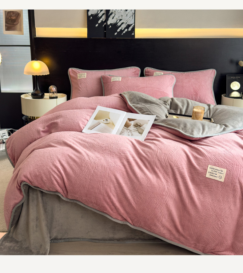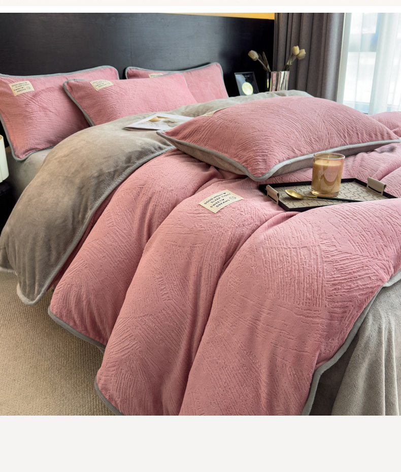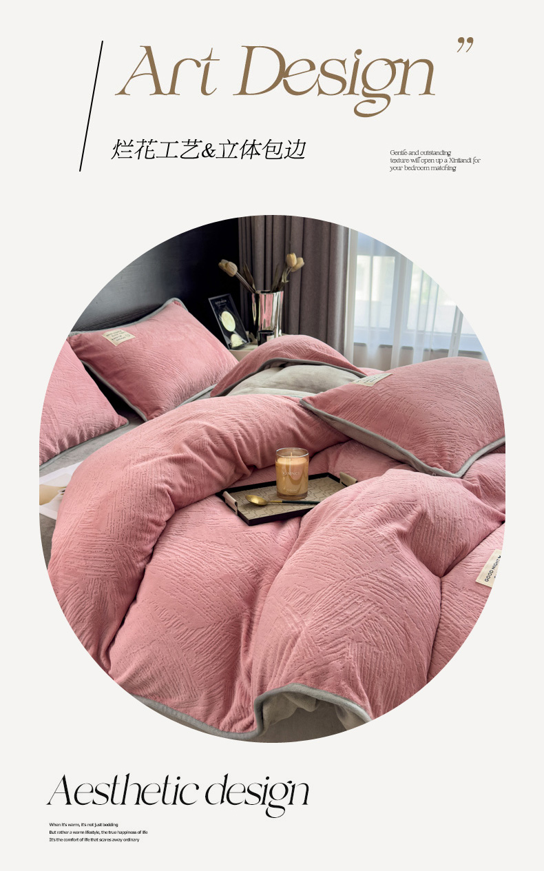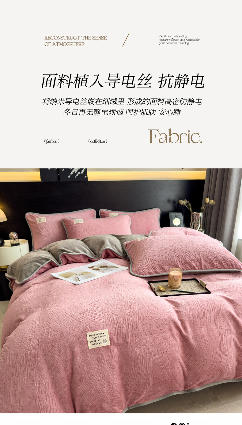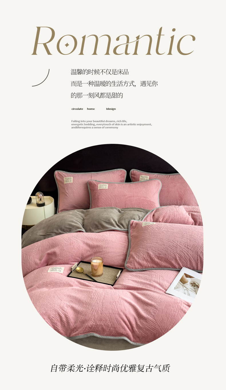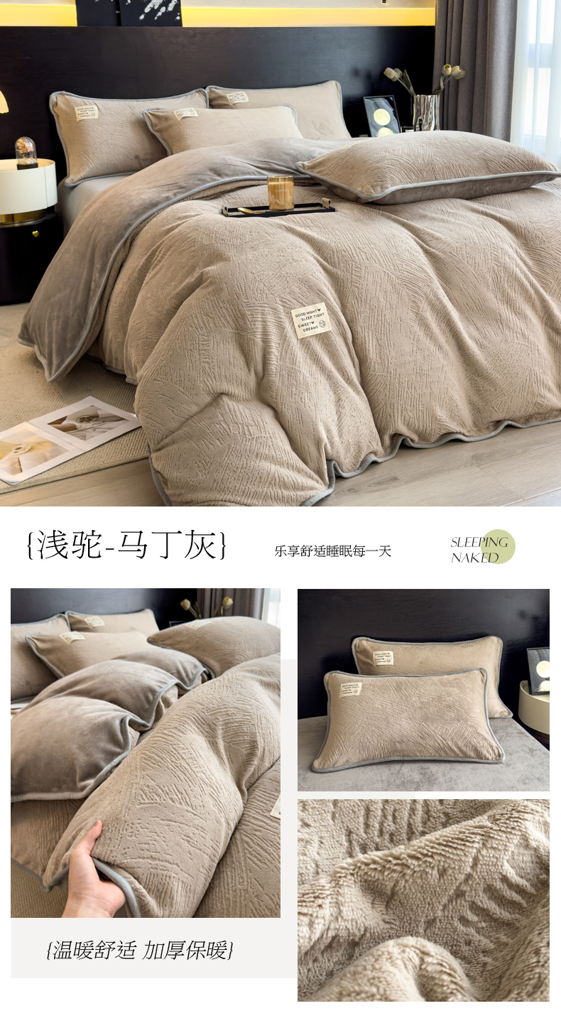 当前位置: 91家纺网 > 商品网购 > 床品套件 > 四件套 > 牛奶绒四件套 > 印季家纺 2025新款牛奶绒包边款烂花四件套 豆沙-马丁灰