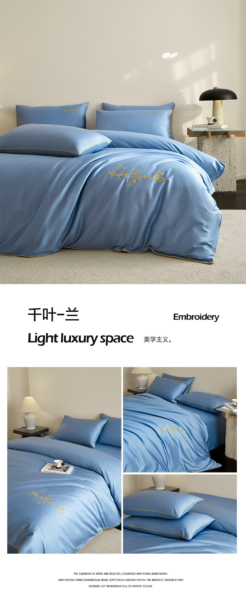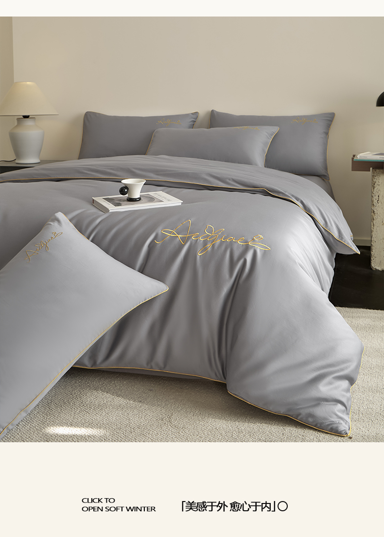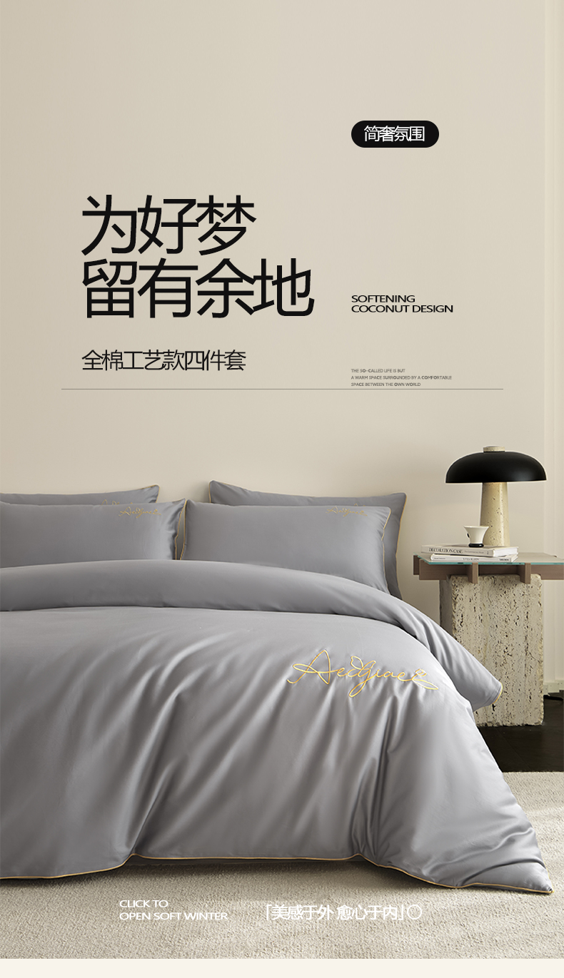 当前位置: 91家纺网 > 商品网购 > 床品套件 > 四件套 > 全棉普通四件套 > 涵宸家纺 2026新款全棉工艺款简奢刺绣四件套-千叶 千叶-山灰