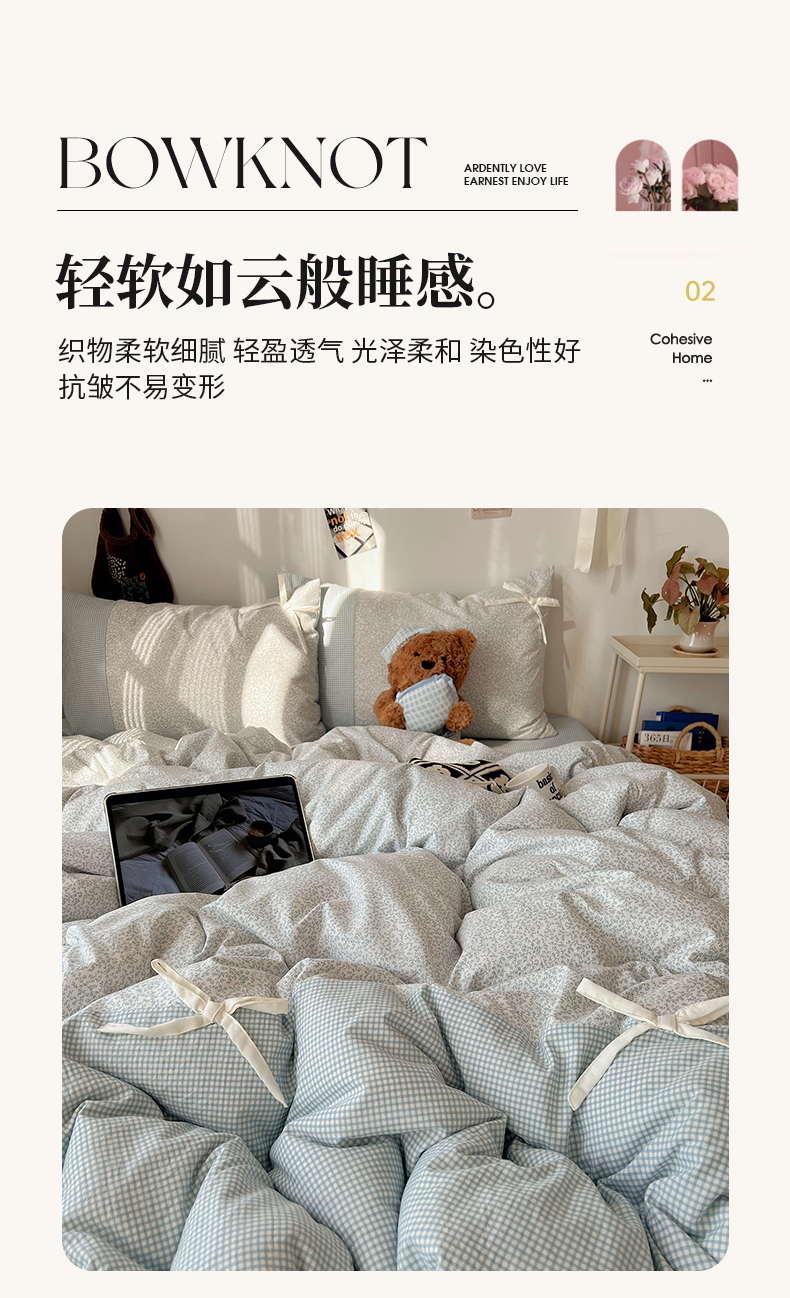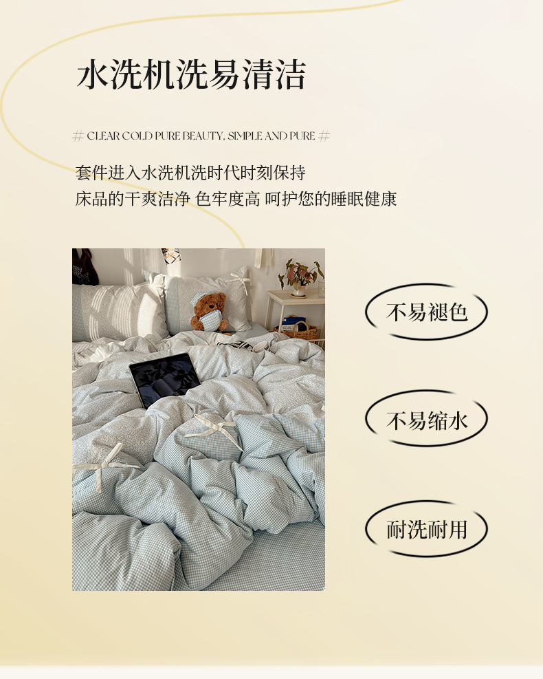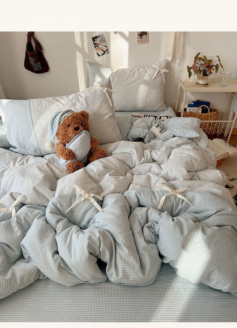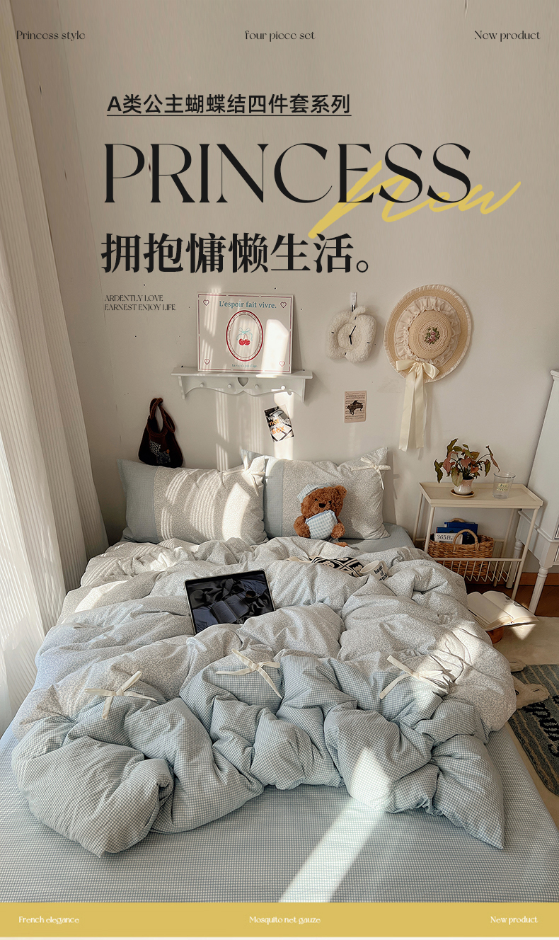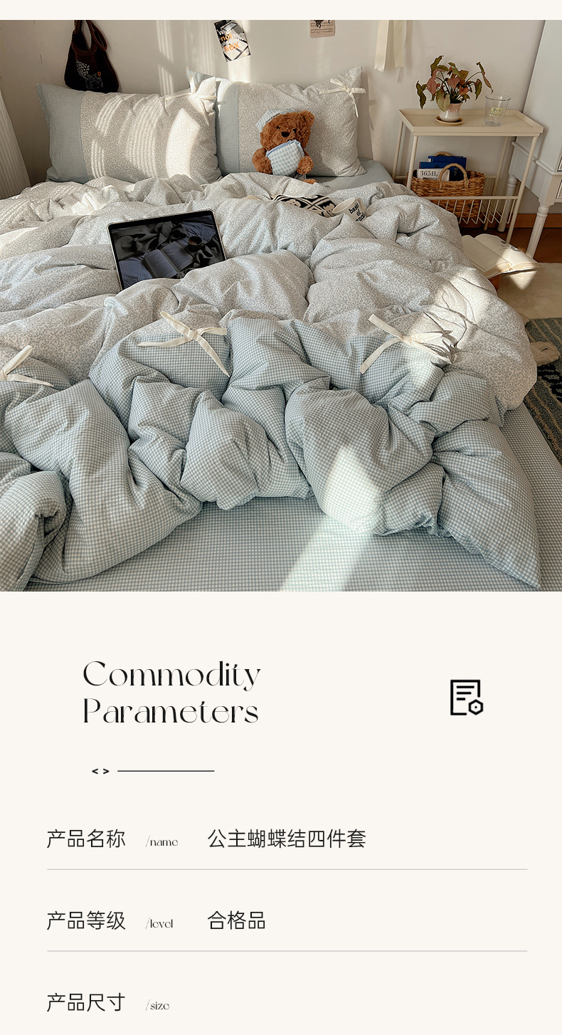当前位置: 91家纺网 > 商品网购 > 床品套件 > 四件套 > 水洗棉四件套 > 初夏家纺 2026 公主风蝴蝶结A类古法水洗仿棉四件套床上用品三件套被套床单【提供买家秀】 公主蝴蝶结-蓝