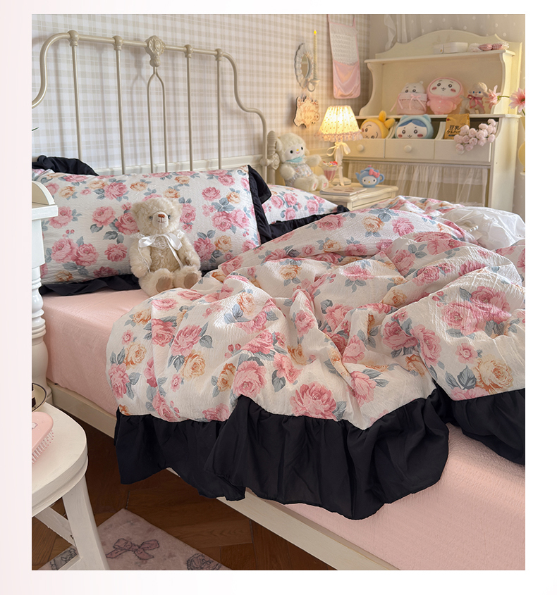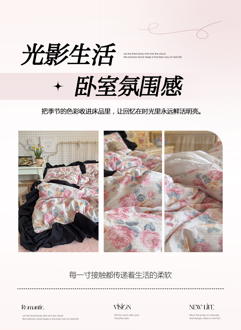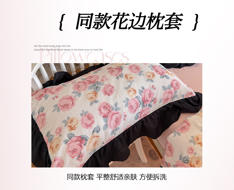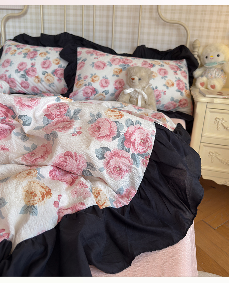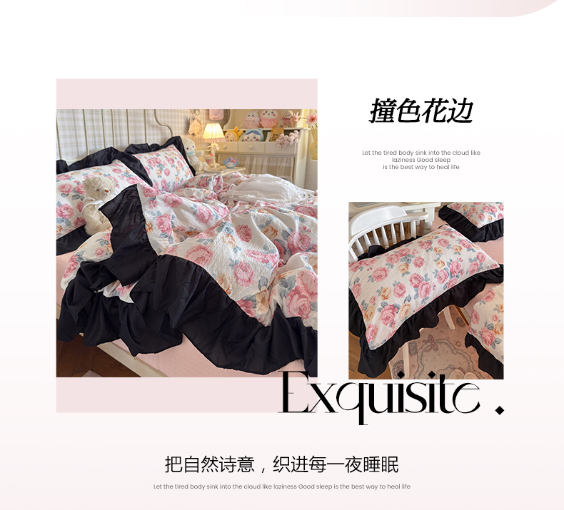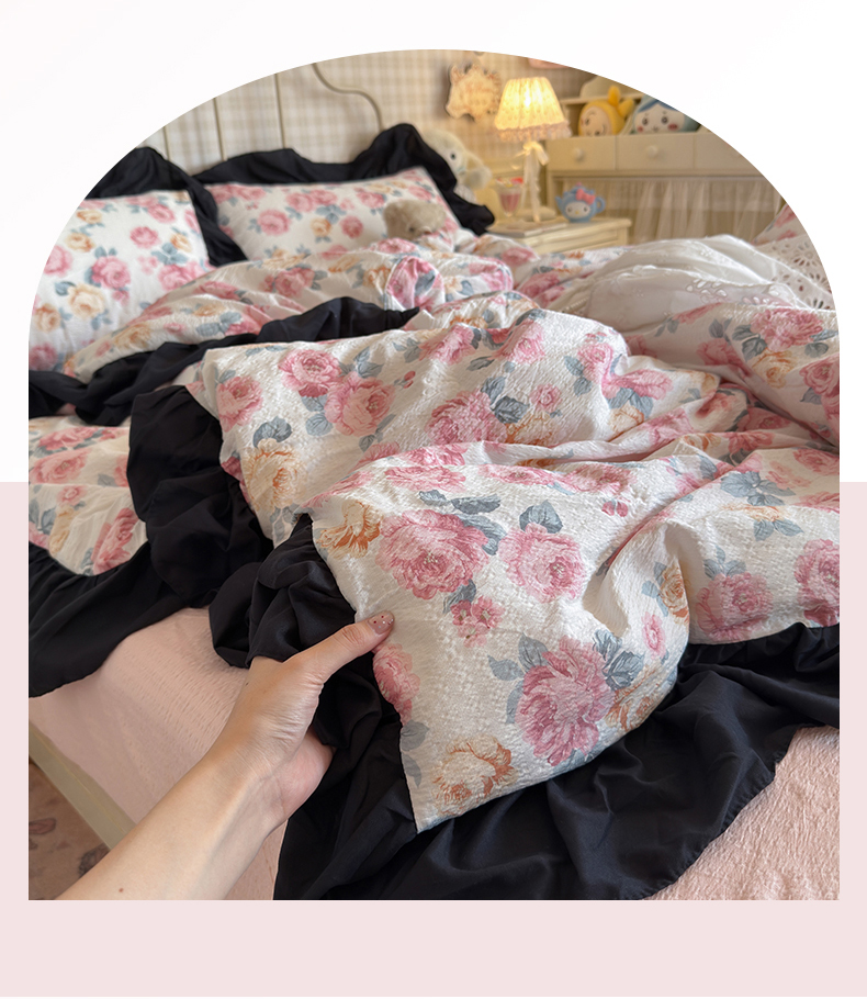 当前位置: 91家纺网 > 商品网购 > 床品套件 > 四件套 > 双层纱四件套 > 优卡迪家纺馆 2026新款皱皱棉双层纱黑花边四件套下载文件包含买家秀 满庭芳