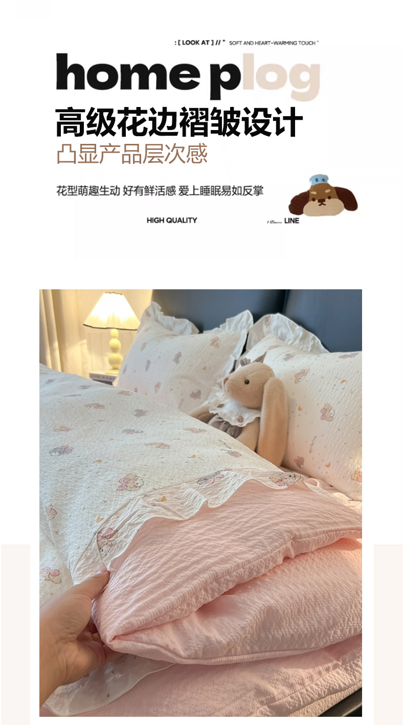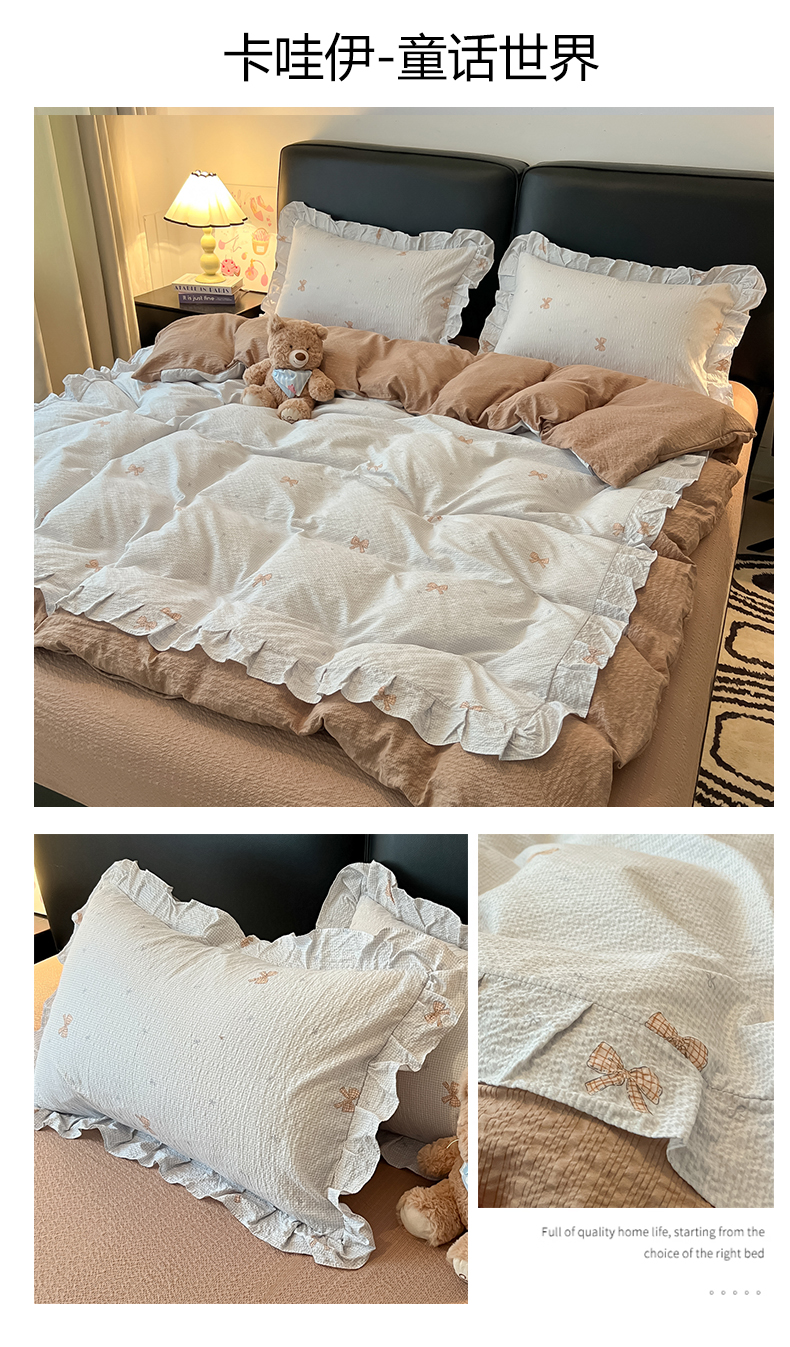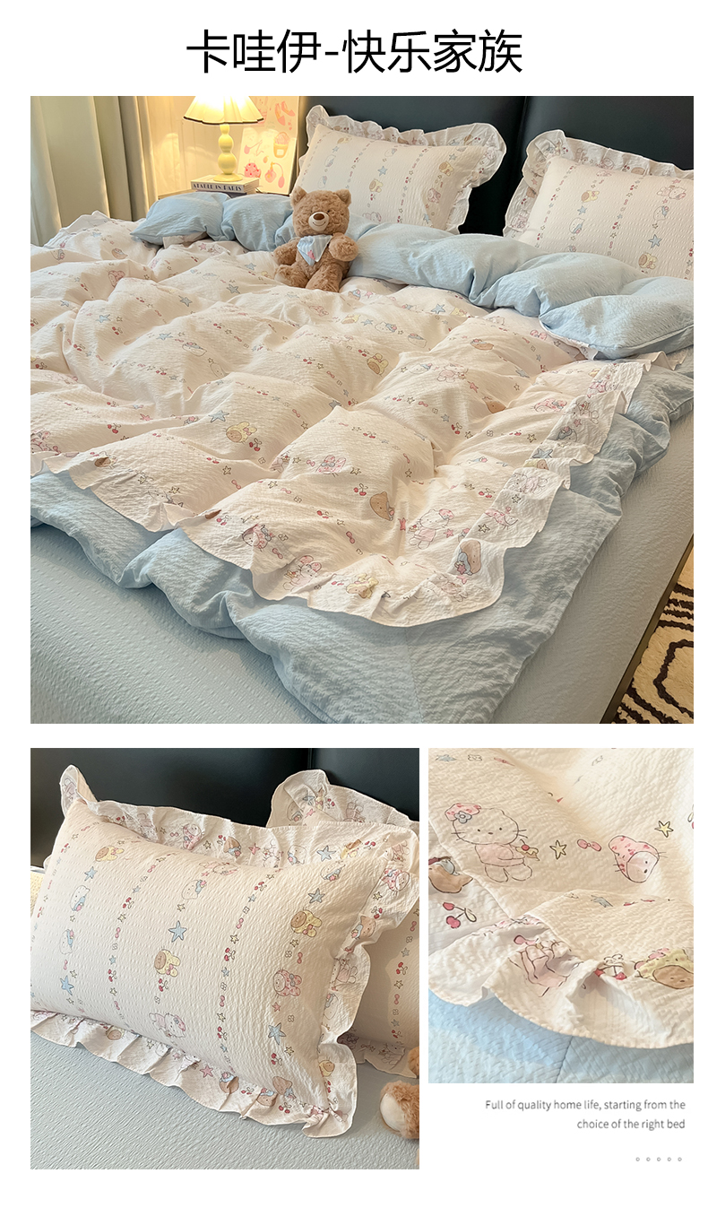 商品名称:(总)子钦家纺 2026春夏新款提花泡芙棉花边拼角工艺床单床笠四件套-卡哇伊