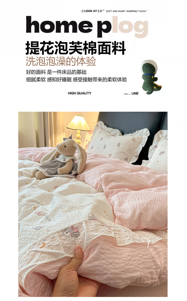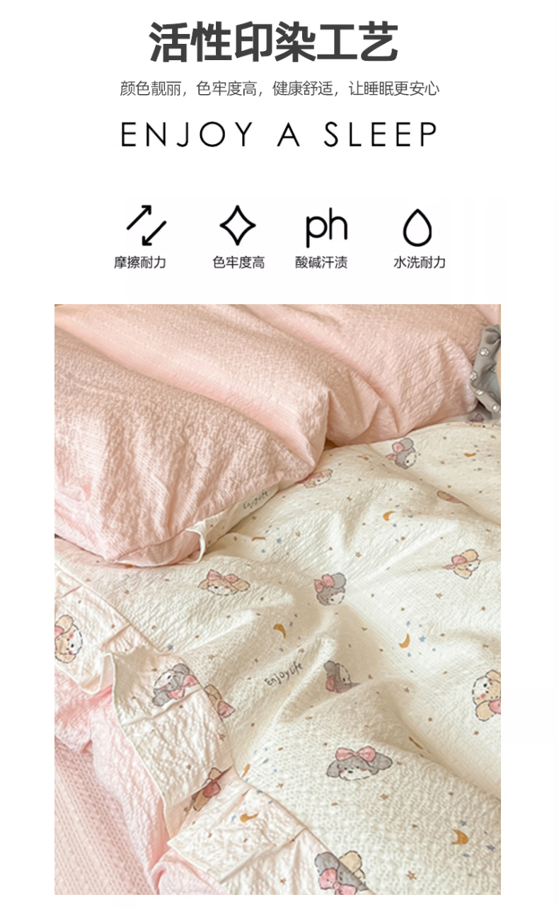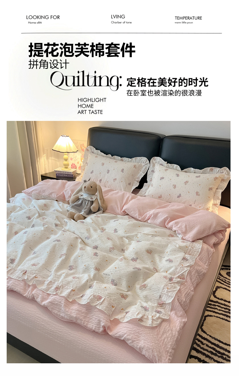 商品名称:(总)子钦家纺 2026春夏新款提花泡芙棉花边拼角工艺床单床笠四件套-卡哇伊