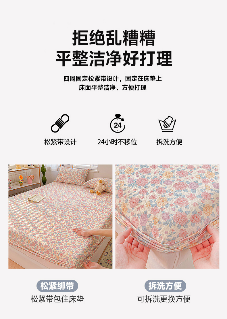 • 91家纺网 家纺一手货源 找家纺 仟人梦 2026新款云感双层纱印花单床笠床笠单件 云之瑶