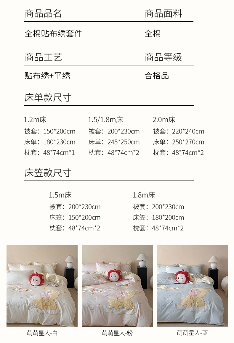 (总)优悦生活馆 2026新款全棉贴布绣四件套-萌萌星人,萌萌星人-蓝,萌萌星人-白,萌萌星人-粉