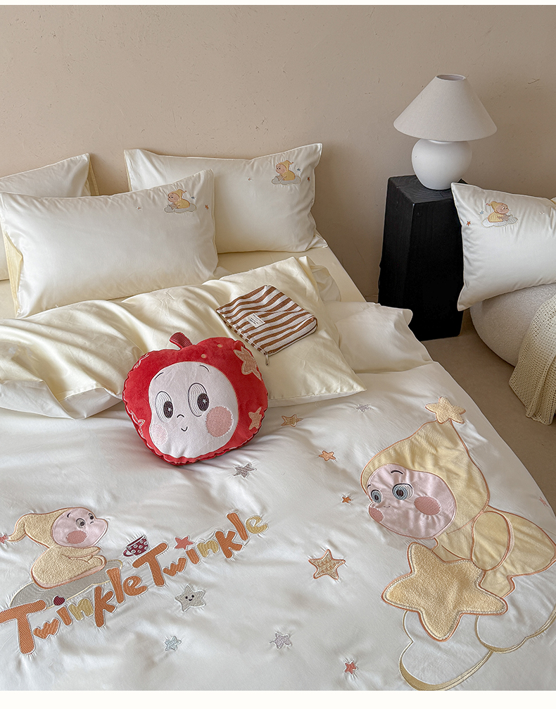 商品名称:优悦生活馆 2026新款全棉贴布绣四件套-萌萌星人 萌萌星人-粉