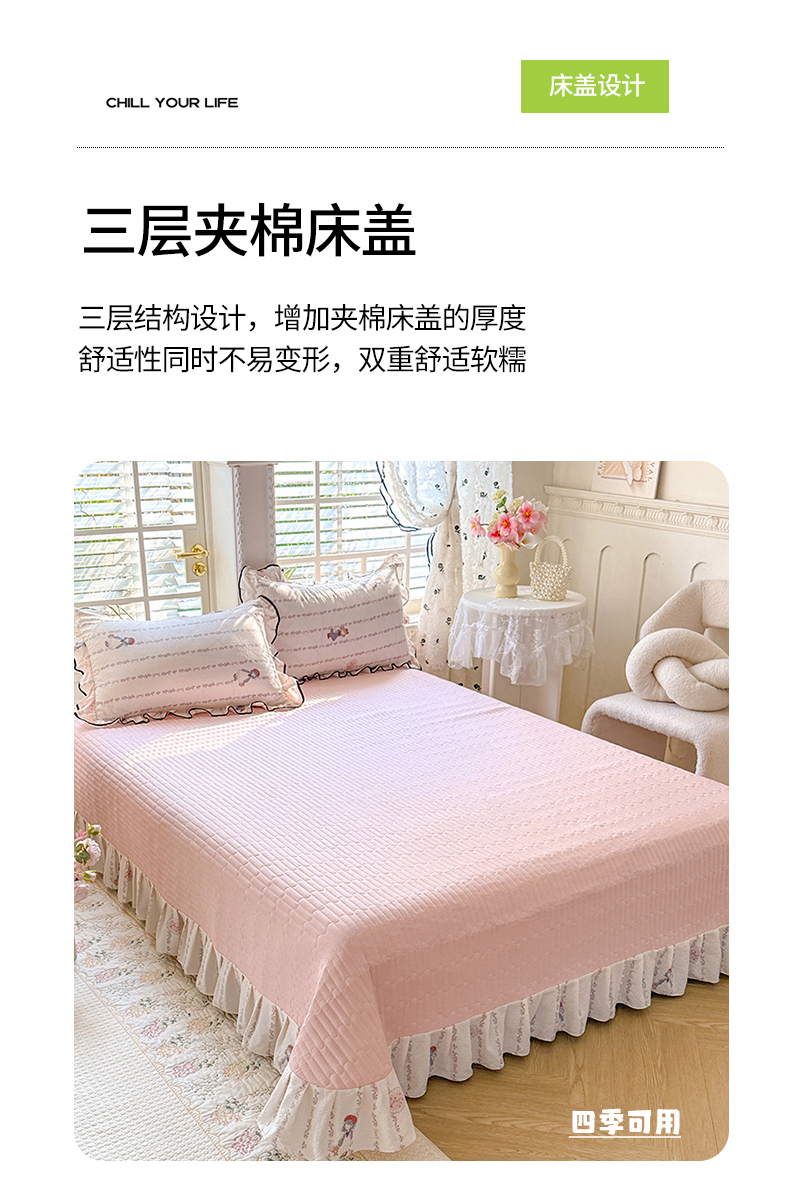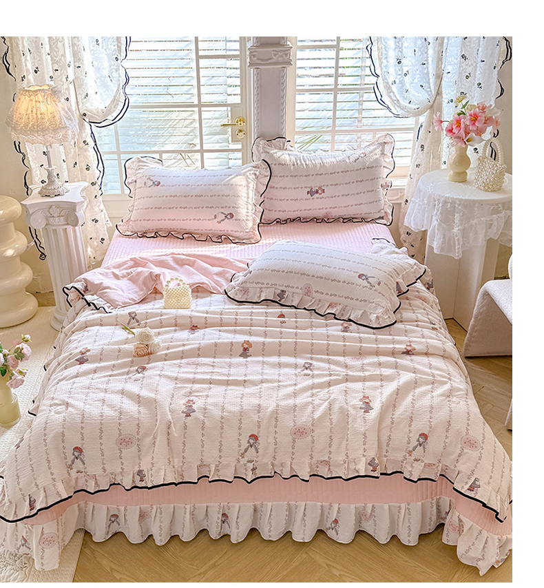 (总)韩约家纺 2026新款韩式双层花边古法棉感床盖四件套,安妮,豹纹女孩,彩心,繁花似锦,蝴蝶伙伴,萌萌兔,柔梦,甜心樱桃
