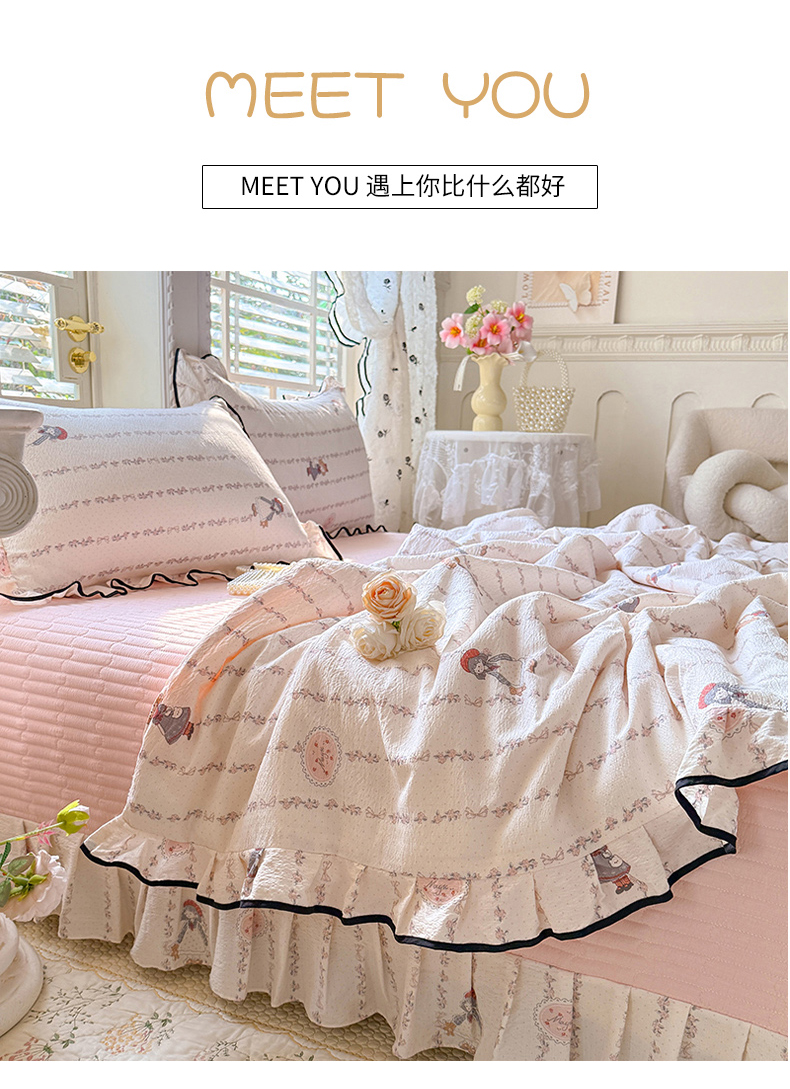 (总)韩约家纺 2026新款法式大花边泡芙棉床盖款夏被夏凉被空调被四件套,花涧,爱心蝴蝶结,布蕾可可,呆萌熊宝,蝴蝶结,花见喜,睛喜,蓝星人,马上鸿运,摩卡人生,甜心kitty,童趣