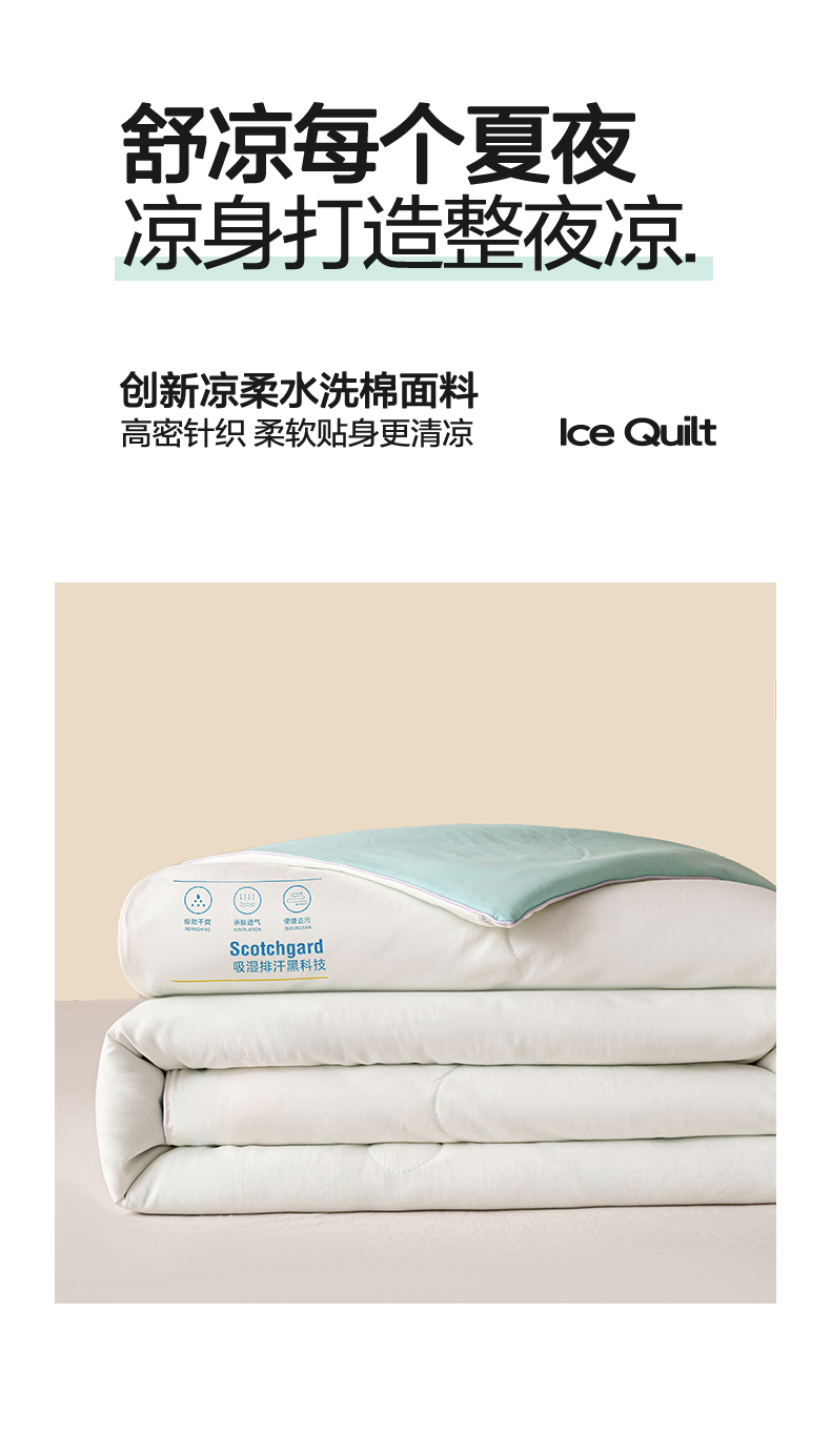 红日子纺织品 2026新款A类水洗棉冰淇淋夏被空调被 果绿白