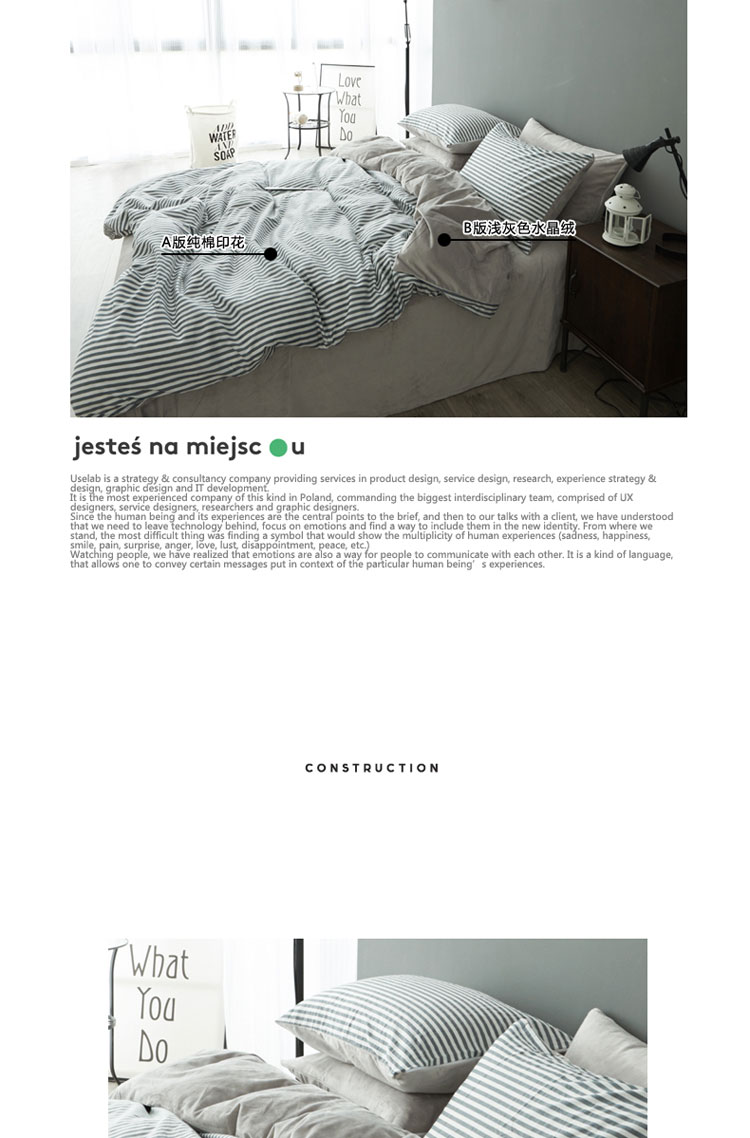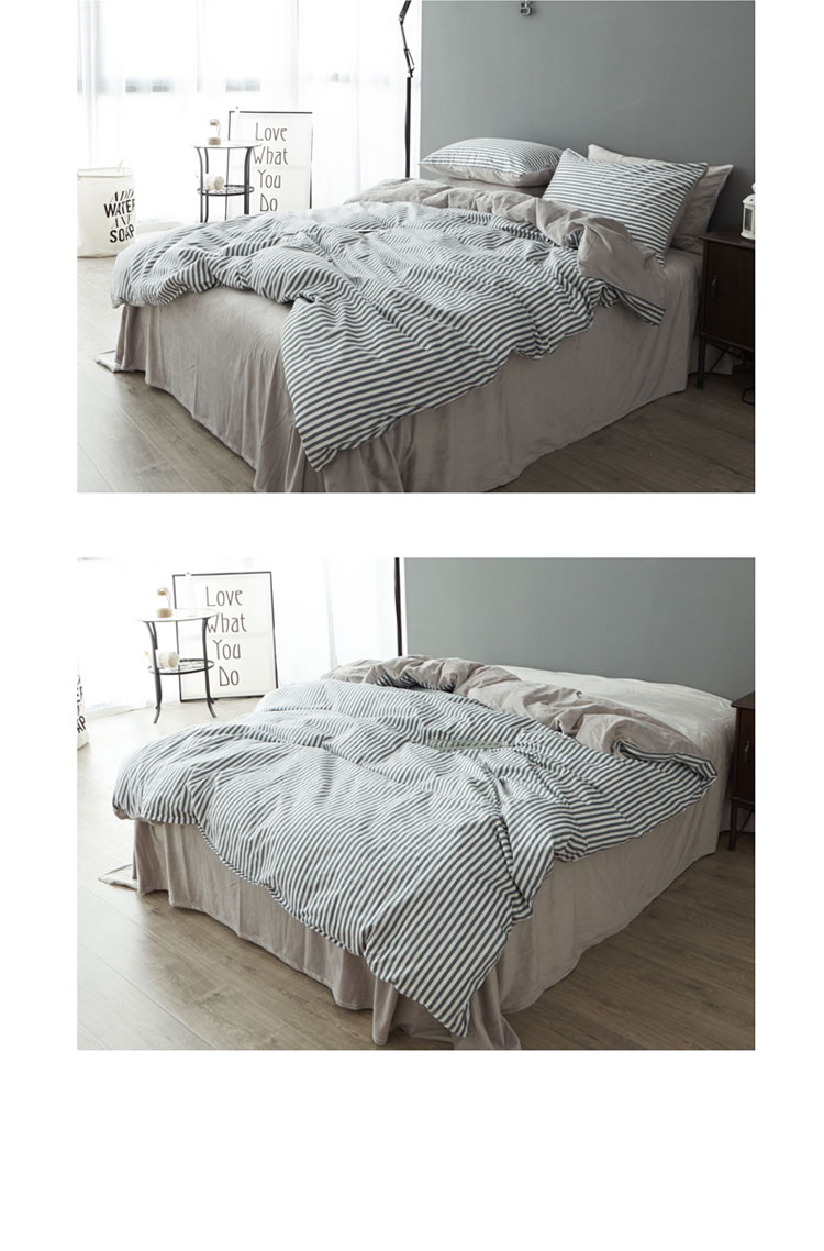 (总)梦家居 2024新款全棉13372简约小清新四件套,彩虹条纹,墨竹—黑色,墨竹—米色