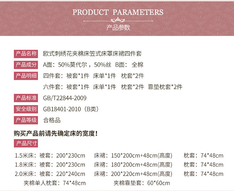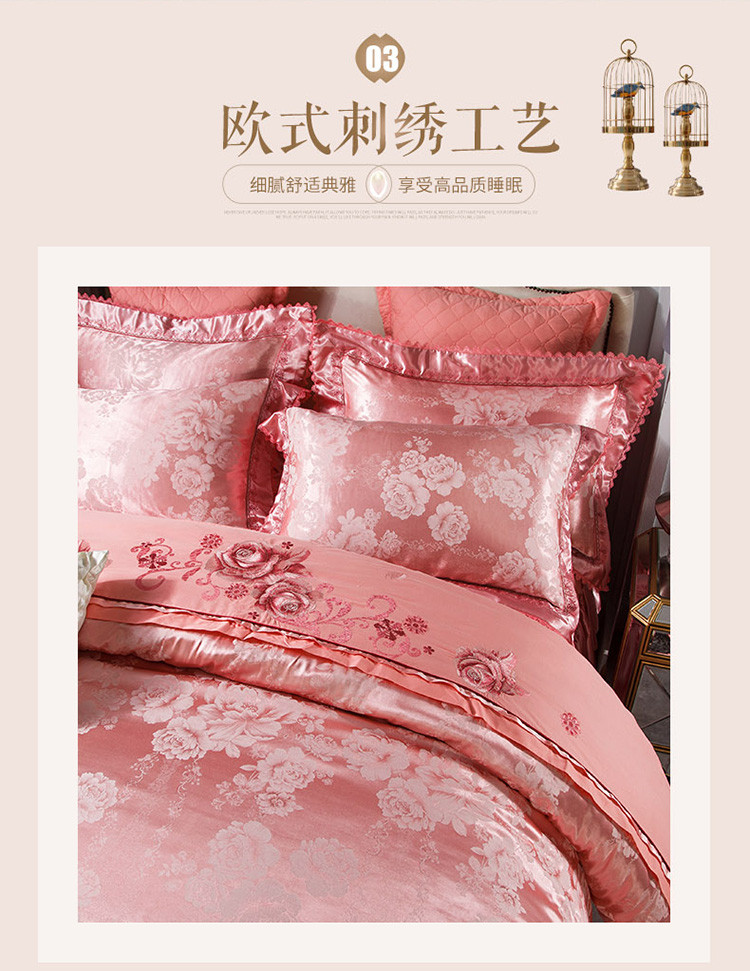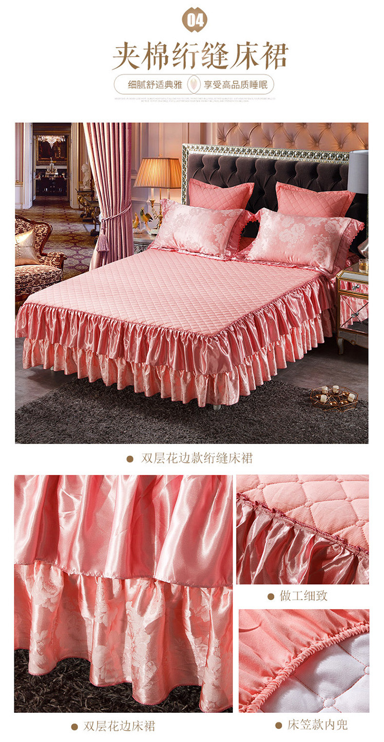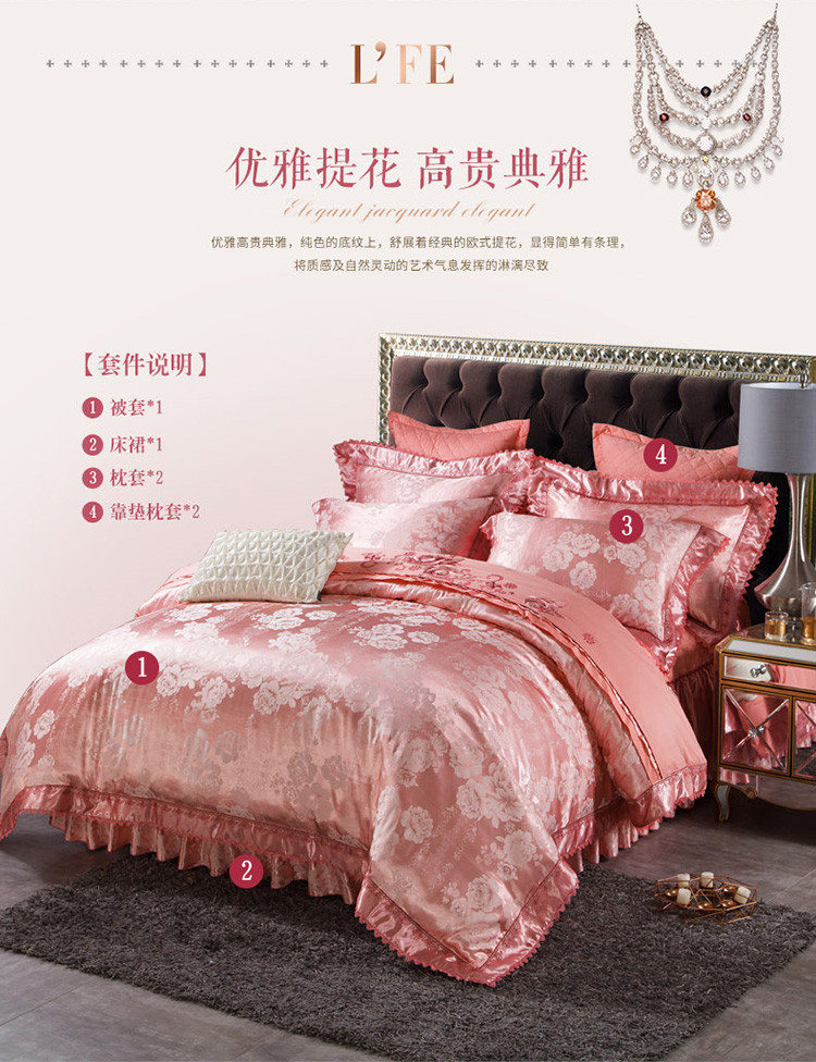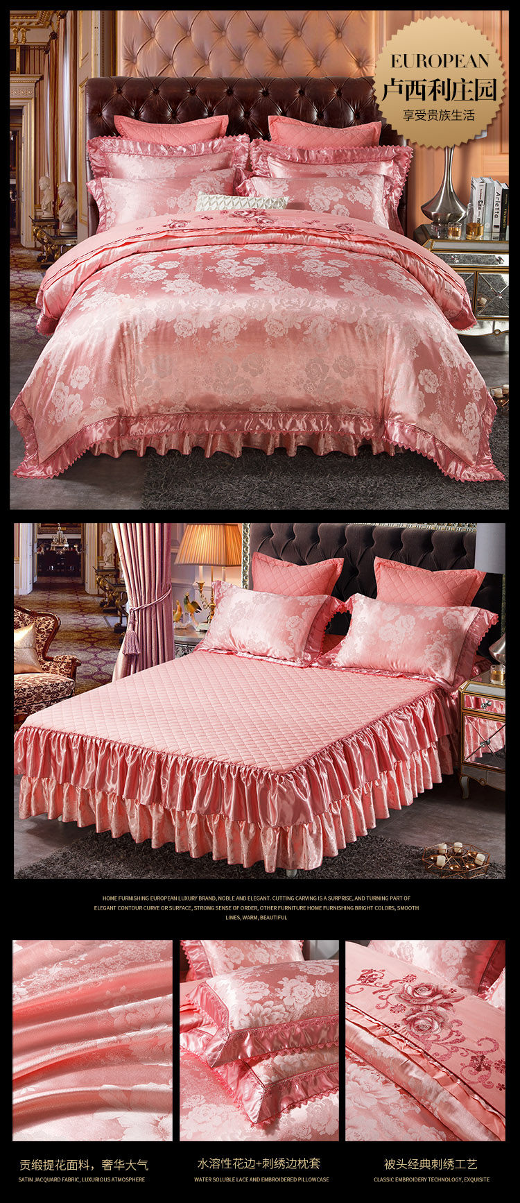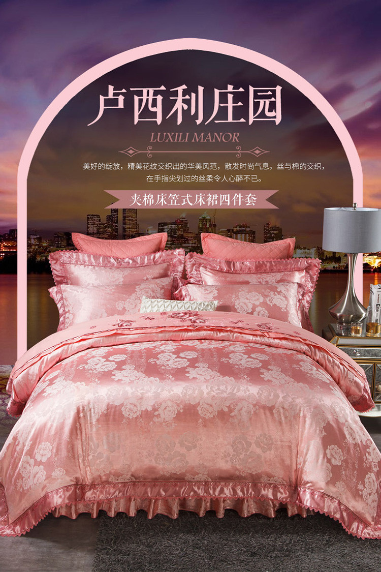 当前位置: 91家纺网 > 商品网购 > 床品套件 > 四件套 > 全棉普通四件套 > 兴美佳家纺欧式刺绣花夹棉床笠式床罩床裙四件套卢西利庄园—粉玉