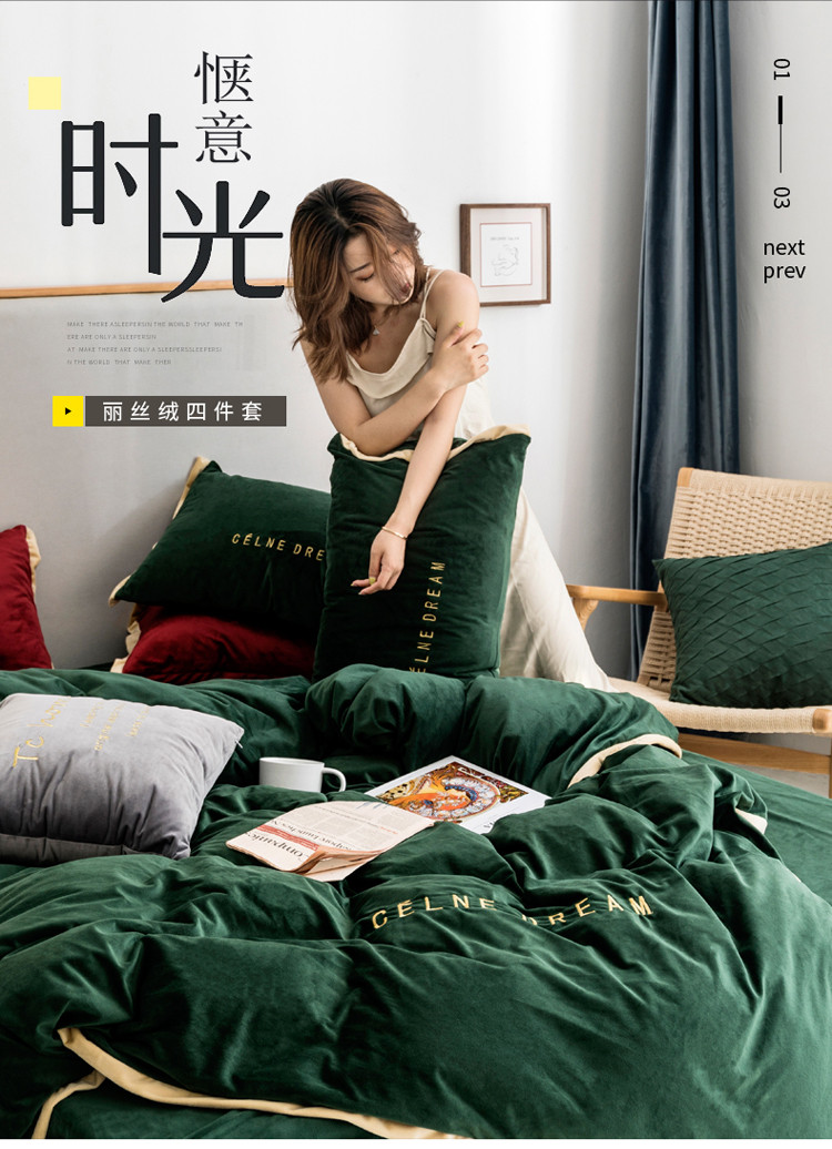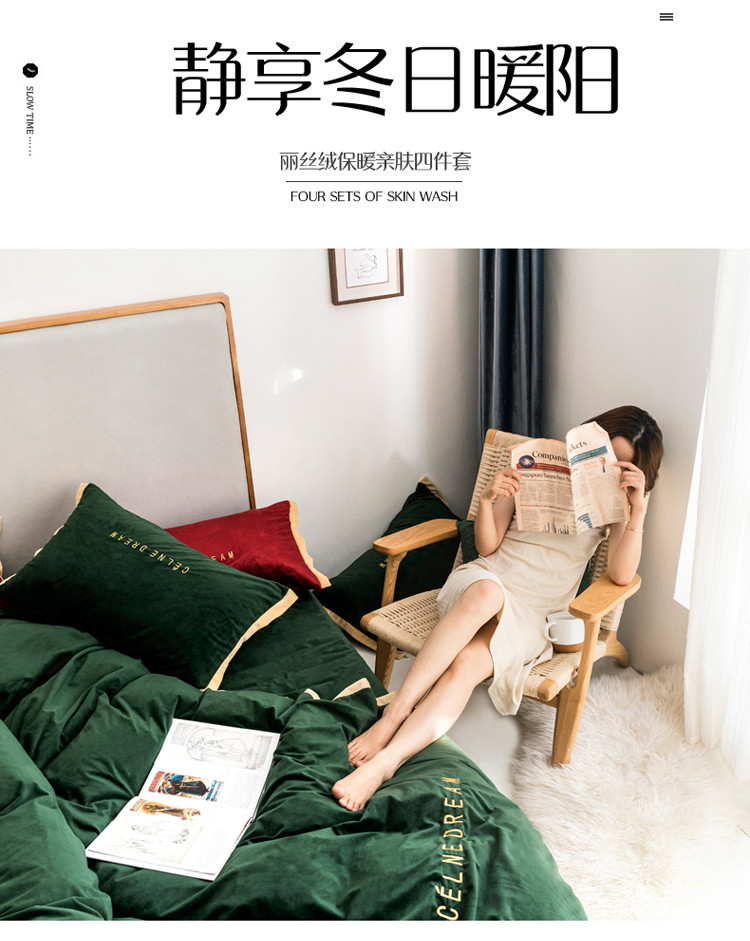 商品名称:安妮 2020赛琳娜 丽丝绒水晶绒四件套 床单款《带包装》复古绿