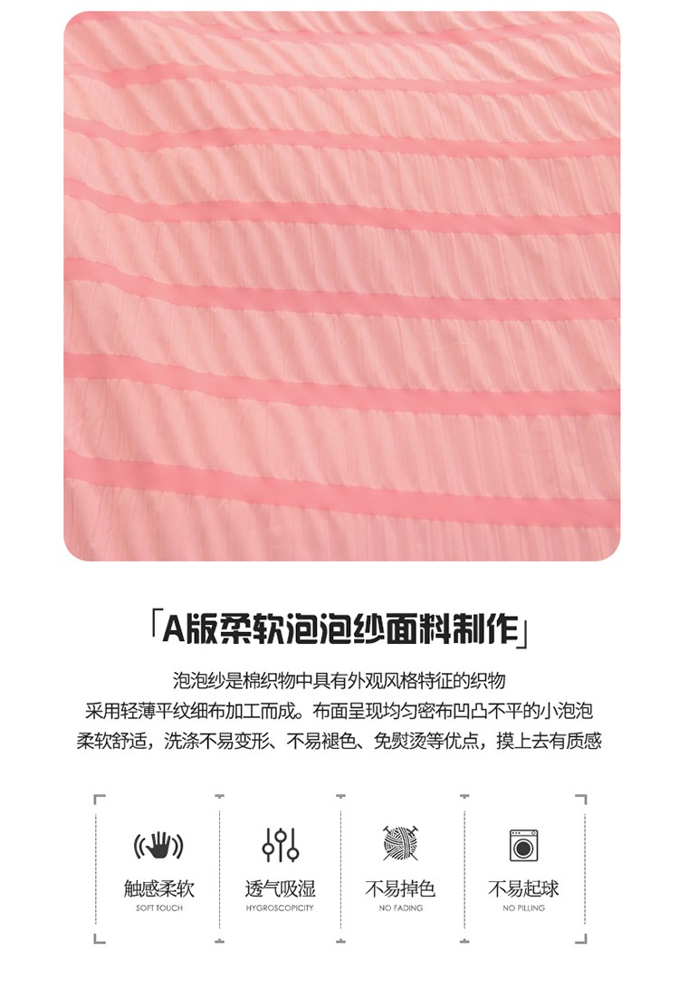 (总)梦之岛 2023新款韩版无印风泡泡纱四件套,泡泡-粉色,泡泡-黄色,泡泡-灰色,泡泡-蓝色,泡泡-绿色