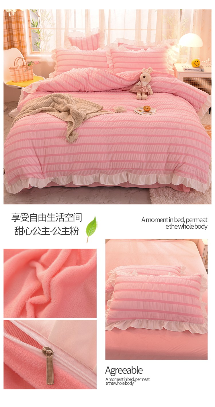 (总)梦之岛2021新款甜心公主泡泡纱配水晶绒四件套