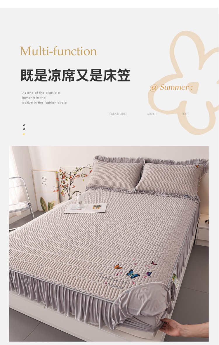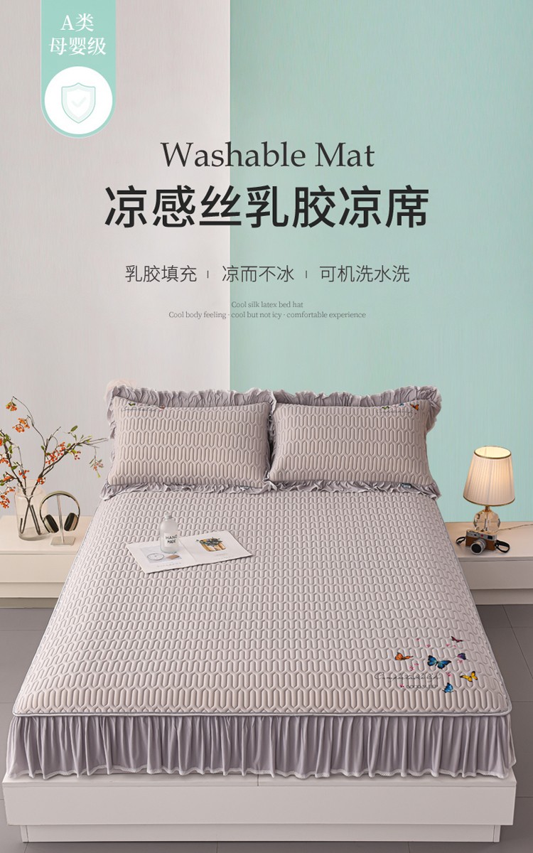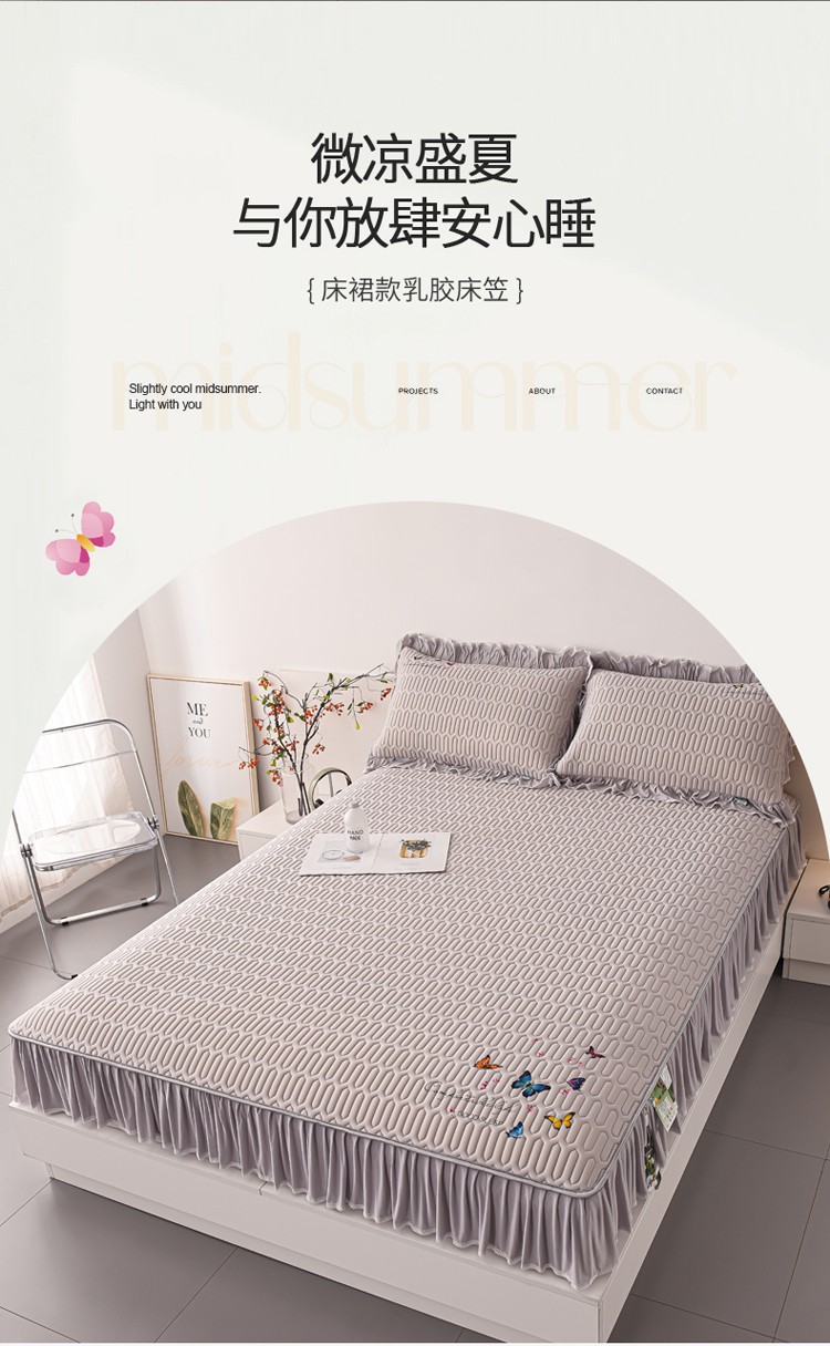 (总)好眠好梦 2023新款A类乳胶床裙凉席-蝶恋花系列,宾利蓝,淡雅米,橘橙黄,暖黄,青绿,天空蓝,烟熏紫,樱花粉,珍珠灰
