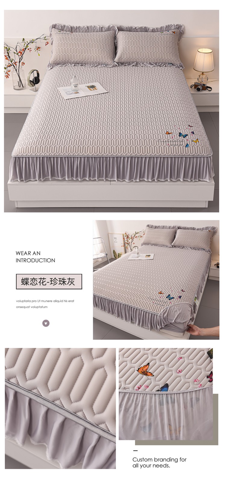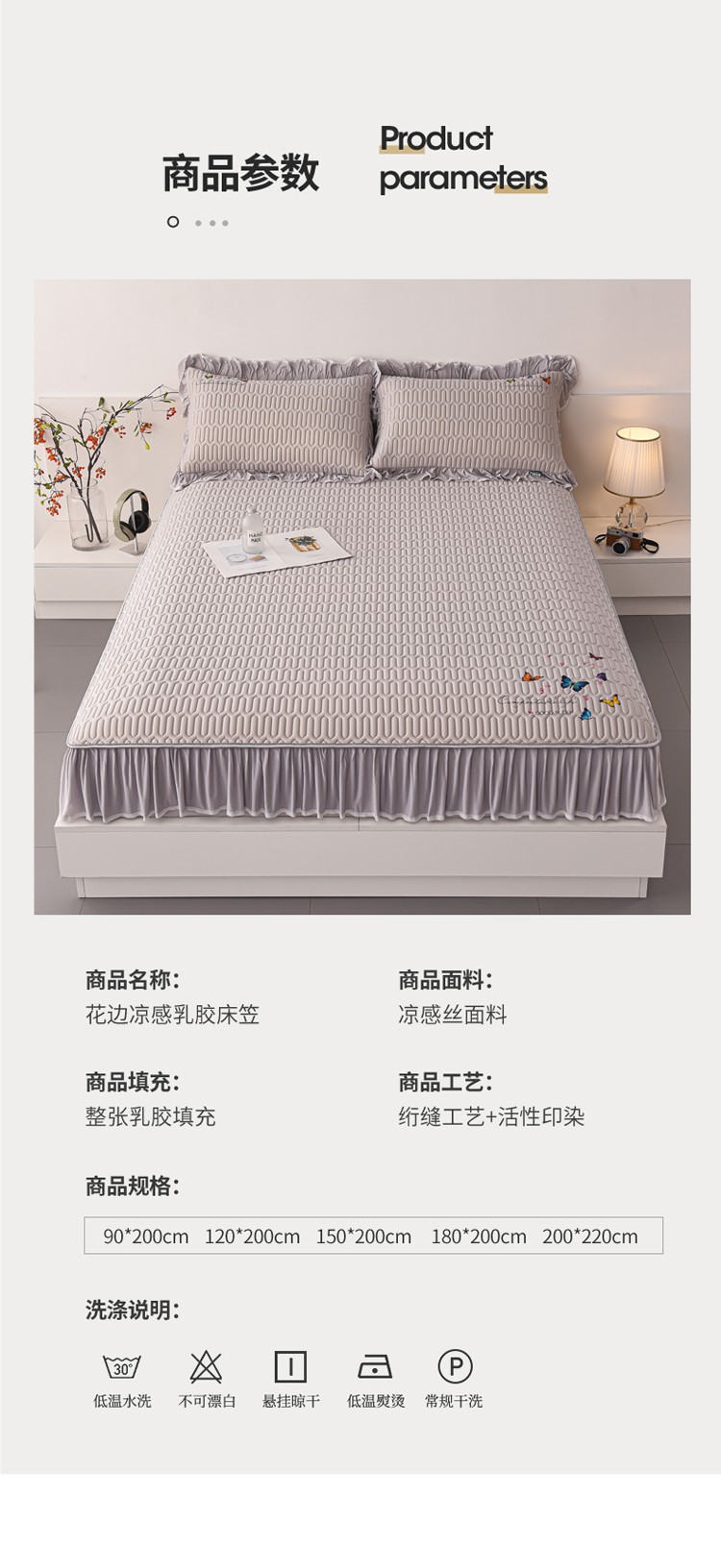 商品名称:好眠好梦 A类乳胶花边凉席--蝶恋花系列床笠款 蝶恋花-珍珠灰