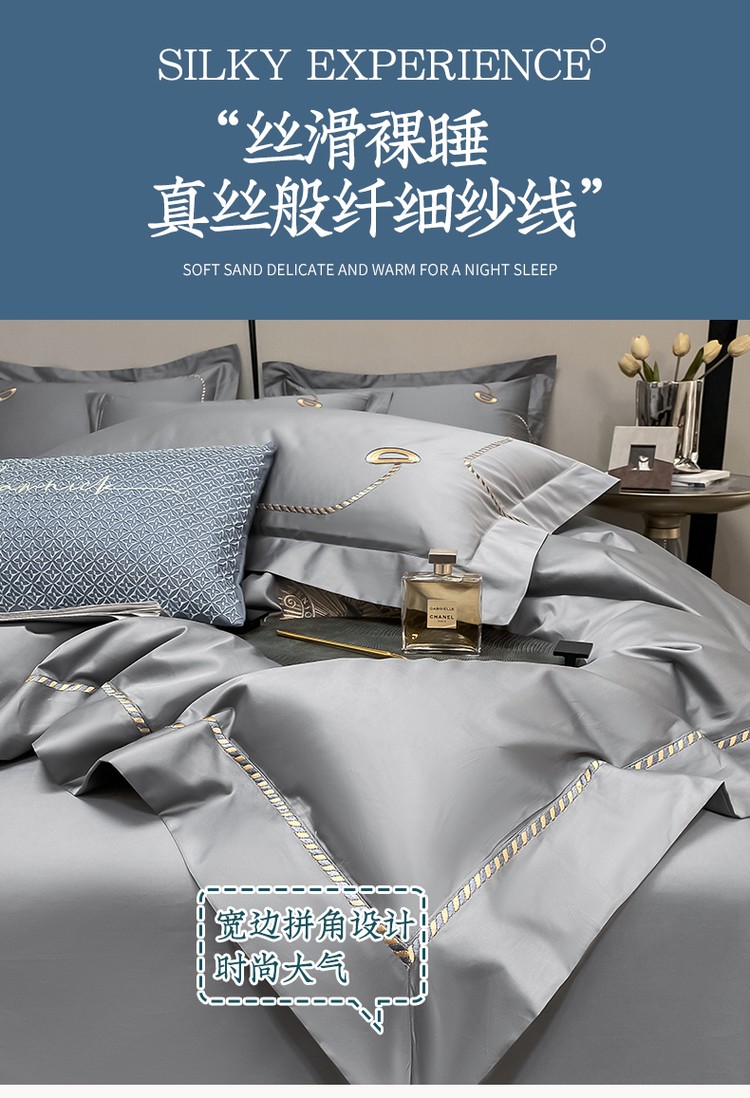 柔觉家纺 天丝刺绣贡缎提花全棉四件套,水汐-绸缎兰