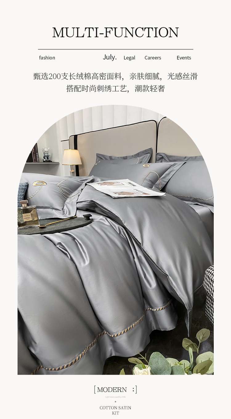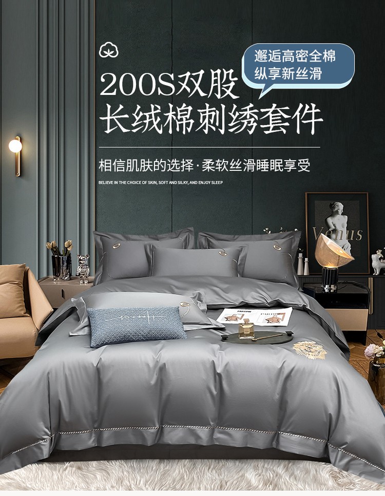 200支新款长绒棉宽边刺绣四件套
