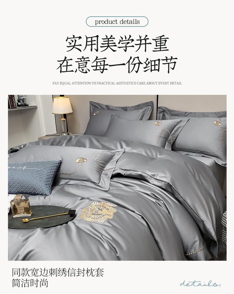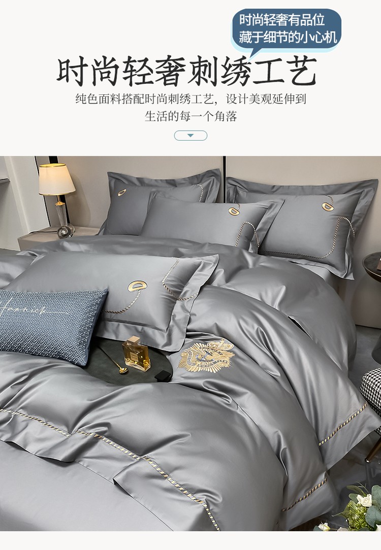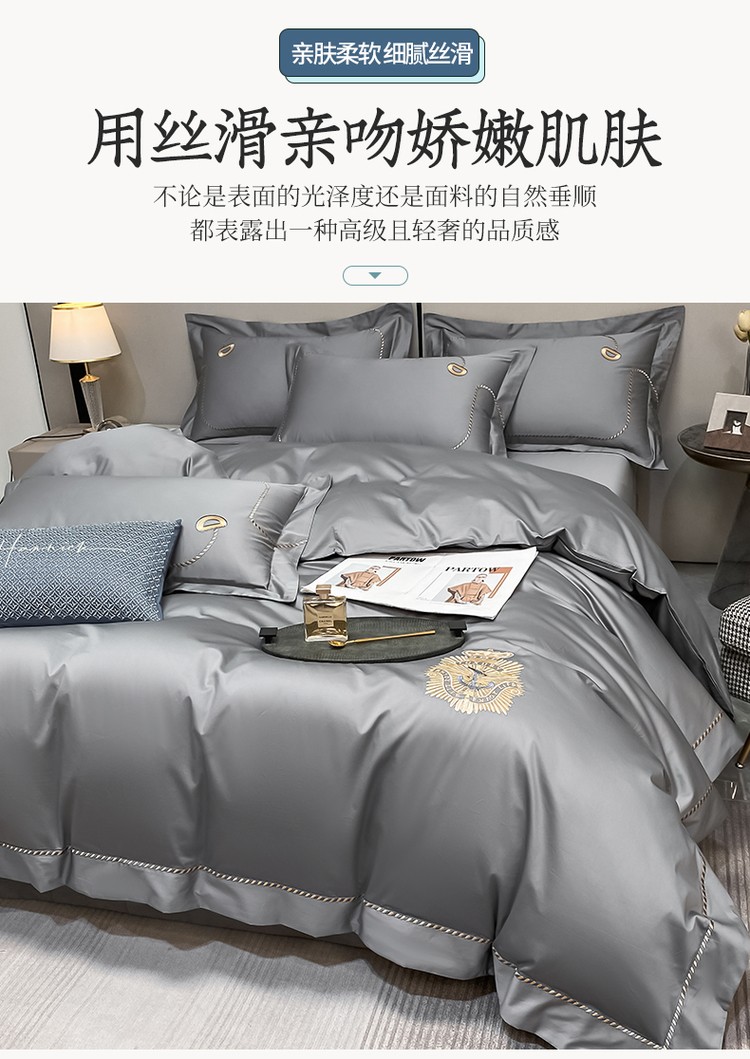 柔觉家纺 天丝刺绣贡缎提花全棉四件套,雅普诺-卡兰