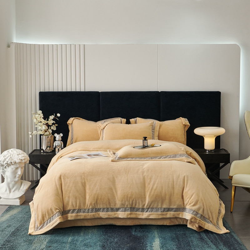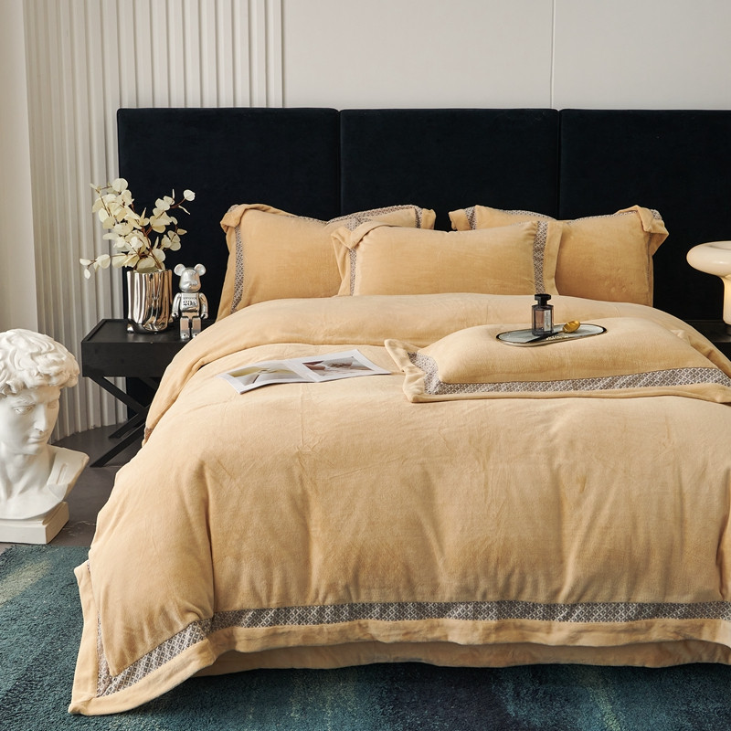 榻尚家居 2023新款公主绒刺绣贴边四件套 香槟咖