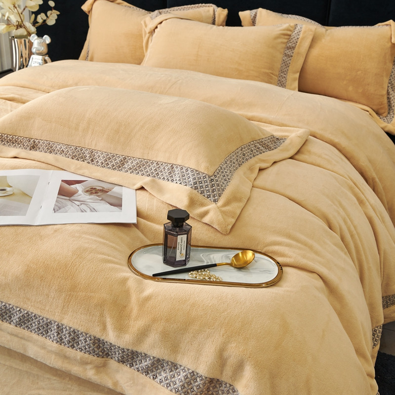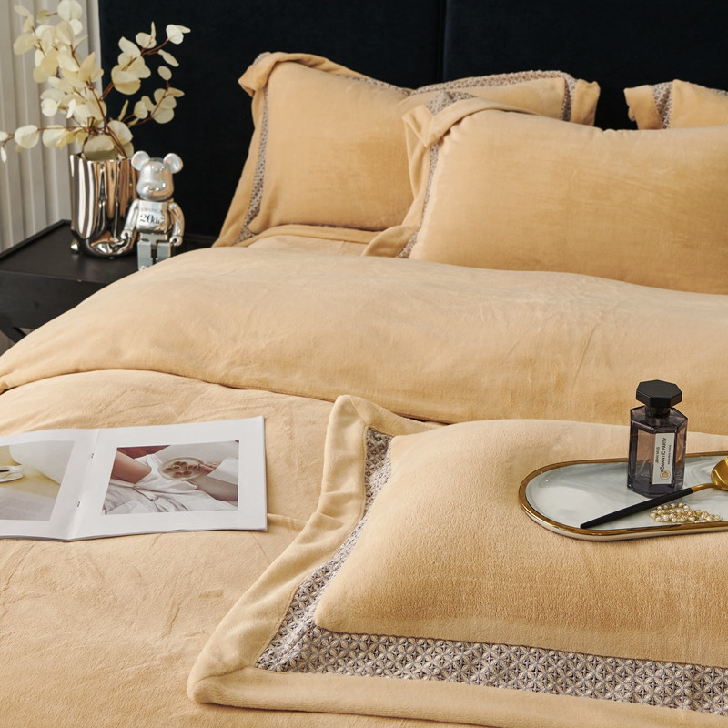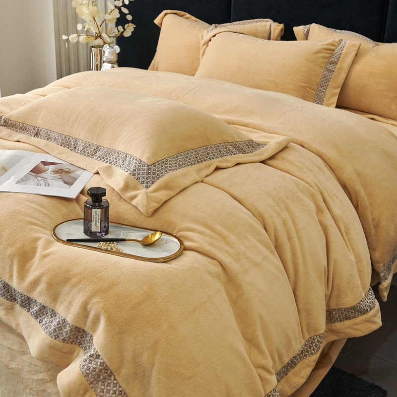 商品名称:榻尚家居 2023新款公主绒刺绣贴边四件套 香槟咖
