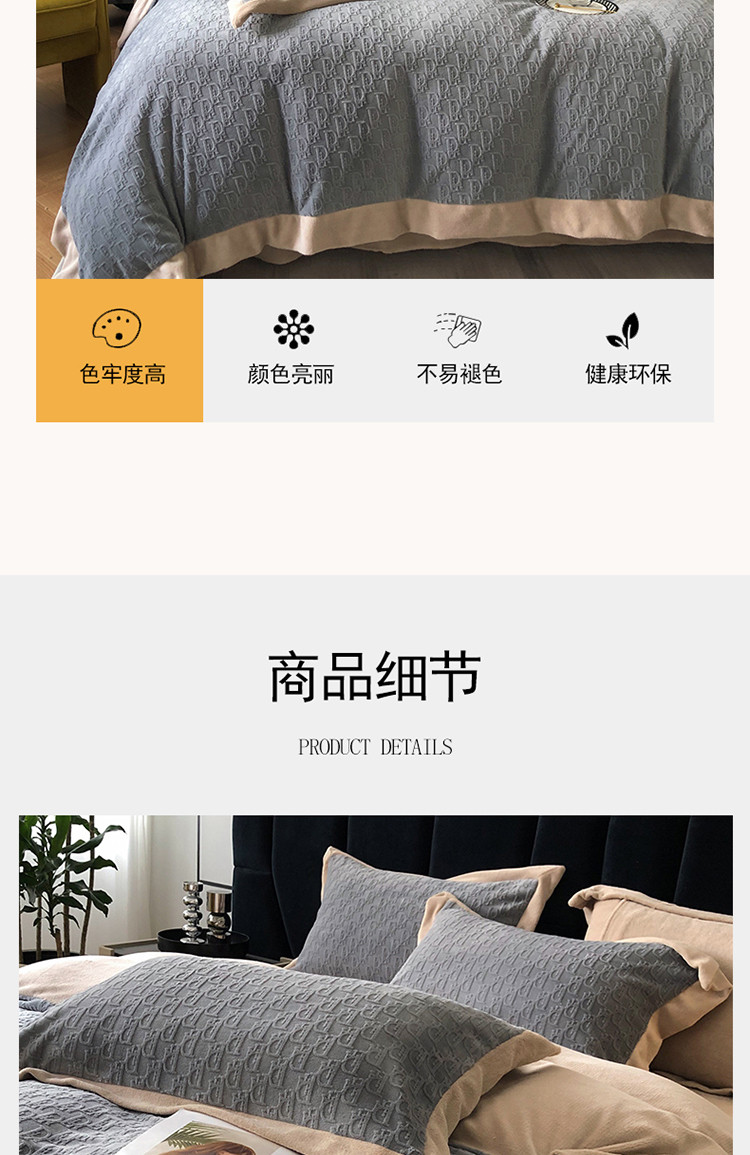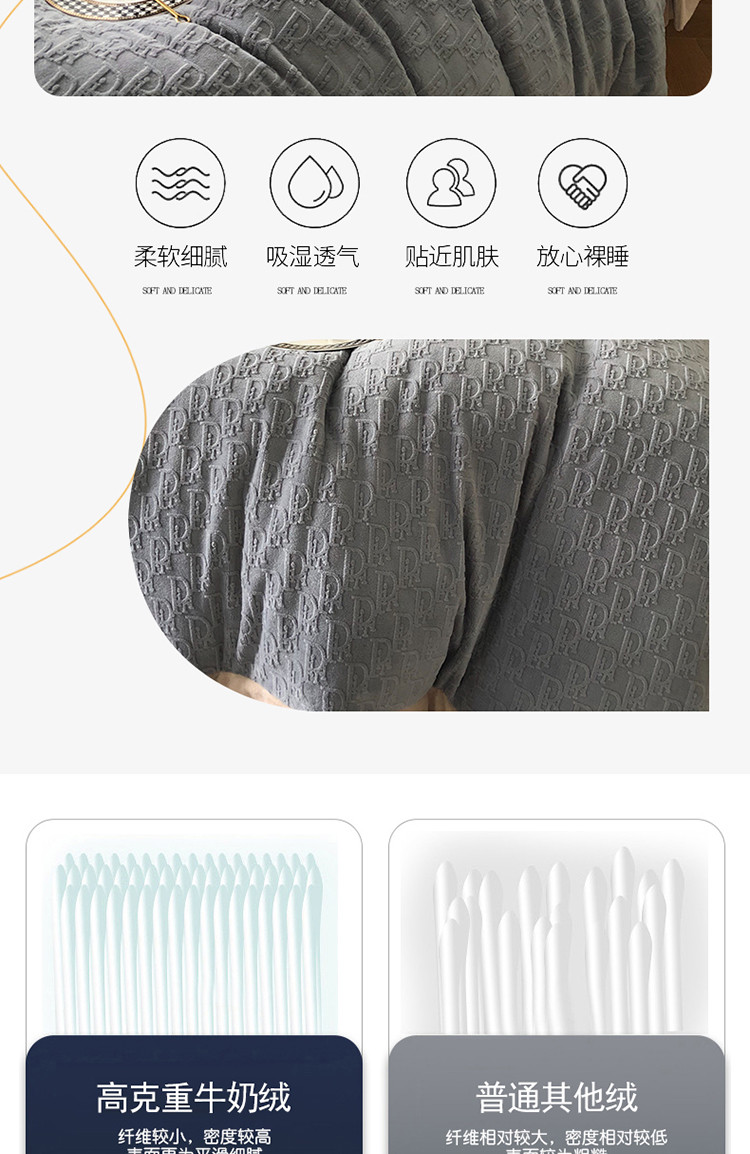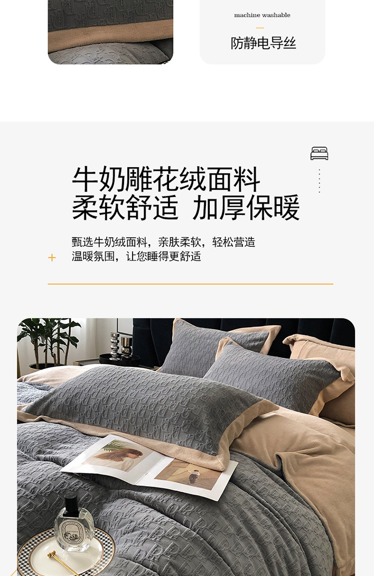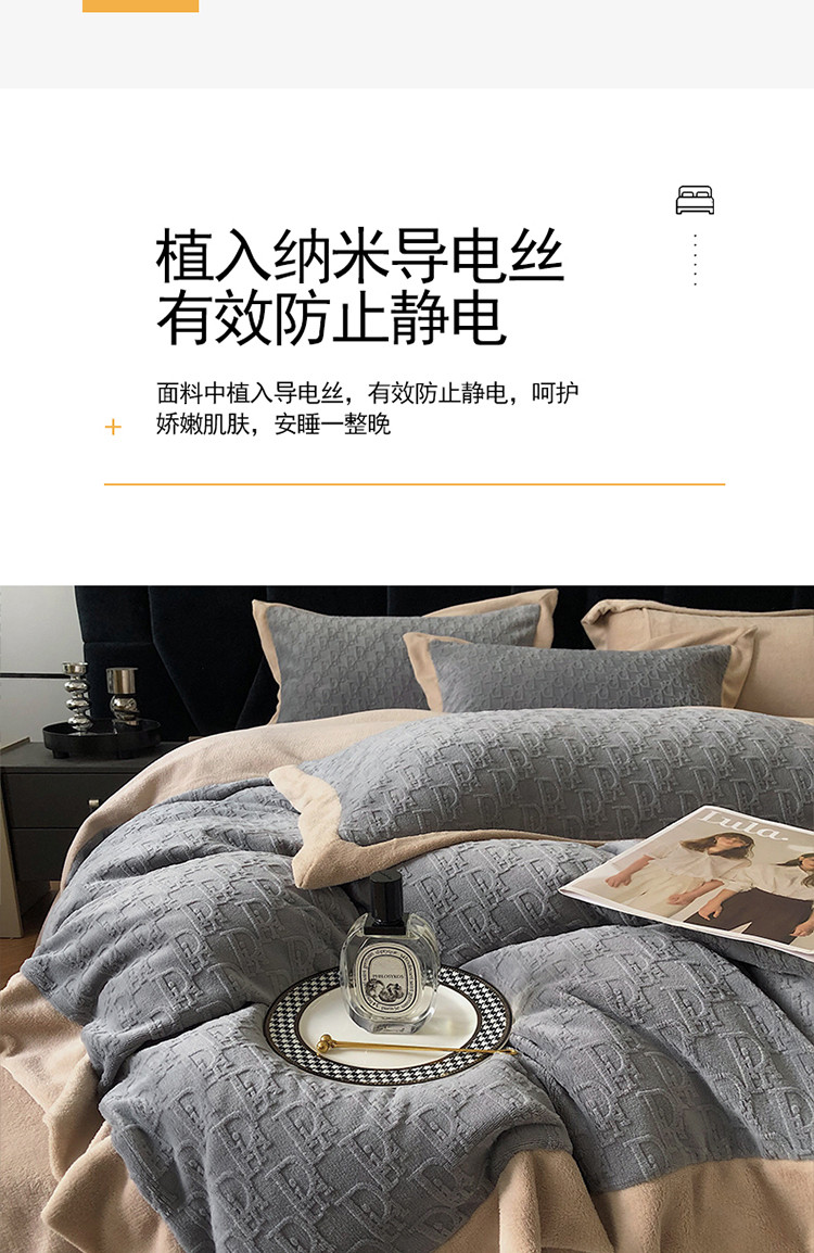 商品名称:娇逸 2022秋冬A类冰岛浮雕雕花牛奶暖绒四件套 迪桑-灰