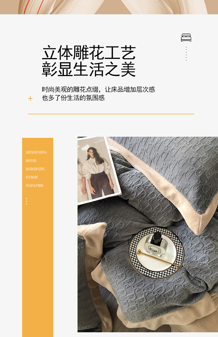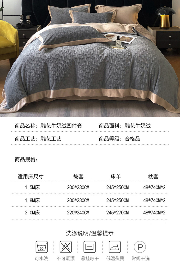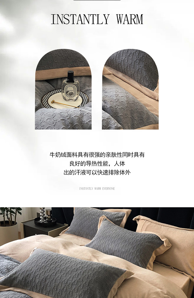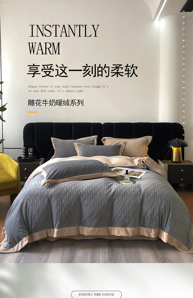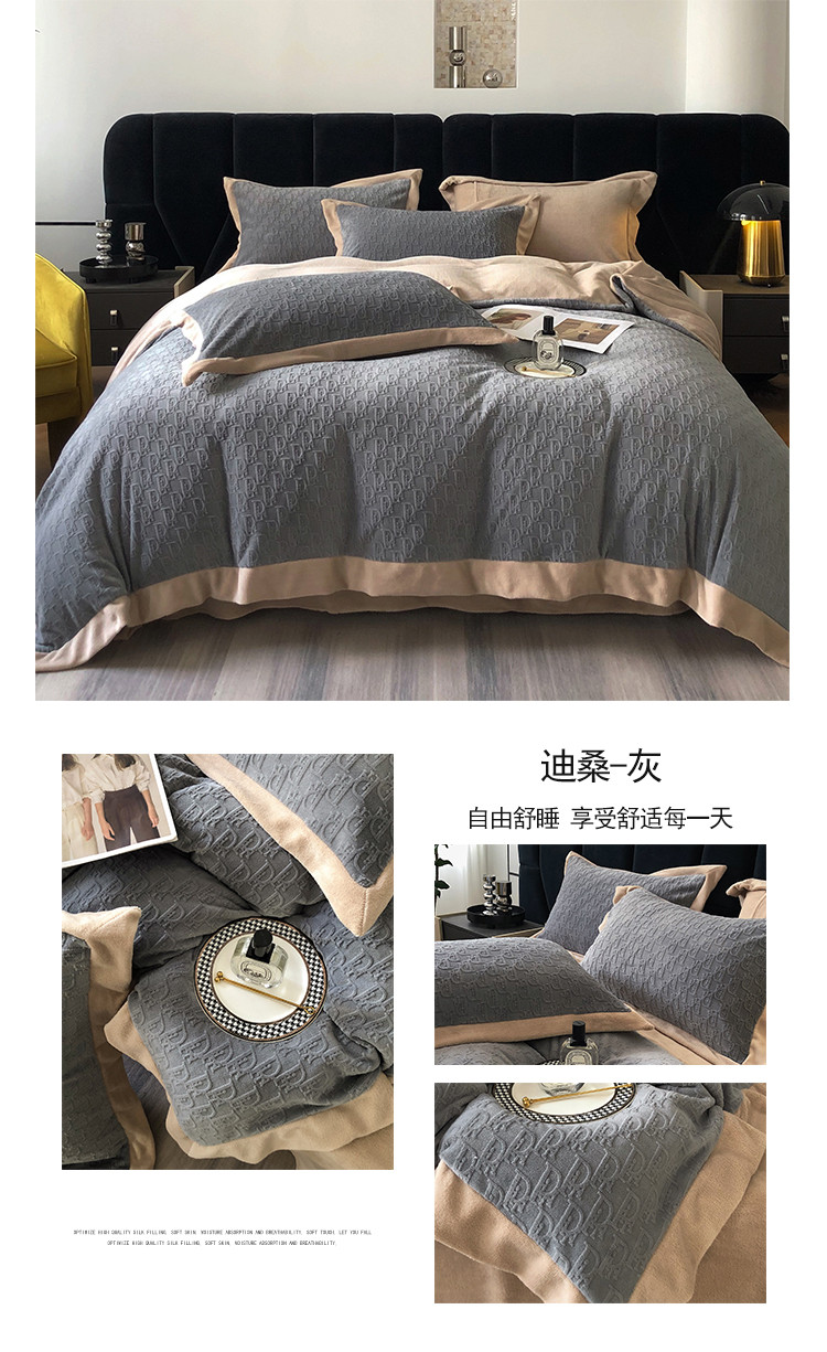 商品名称:娇逸 2022秋冬A类冰岛浮雕雕花牛奶暖绒四件套 迪桑-灰
