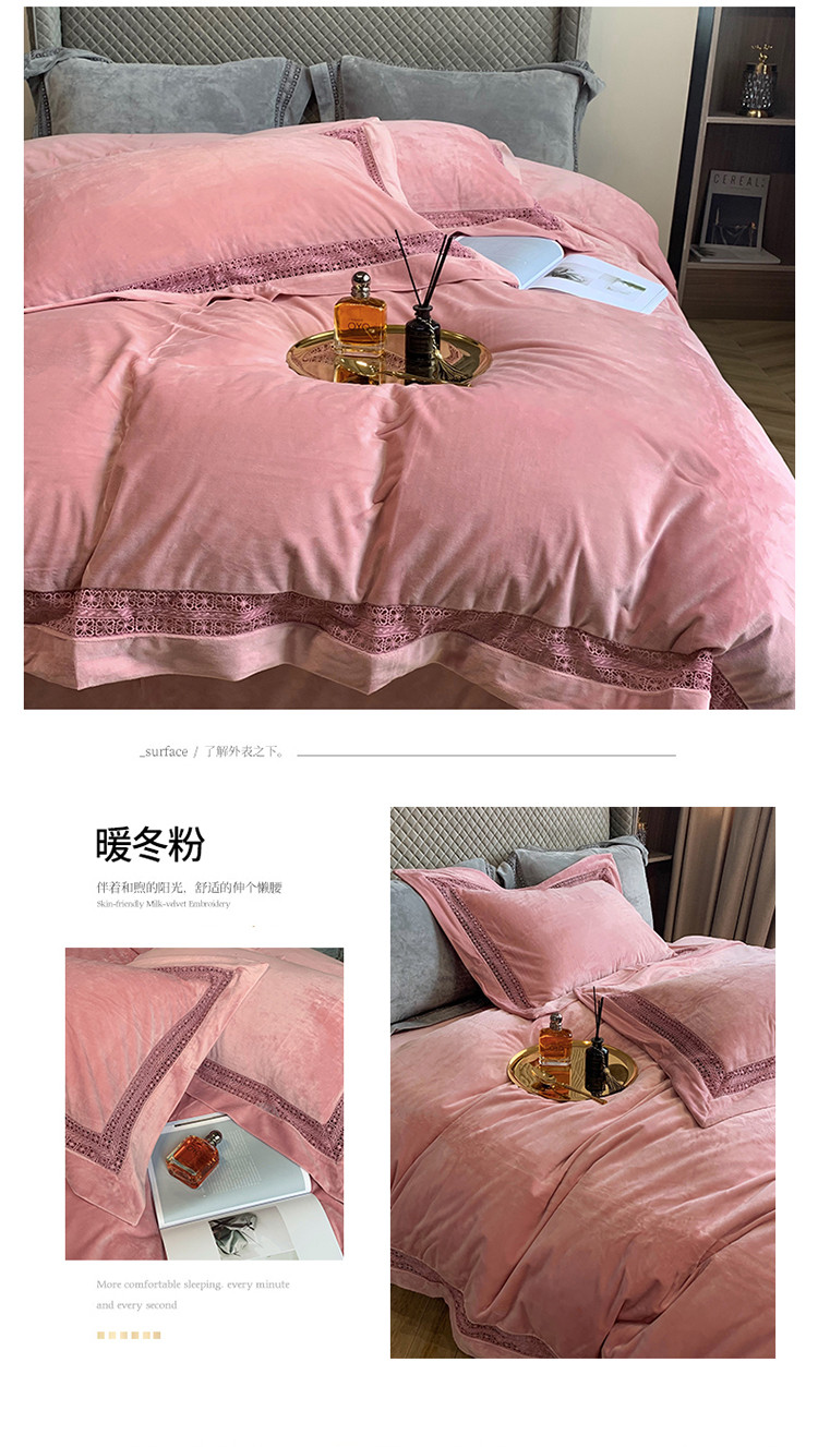(总)榻尚 新款新款婴儿绒牛奶兔绒纯色镂空高端绒四件套