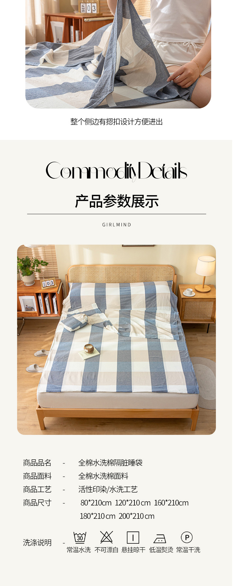 商品名称:格子铺 2023新款隔脏睡袋旅行袋 睡袋-蓝大格