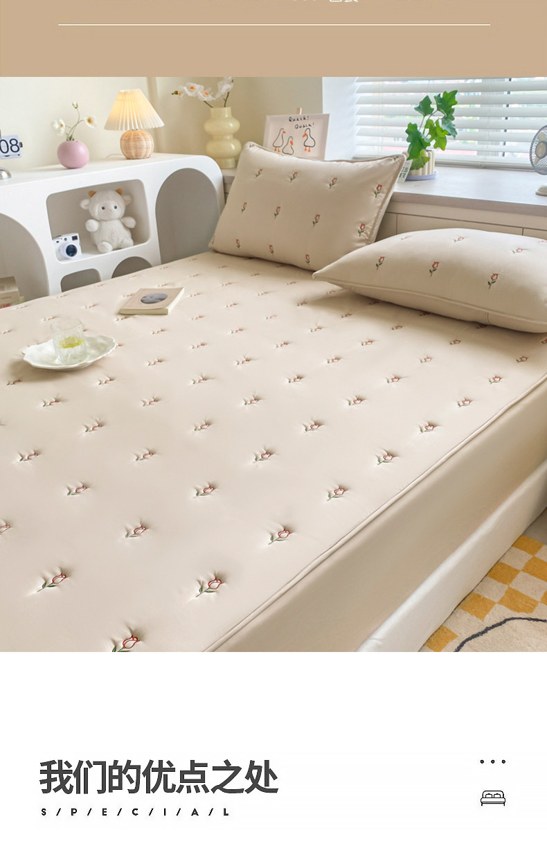 (总)吉祥家纺 2023新款水洗棉夹棉床笠,粉格,黄格,蓝格,绿格,四叶草-粉,四叶草-黄,四叶草-灰,四叶草-蓝,四叶草-绿