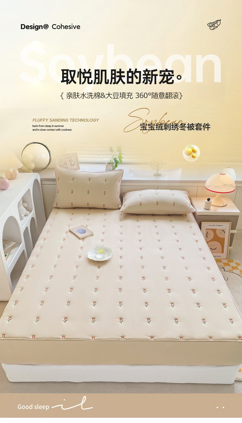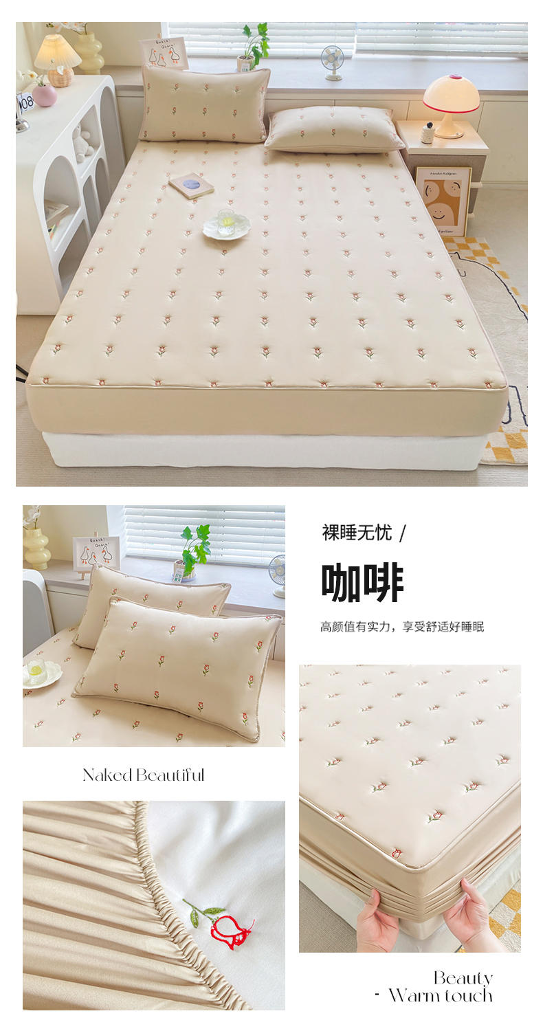 商品名称:吉祥 2023新款水洗棉大豆刺绣床笠 咖啡