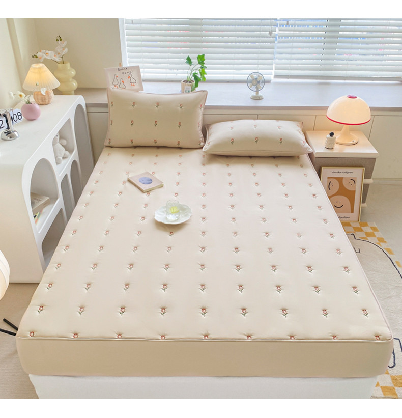 (总)吉祥 2023新款水洗棉大豆刺绣床笠,纯白,粉玉,咖啡,深灰,水蓝