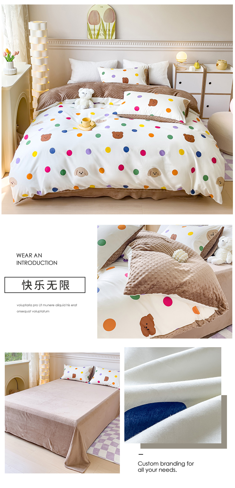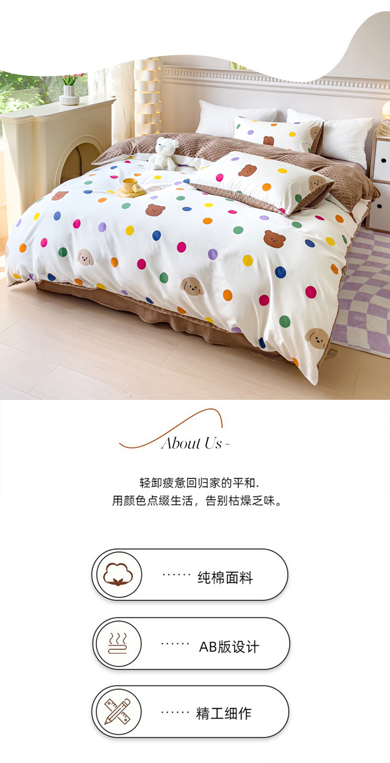 商品名称:珺柔家纺 2023新款全棉加豆豆牛奶绒四件套 快乐无限