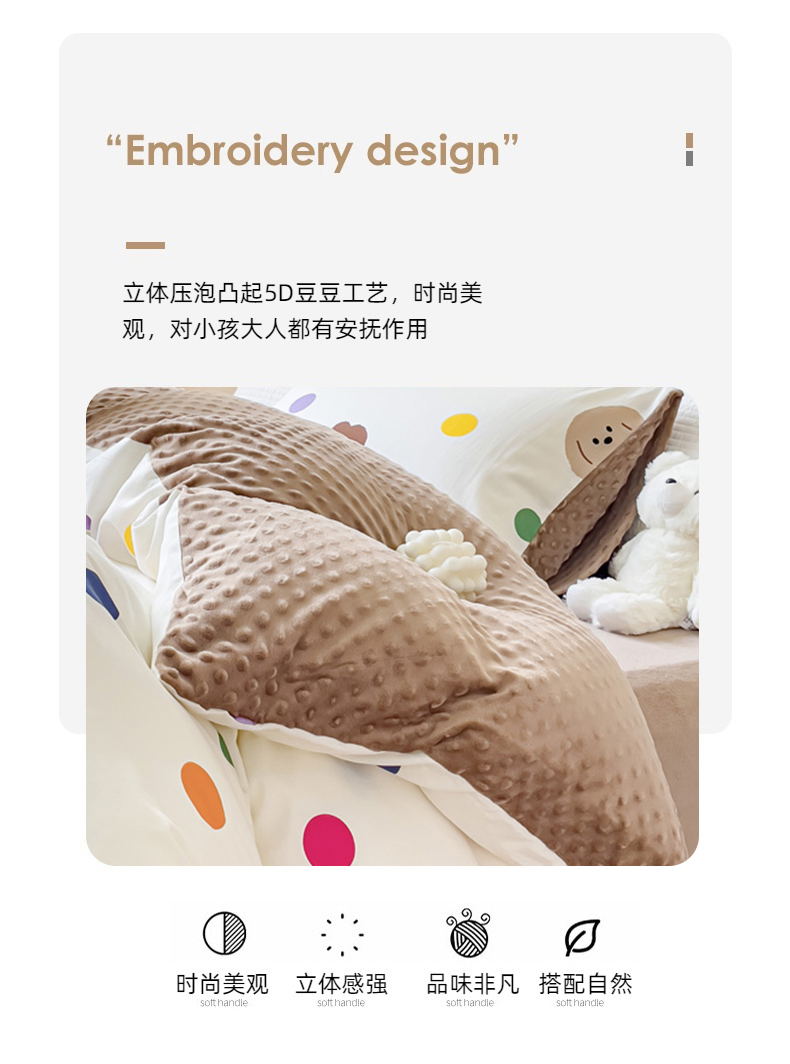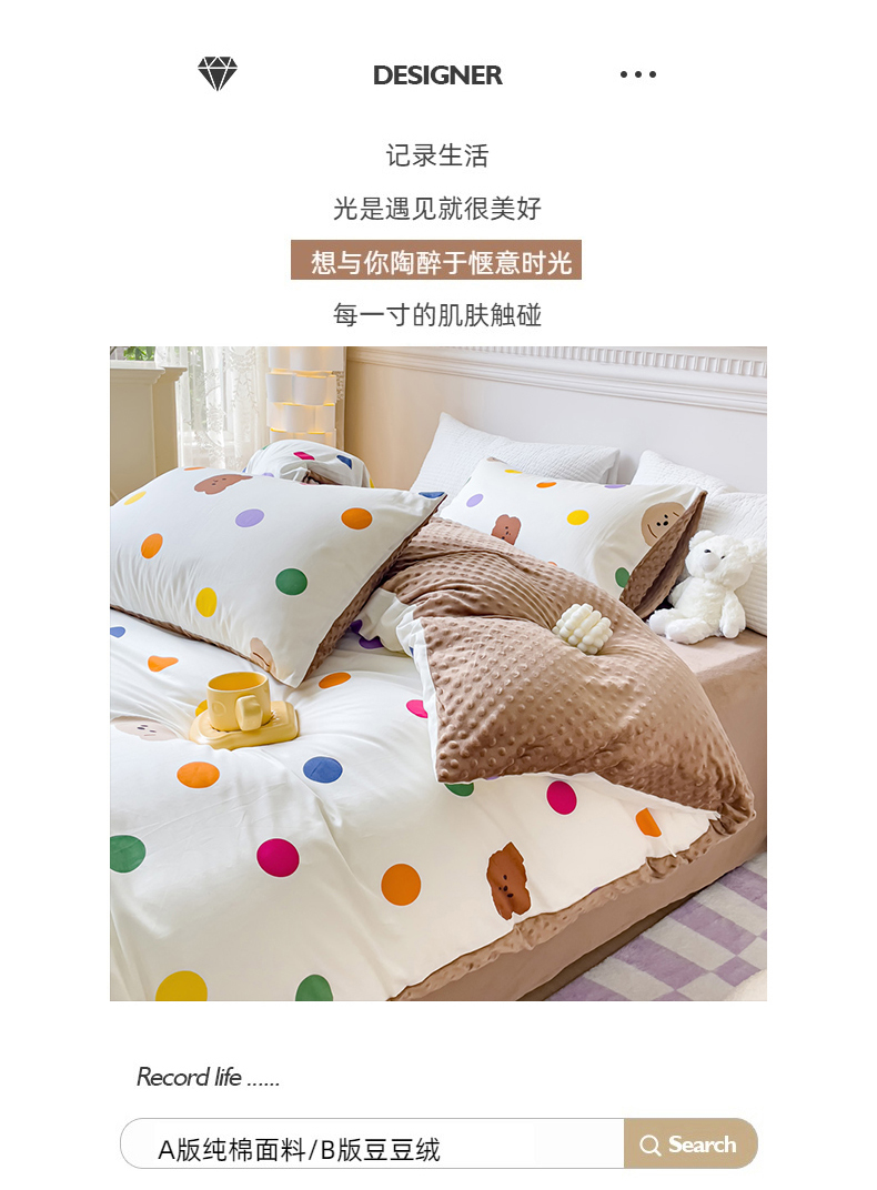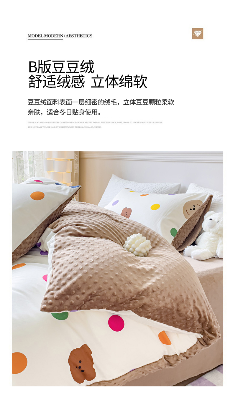 珺柔家纺 2023新款全棉加豆豆牛奶绒四件套 快乐无限
