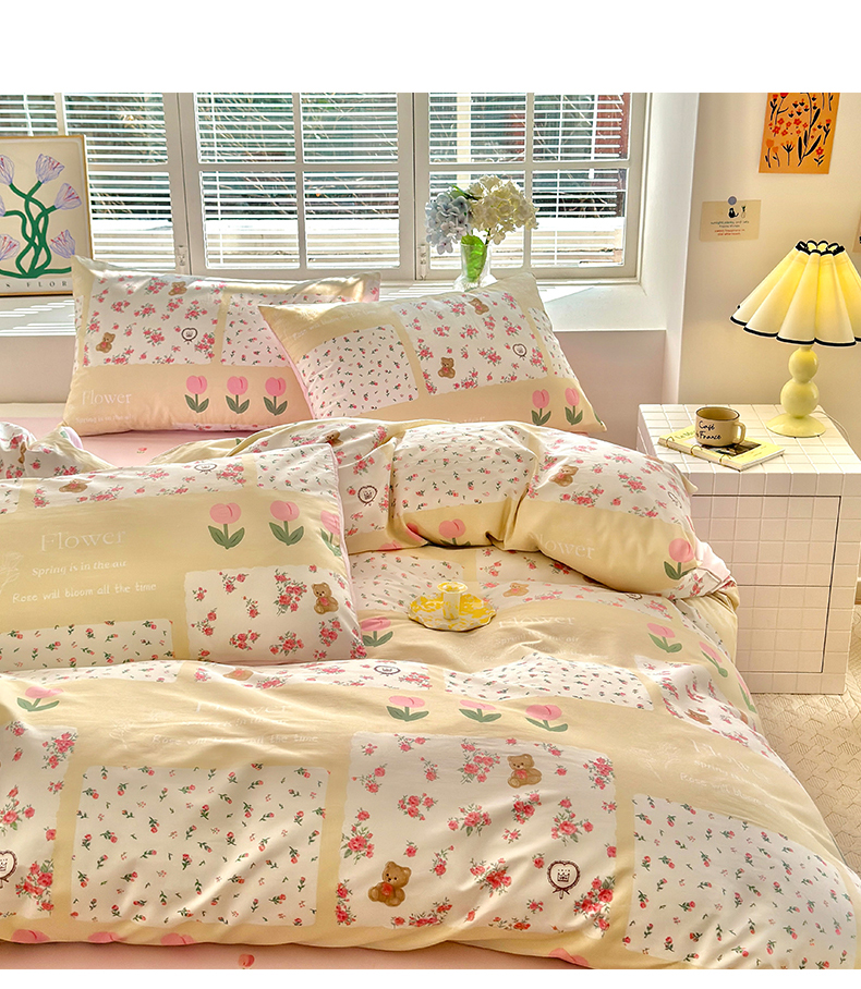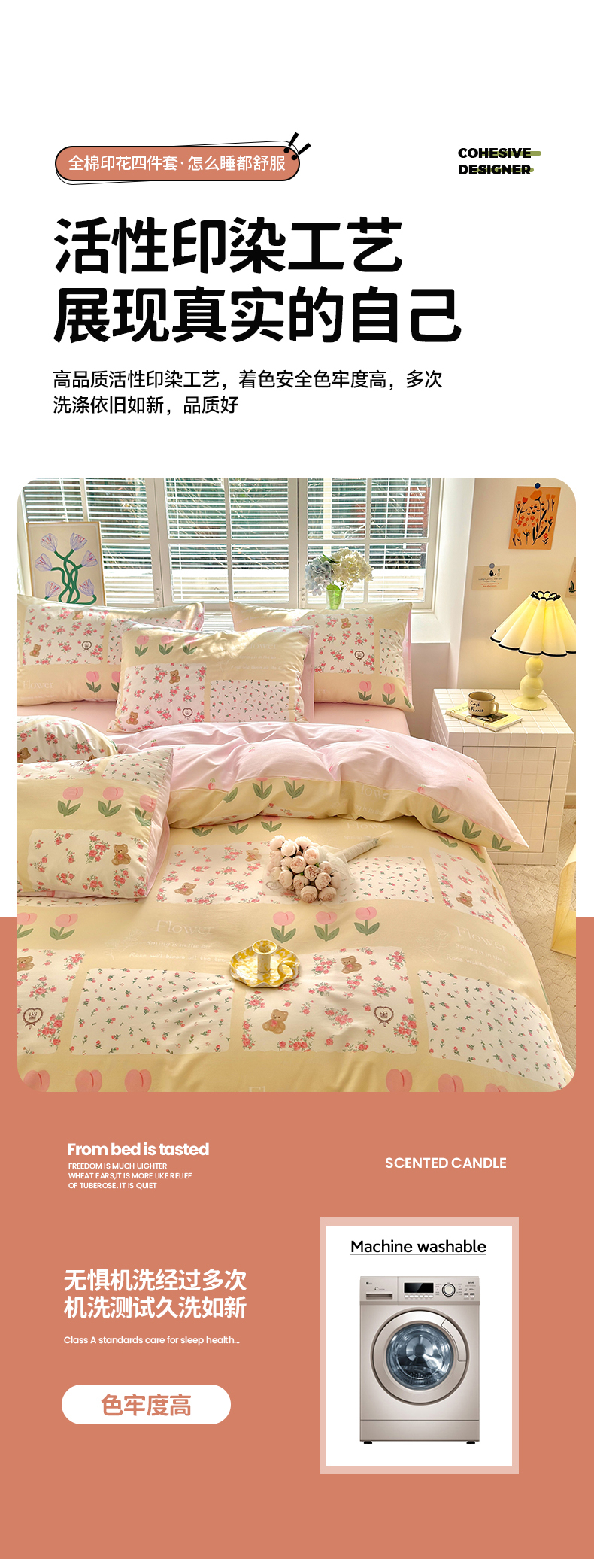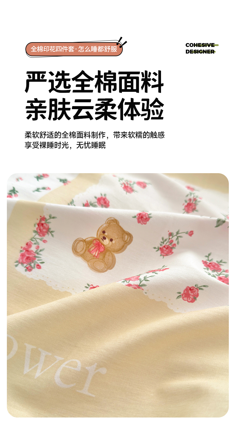 沐棉家居 2024新款小清新全棉13372印花四件套 温馨小熊