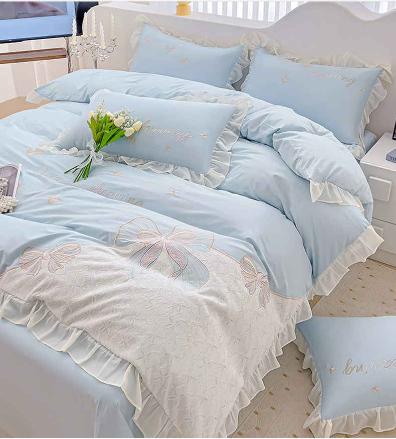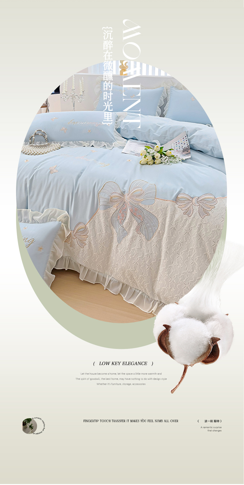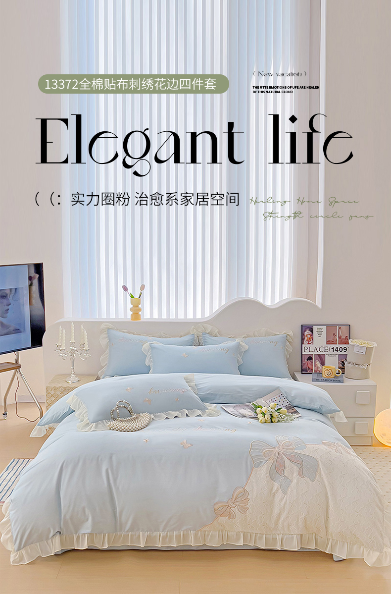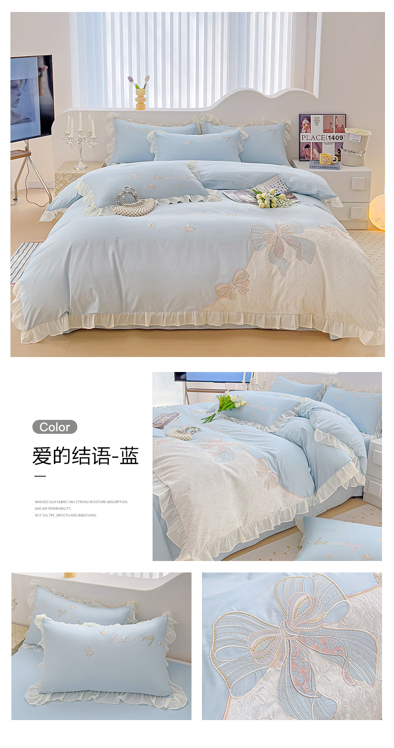 迪欧芙 2024春季纯棉13372公主风四件套爱的结语系列 爱的结语-蓝,爱的结语-蓝