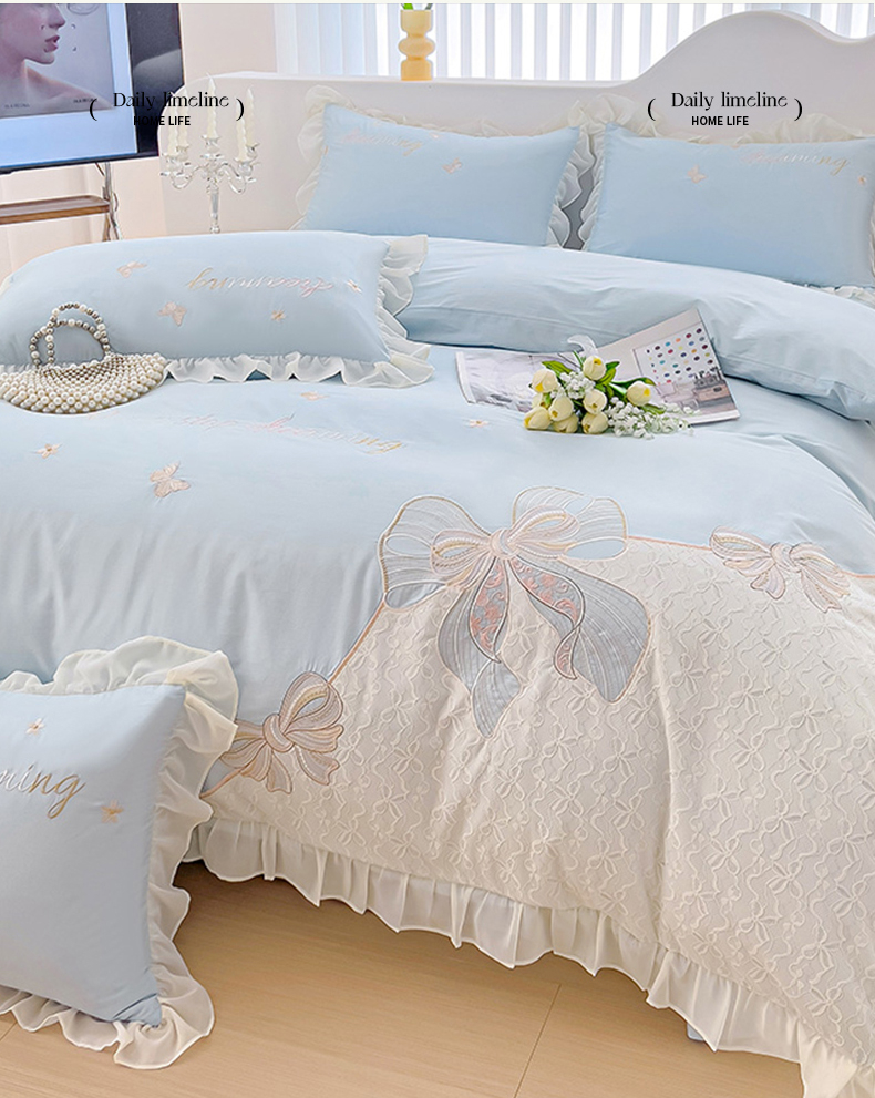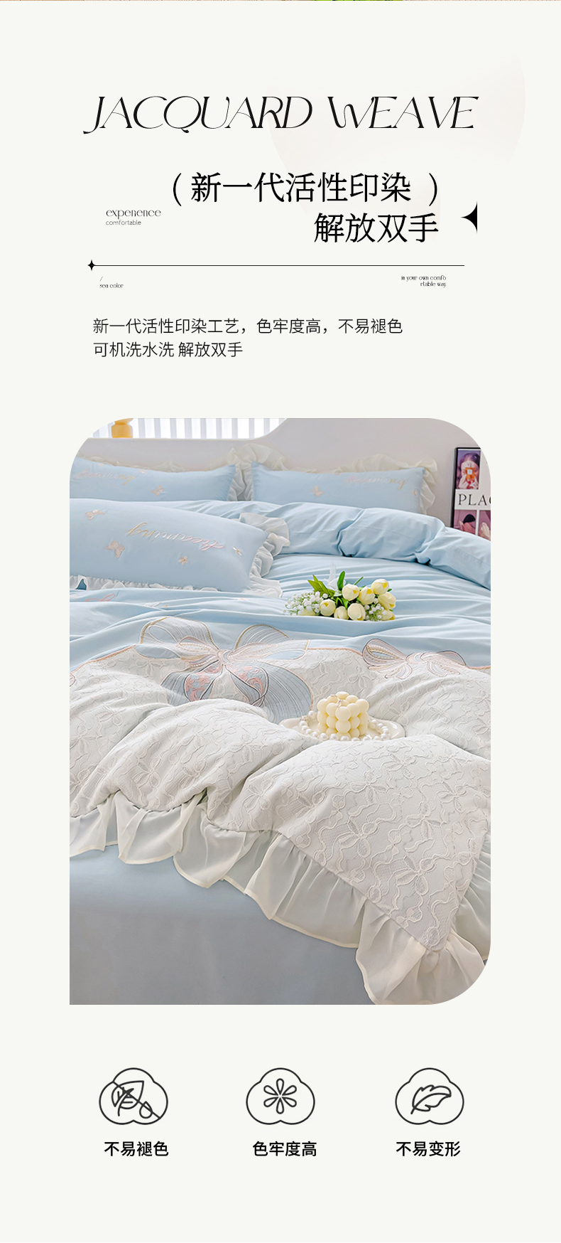 (总)迪欧芙2023新款纯棉全棉水洗棉刺绣工艺款四件套艾莉丝,艾莉丝-粉,艾莉丝-奶油白,艾莉丝-天空蓝